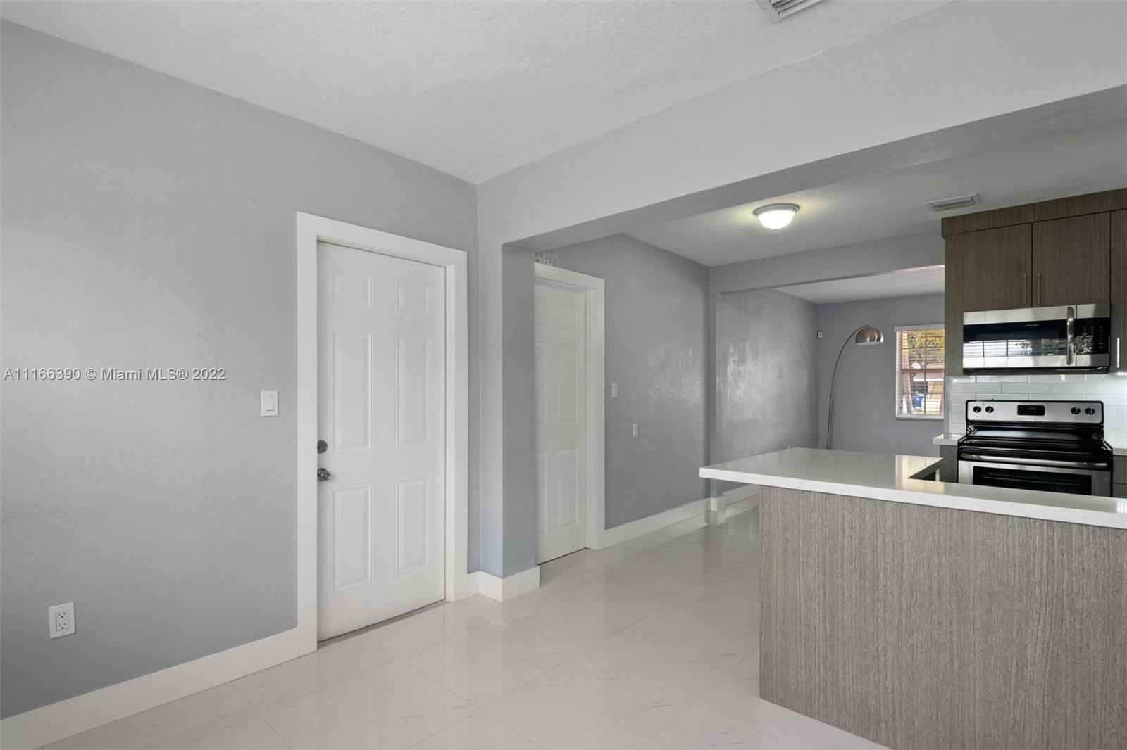 Nicely remodeled 2 bedroom, 1 bath home, with laundry room and screen outdoor patio. Newer kitchen cabinets, quartz countertops, stainless steel appliances. Circular driveway and large fenced in backyard. Accordian hurricane shutters. ***SHOWINGS SHOULD BEGIN FRIDAY, MAY 13, 2022.***