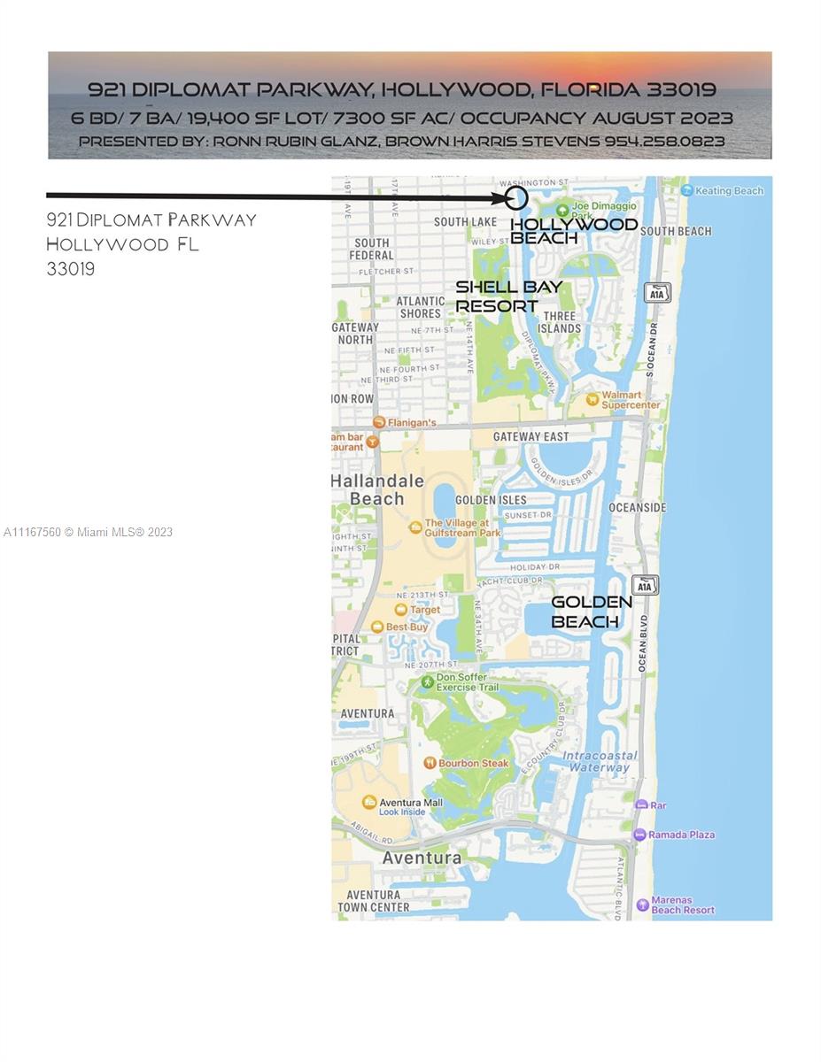 Spectacular waterfront 19,431 SF lot on prestigious DiplomatParkway with 115FT of water frontage. 184FT street frontage. New custom built waterfront estate. 7300 SF. 6 bedrooms. 7 bathrooms. 3 car garage. Home to be completed by August 2023. Walking distance to the new Shell Bay Golf, an Auberge Resort by Witkoff Group. Greg Norman designed Golf Resort. One mile north of Golden Beach.