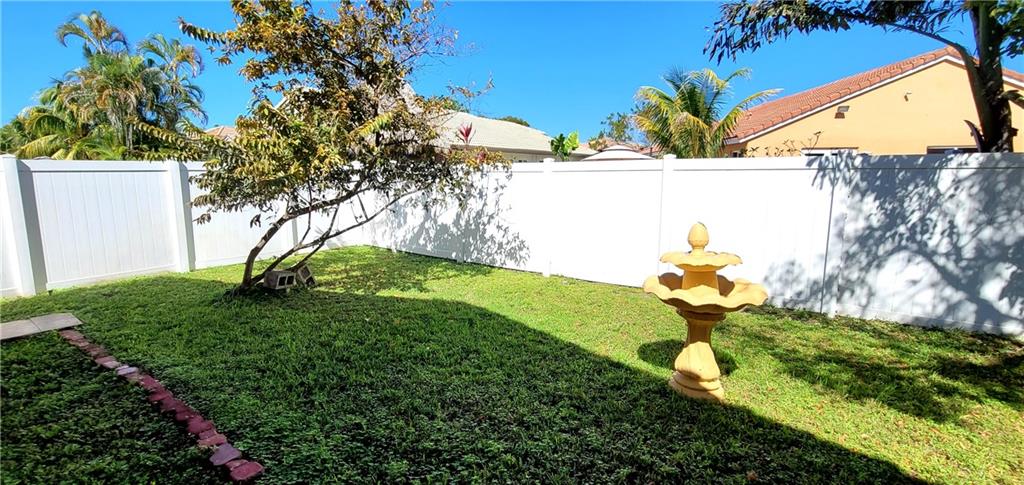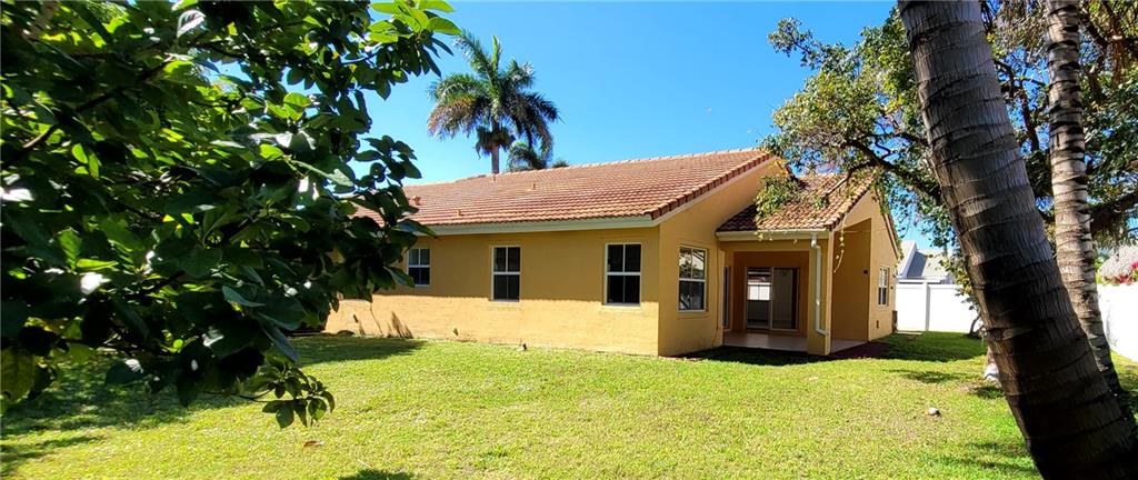 DESIRED LOCATION!!! Somerset Country Club at Vizcaya Miramar. Great corner house 4/2, freshly painted, ready to print out your own stamp; 1866 sqft with tons of natural light, ceramic tile throughout the property, a lot of closets, bathrooms are just updated, and all kitchen appliances are new. Big fence-backyard with many tropical fruit trees: mango, guava, anon, coconut, avocado, where to build the pool to your liking. Spectacular for your primary home or Investment. Gated community resort-style with 24-hour security, low monthly HOA fee, all ages are welcome. Walking distance to Somerset Academy Miramar, parks, exercise trail, Pembroke Gardens Shop, Pembroke Lakes Mall & Memorial Hospital West, and more. Easy to access to I-75 & Turnpike, close to everything you needed