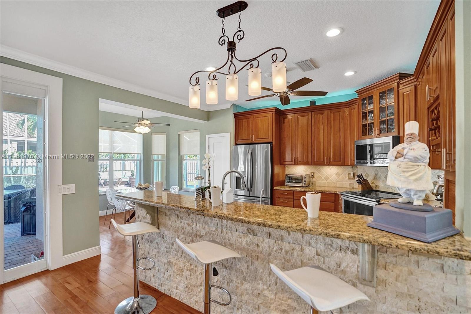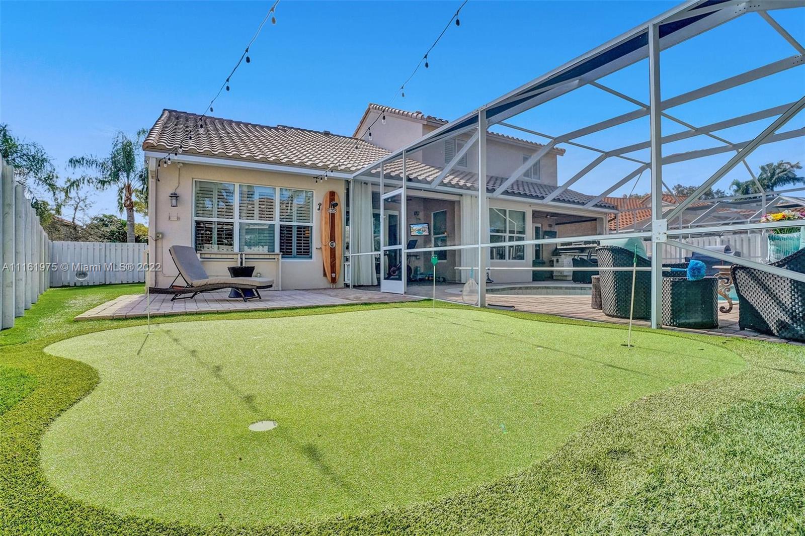 Property is under contract. Open House for Backup Offers Only. Let’s get the party started!! This gorgeous home is perfect for your family & friends to gather. Summer kitchen with an oversized covered lanai & pool area. Practice your golf on your own putting green. Full impact window protection. Walk on to soaring ceilings! Gorgeous kitchen and oversized breakfast area. Freshly painted, new doors and all popcorn ceiling has been removed. Updated high end kitchen & bathrooms. Circular driveway holds 5 cars. Garage built ins included in the sale. Don’t miss this out and start the party today! Mechanical shelving and work benches in garage do not convey.