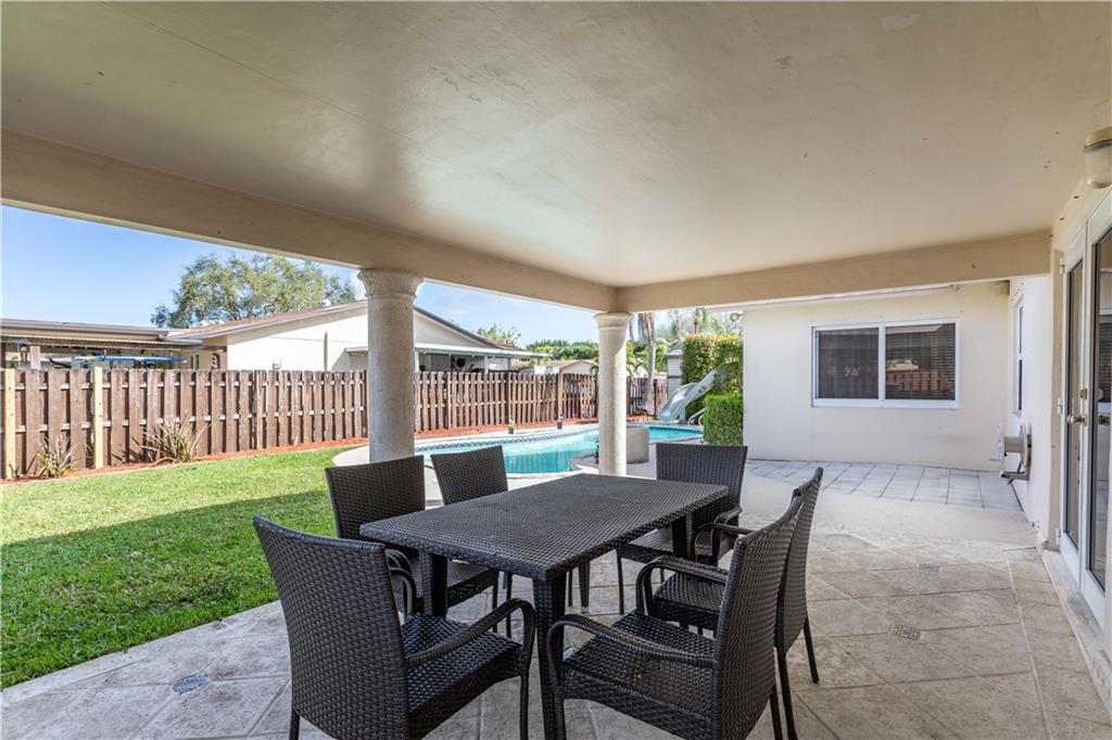 Check out this beautifully maintained corner lot pool home! Featuring impact windows and doors throughout, spacious kitchen with S/S appliances and 1 car garage. The fun begins outside with the large, fully fenced corner lot with oversized gate for easy boat or RV storage. The beautiful pool and covered outdoor kitchen also make for an entertainer's dream! Perfectly located near places of worship, supermarkets, easy access to major highways and just minutes to the beach!