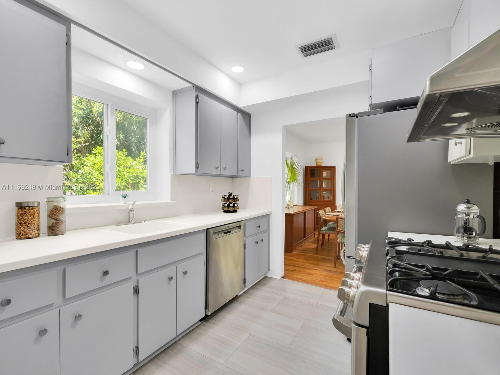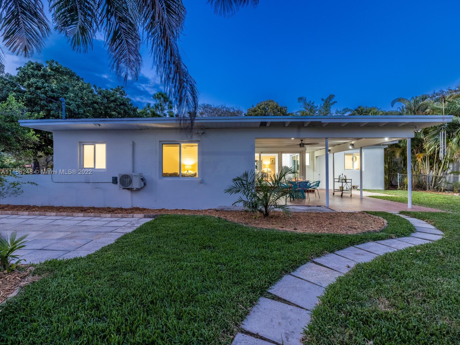 Welcome to Pineapple Point! Opportunity knocks in this classic Mid-Century Modern home on a lush, tree-filled signature corner lot with bespoke petite pineapple grove and separate guest suite. Enjoy as is, or renovate to your heart’s delight in the wide, spacious main house with open living and dining that flows to expansive glass window-walled media room overlooking the large, covered veranda and rear tropical gardens with room for a pool and so much space to entertain, relax and play! Bonus private entrance studio suite great as office, zen den or guest nest. Perks—impact windows, wood floors, newer roof and enclosed garage. All in a non-flood zone just blocks to downtown Miami Shores shops and restaurants. With your personal touches, you’ll agree— Pineapple Point won’t disappoint!