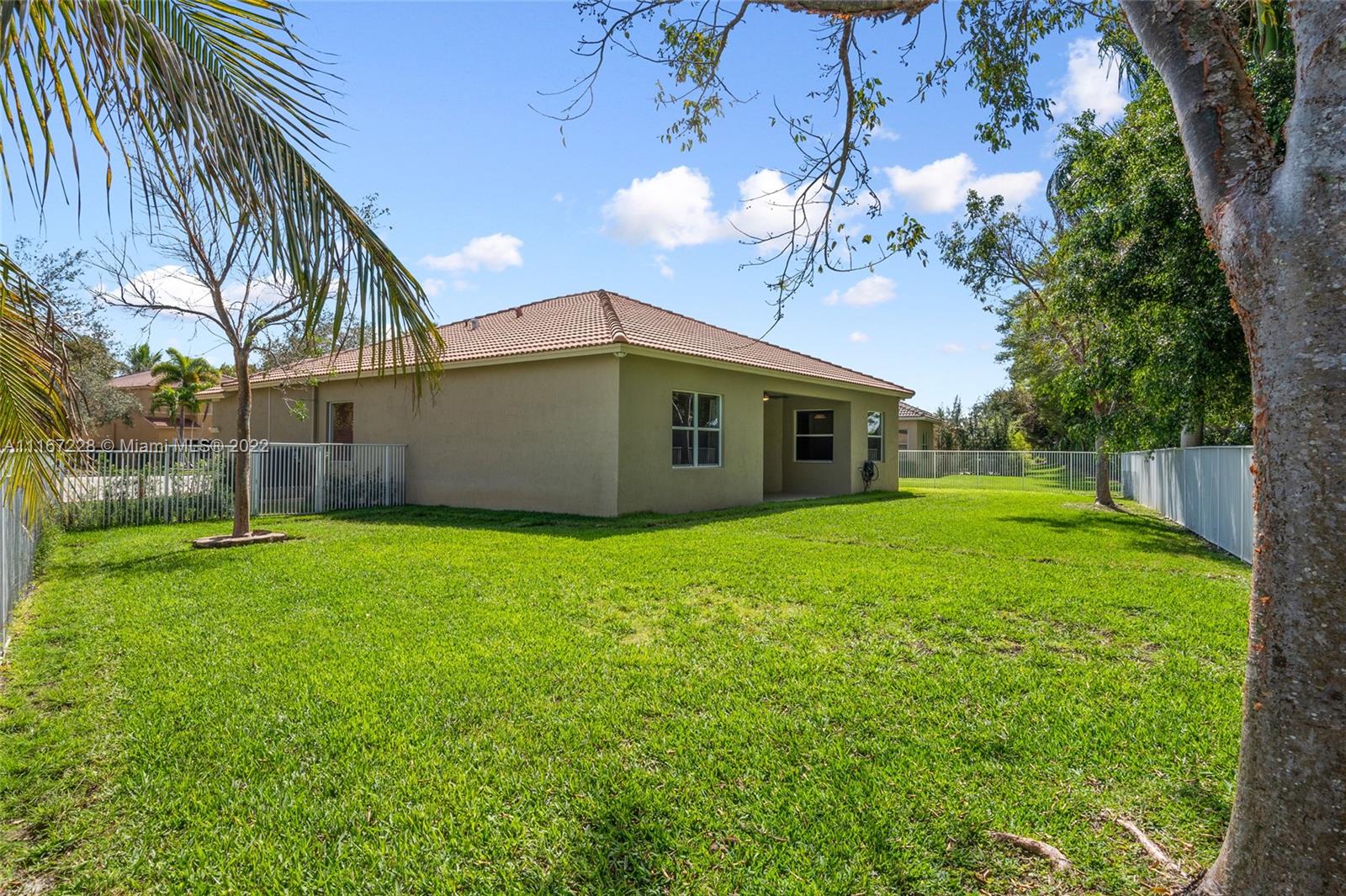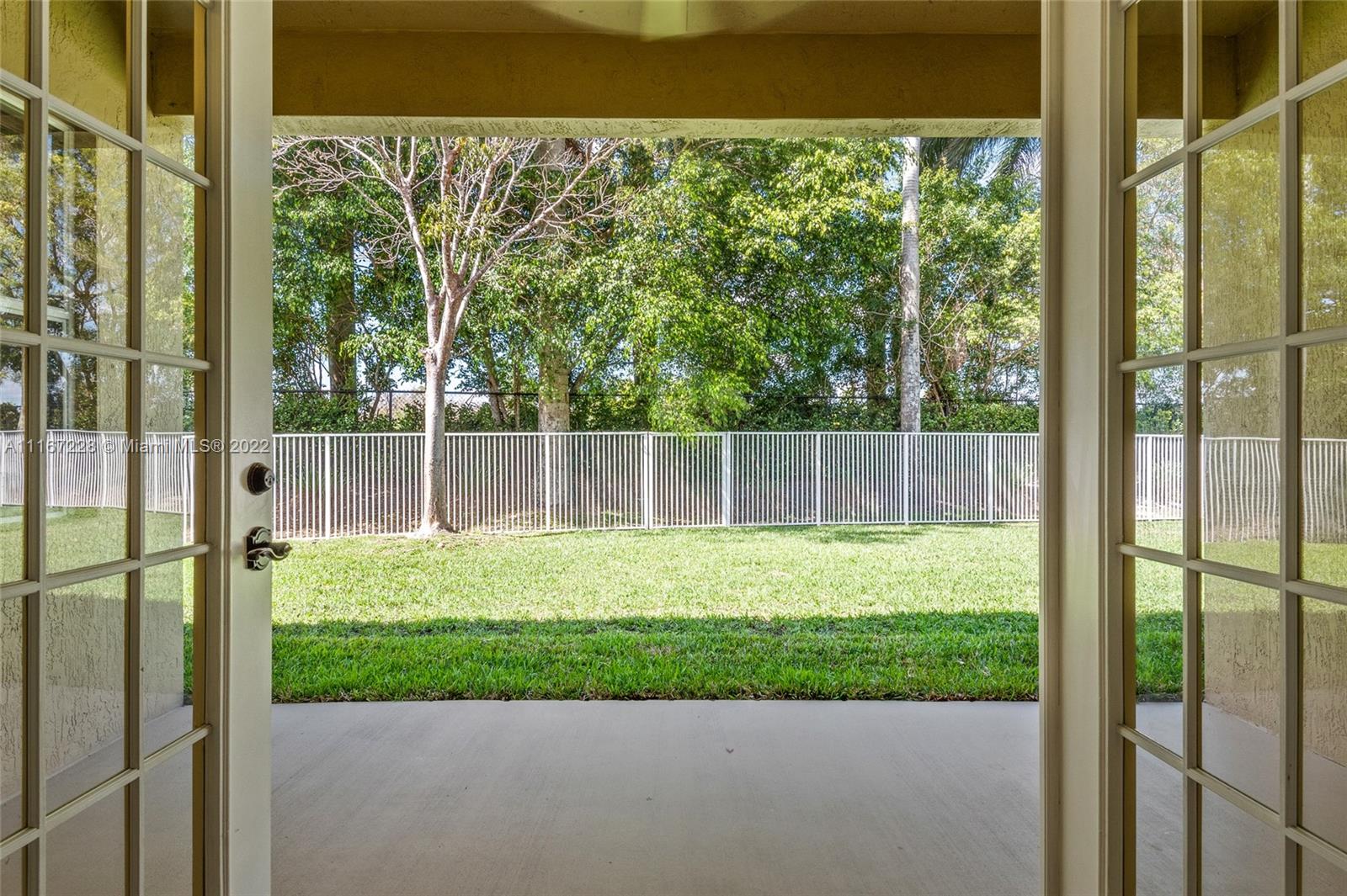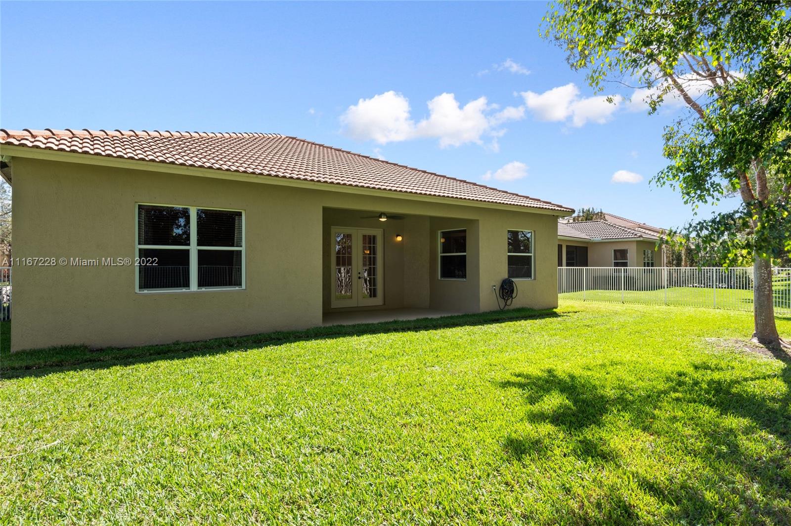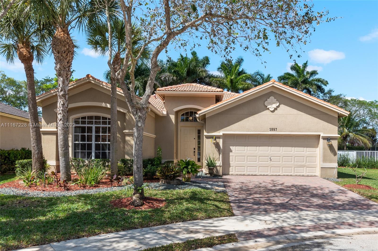 This beautiful home is situated on a private, oversized lot on a cul-de-sac with no neighbors behind and features 3 bedrooms (split floorplan), 2 bathrooms, a 2-car garage, foyer, formal living and dining, travertine & wood flooring, high ceilings, kitchen w/ 42-inch wood cabinetry, stainless-steel appliances, granite countertops & backsplash, and breakfast nook. The master suite features a walk-in closet & master bath w/ Roman tub & separate shower. Additional features include a new HVAC unit (04/2021), laundry room w/ tub, hurricane shutters, fully fenced yard w/ room for a pool, top A-Rated public schools and Resort Style amenities. HOA Fee of $260 monthly includes basic cable, internet, guard-gated entrance, clubhouse, fitness center, pools, playground, basketball & volleyball court.