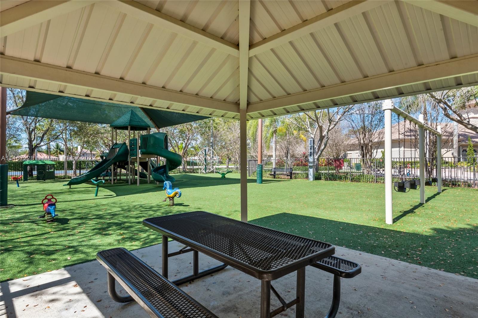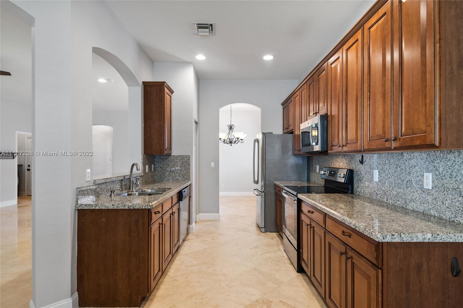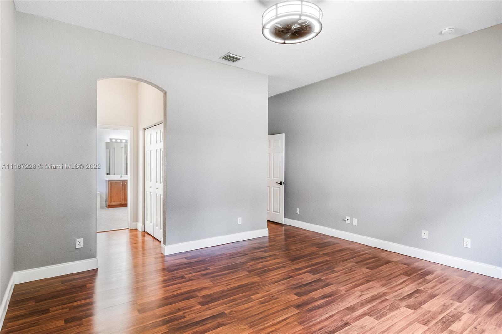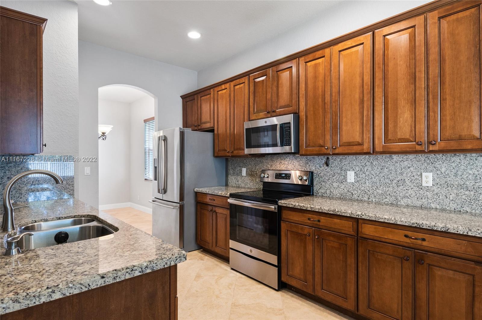 This beautiful home is situated on a private, oversized lot on a cul-de-sac with no neighbors behind and features 3 bedrooms (split floorplan), 2 bathrooms, a 2-car garage, foyer, formal living and dining, travertine & wood flooring, high ceilings, kitchen w/ 42-inch wood cabinetry, stainless-steel appliances, granite countertops & backsplash, and breakfast nook. The master suite features a walk-in closet & master bath w/ Roman tub & separate shower. Additional features include a new HVAC unit (04/2021), laundry room w/ tub, hurricane shutters, fully fenced yard w/ room for a pool, top A-Rated public schools and Resort Style amenities. HOA Fee of $260 monthly includes basic cable, internet, guard-gated entrance, clubhouse, fitness center, pools, playground, basketball & volleyball court.