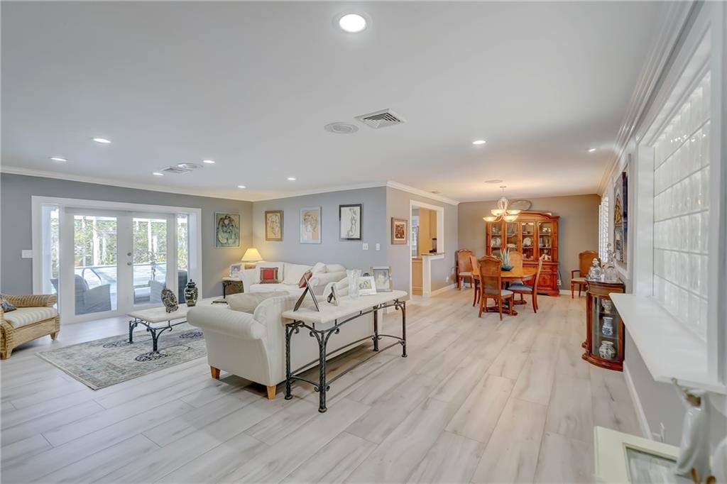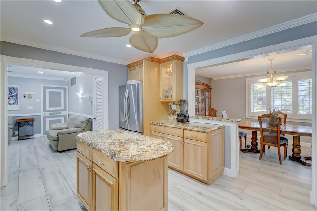 Stunning and meticulously maintained residence located in prestigious Coral Ridge Country Club. This 4br/3ba split bedroom home features a spacious floor plan with many updates. New A/C unit, oven, refrigerator in 2019. Bright, cheerful & elegant kitchen opens up to the formal dining area. New stylish floors installed in 2021 flow throughout the home. French & sliding glass doors open from all living areas, master bedroom and guest room on to your tropical pool deck. Pool equipment, irrigation, Solaris awning installed in 2020 (awning has a lifetime warranty). Generator installed in 2019 (Gas powered from city utilities). Impact windows & doors. Lush, professional landscaping surrounds entire property. Great proximity to the beach, Bayview Park and great private schools.