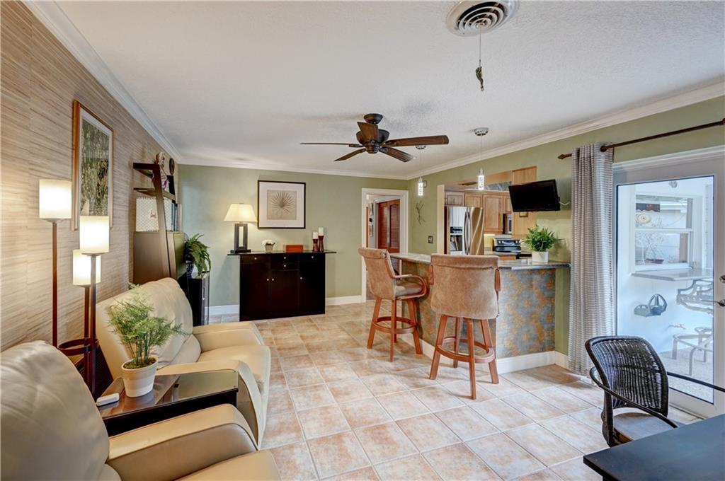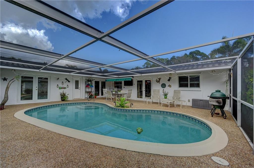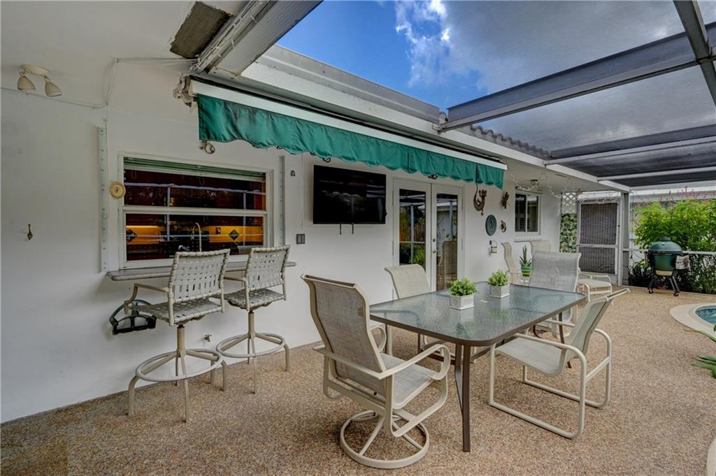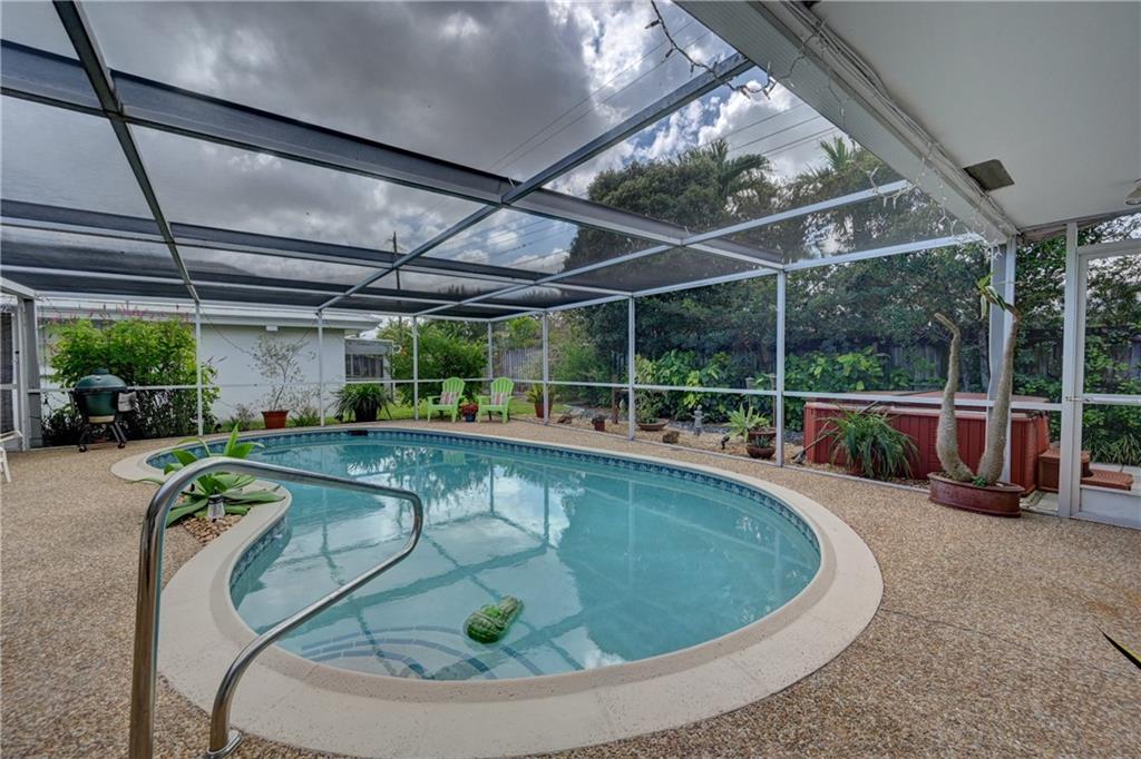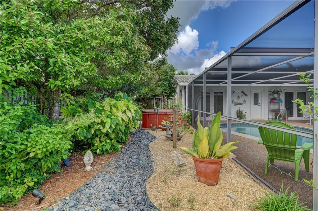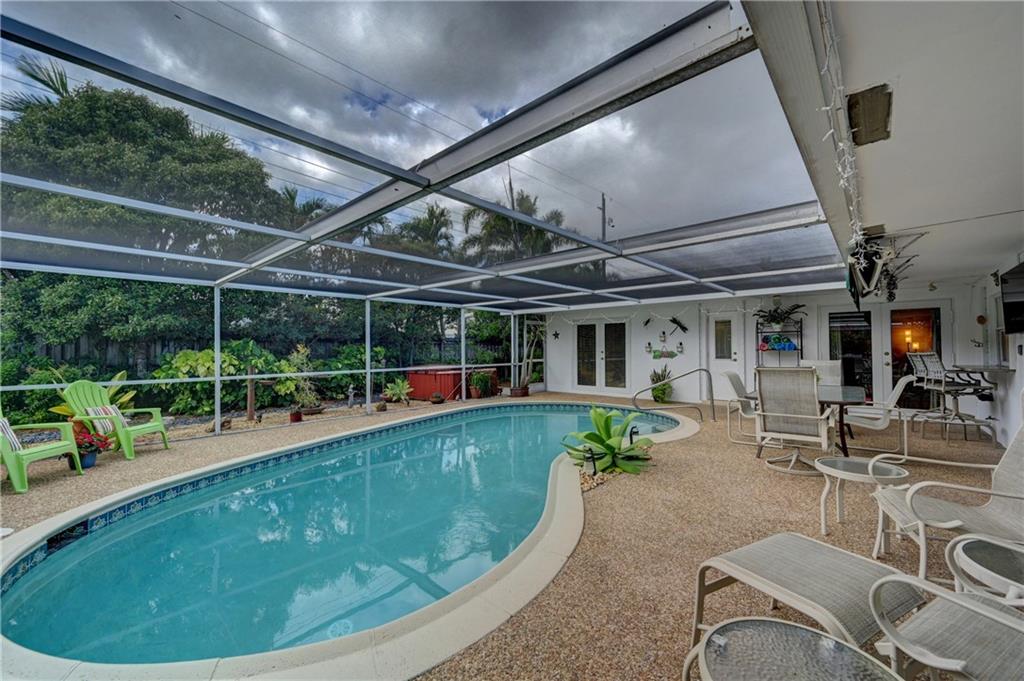 Beautiful spacious 4 bedroom, 2 bath Imperial Point Pool Home! Updated kitchen w/Kraftmaid wood cabinets & newer stainless steel appliances, plenty of storage. Breakfast bar & family room. Large master bedroom, updated bath, walk in closet & plantation shutters. New A/C 2019, hot water heater 2018. All french doors & living room windows are impact. Other windows & cabana bath have shutters. 2 car garage plus separate laundry room. Great outdoor entertaining. Solar heated pool, screened in to keep out bugs & leaves. Great for pets. The backyard is a tranquil setting that includes a hot tub, outdoor lighting for entertaining as well as a lovely garden with Florida friendly plantings, trees and bird baths. Great location!