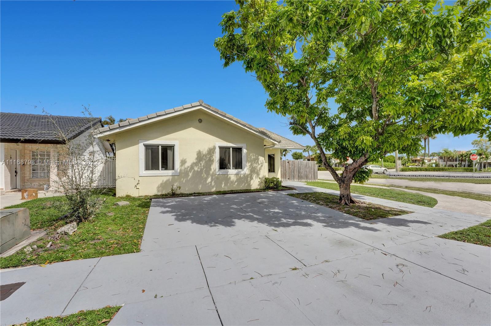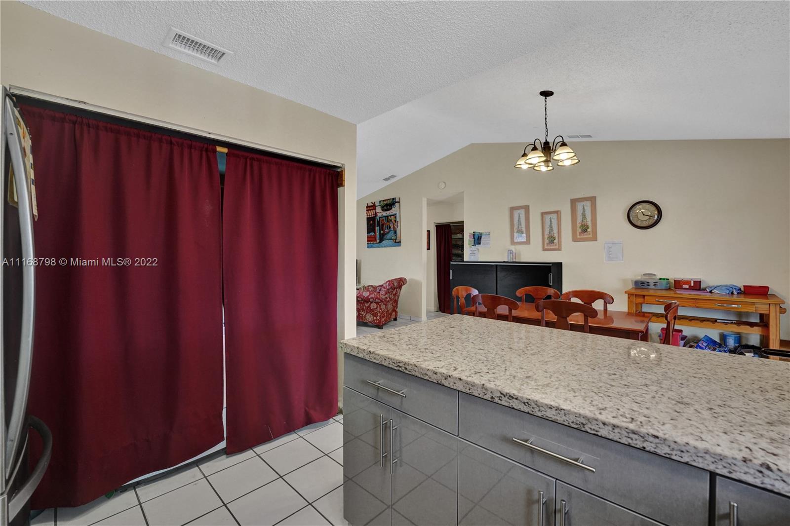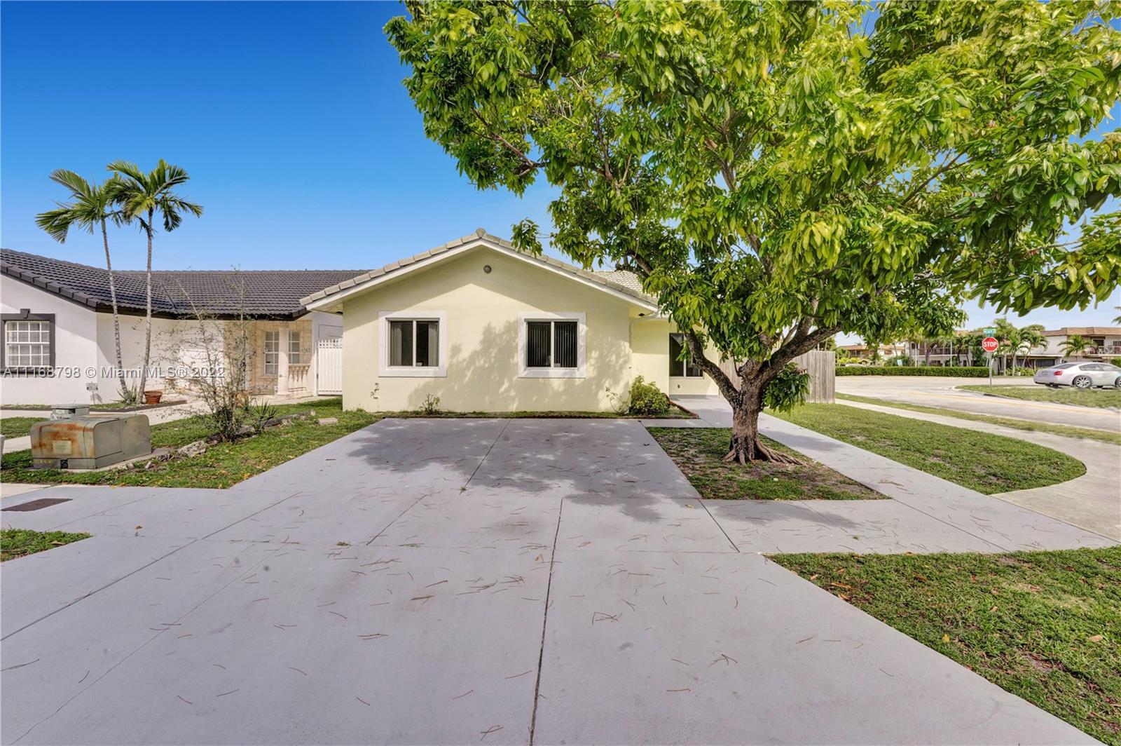 Wait until you see this lovely home, ready to be made your dream house! Brand new kitchen within the past year, granite countertops, stainless appliances and a full size washer/dryer. Cathedral ceiling and three sets of sliders, two leading to a giant patio most of which is covered making this home light and bright. Impact windows and doors all around. Open floor plan living space. Large primary suite with walk-in closet and walk-in shower and two larger guest bedrooms and second bath. Plenty of parking. House is being sold as is. Minutes to Palmetto Expressway, shopping, dining and schools. Patio area surrounded by newer, attractive wooden fence, ready for your outdoor entertaining. Don't wait, call today!