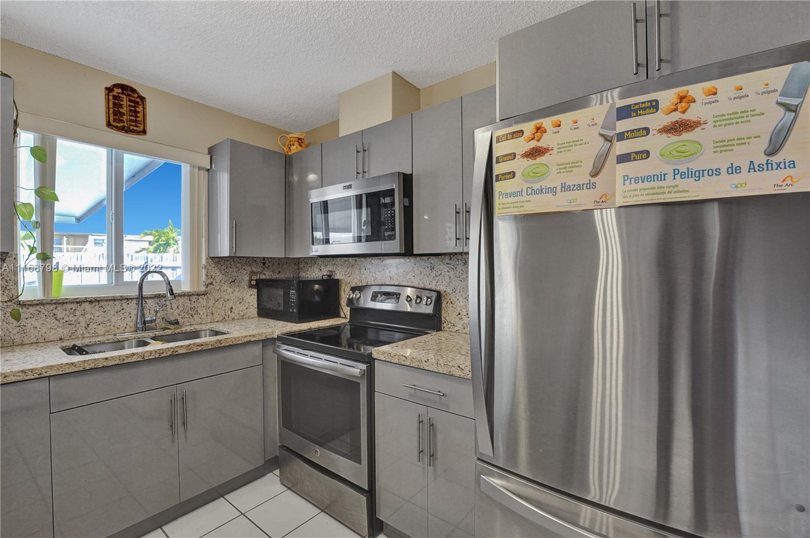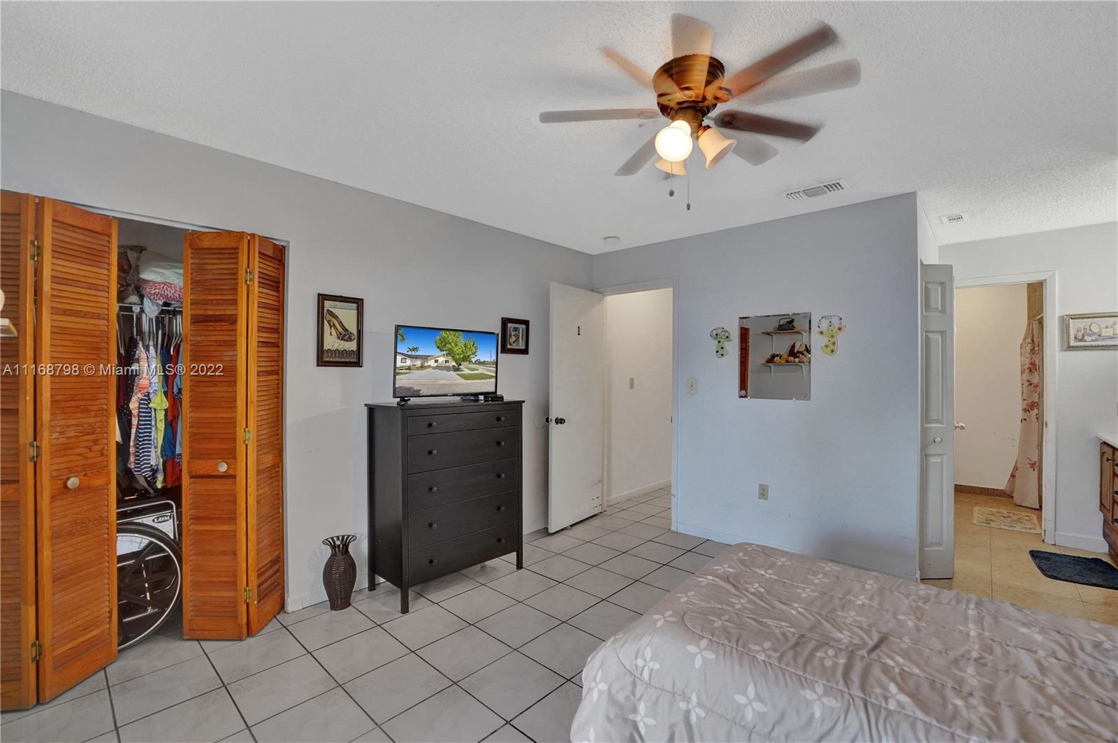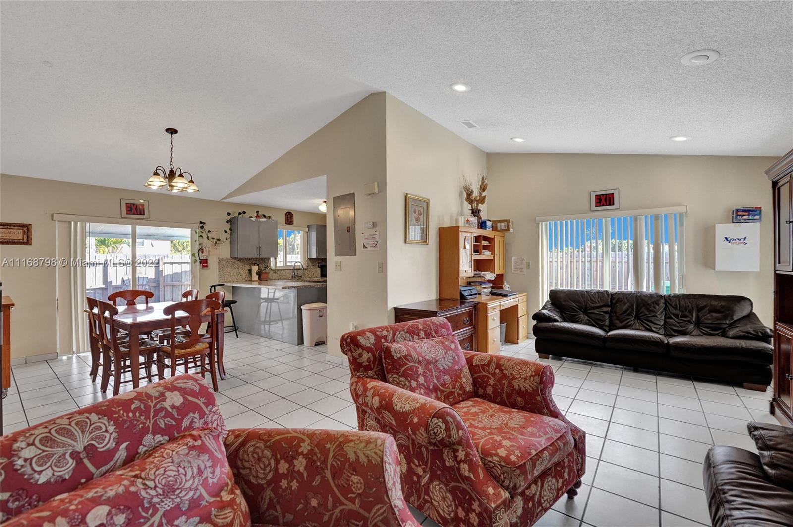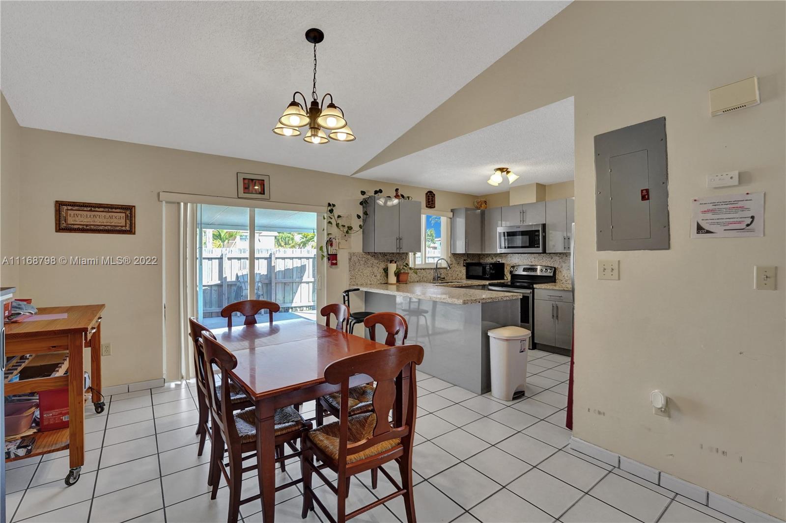Wait until you see this lovely home, ready to be made your dream house! Brand new kitchen within the past year, granite countertops, stainless appliances and a full size washer/dryer. Cathedral ceiling and three sets of sliders, two leading to a giant patio most of which is covered making this home light and bright. Impact windows and doors all around. Open floor plan living space. Large primary suite with walk-in closet and walk-in shower and two larger guest bedrooms and second bath. Plenty of parking. House is being sold as is. Minutes to Palmetto Expressway, shopping, dining and schools. Patio area surrounded by newer, attractive wooden fence, ready for your outdoor entertaining. Don't wait, call today!