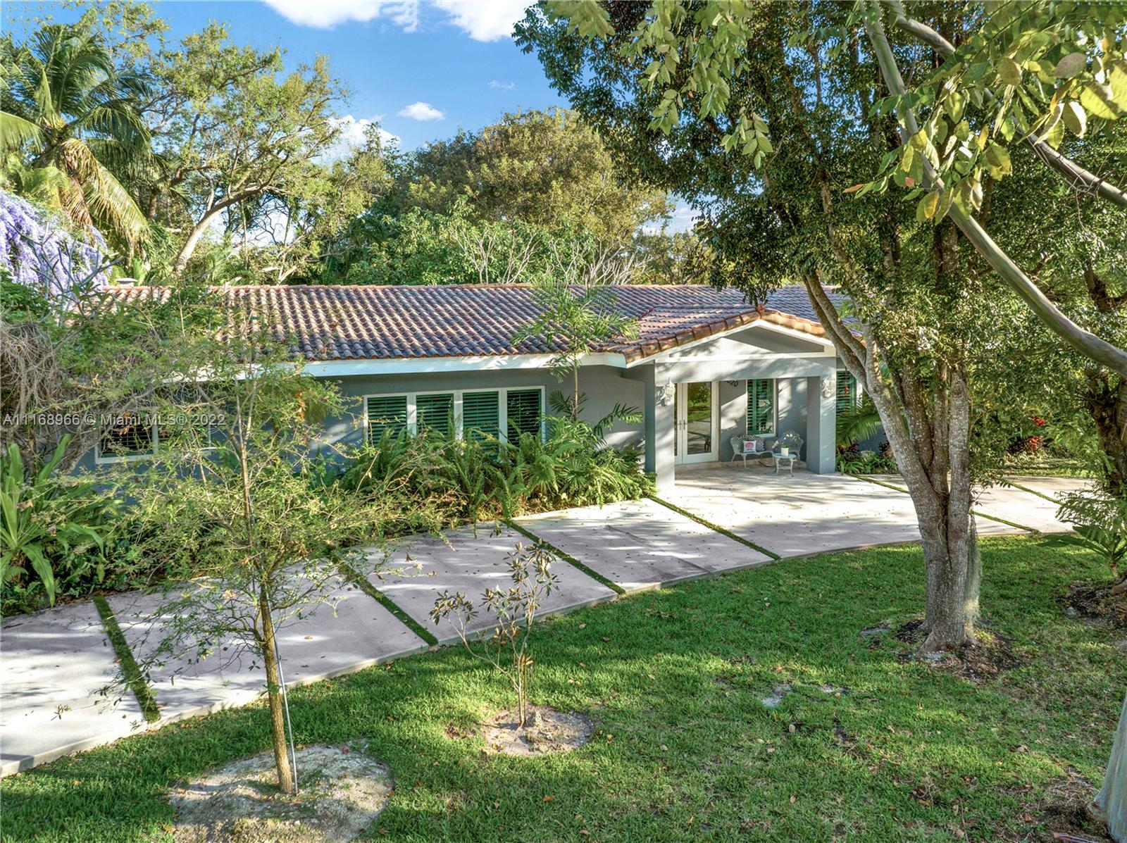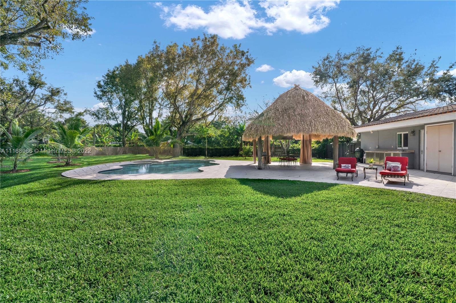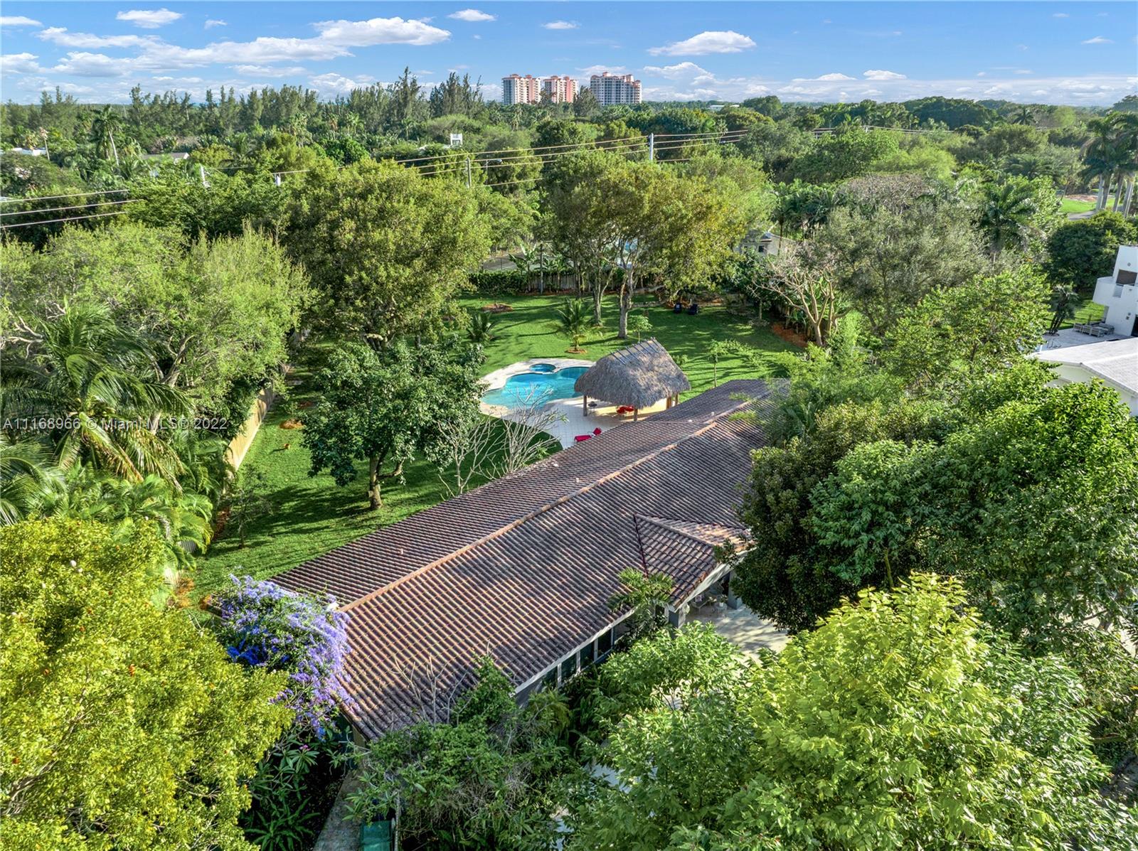 Pinecrest Garden Lovers Delight! Tucked away on a side street, just off of Old Cutler sits this gated, acre estate under a canopy of lush landscaping and dozens of exotic, mature fruit trees on perfectly manicured grounds. Move right into this 3 bed/3 bath home with 2,800 SF of living area plus bonus office & spacious second family room. Plentiful impact windows/ french doors allow in natural light & open to a free form pool, patio with chickee hut, & expansive backyard w/ private vegetable garden to elevate your outdoor South Florida living experience. New plumbing pipes, vaulted ceilings, split bedroom for teenager/live-in/caregiver. Hop on bordering paths close to Pinecrest Gardens & top-rated private/public schools. Who is ready to call this fantastic house and neighborhood, home?