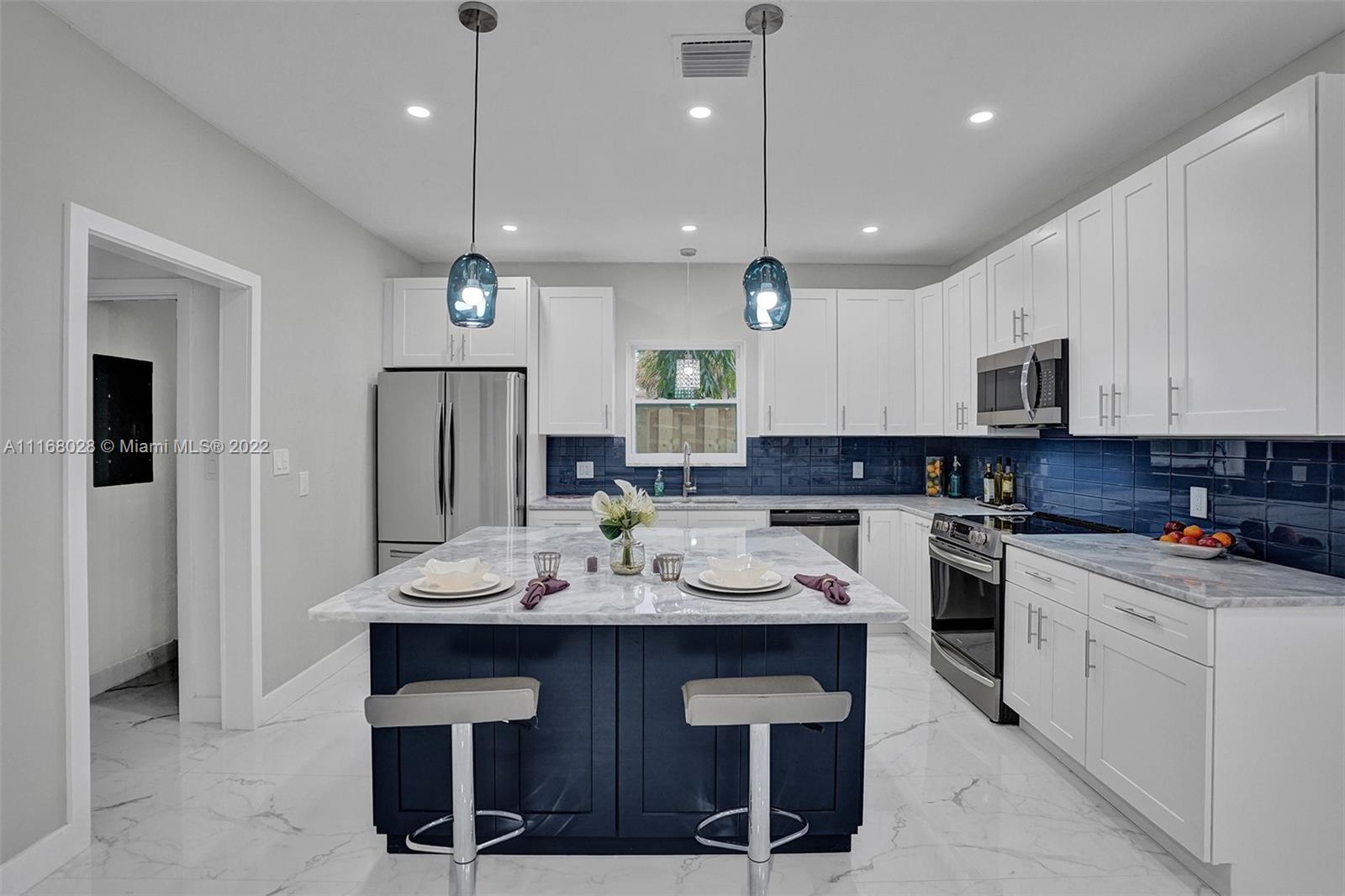 Perfection In Paradise! Another Completely Renovated Residence By The Mill's Design Group, This waterfront 3 bedroom 2 bath, office/den option & garage has all of the upgrades & space that you have been searching for. Soaring High Volume Cathedral Ceilings greet you as you enter the fireplace living room & dining room, Your Open Concept Kitchen has a sea of light blues, gray & white quartz countertops. White shaker cabinetry & top of the line stainless steel appliances, The primary bedroom suite includes a secluded courtyard perfect for morning coffee.& a spa designed bathroom with a soaking tub, shower, double vanity. Walk to Trader Joe's, Whole Foods, Bike to the beach, East Of US1, 1 Fixed Bridge To The Ocean. Incomparable Property. Staged By "Florida Stage Hands & Design's"