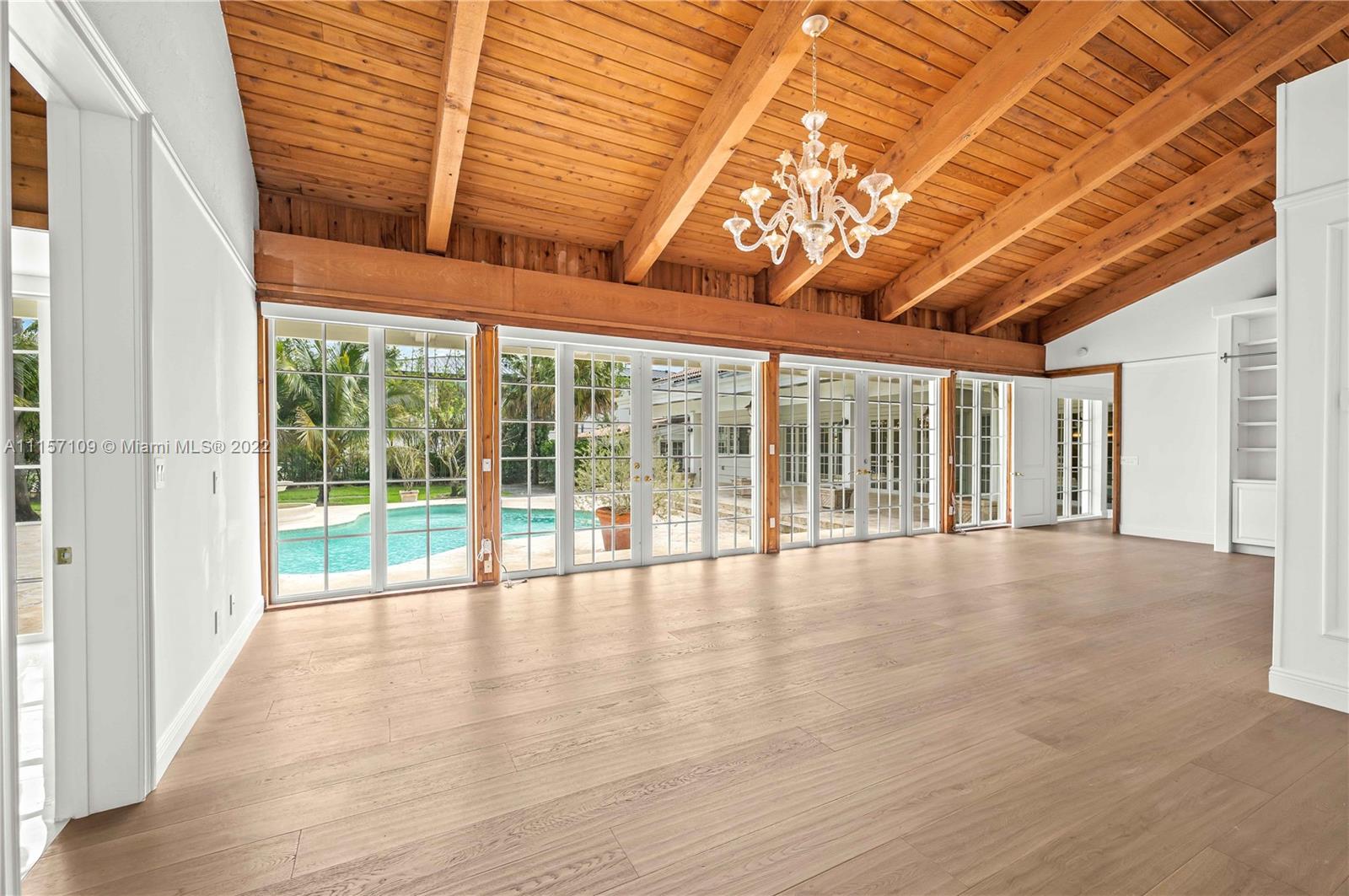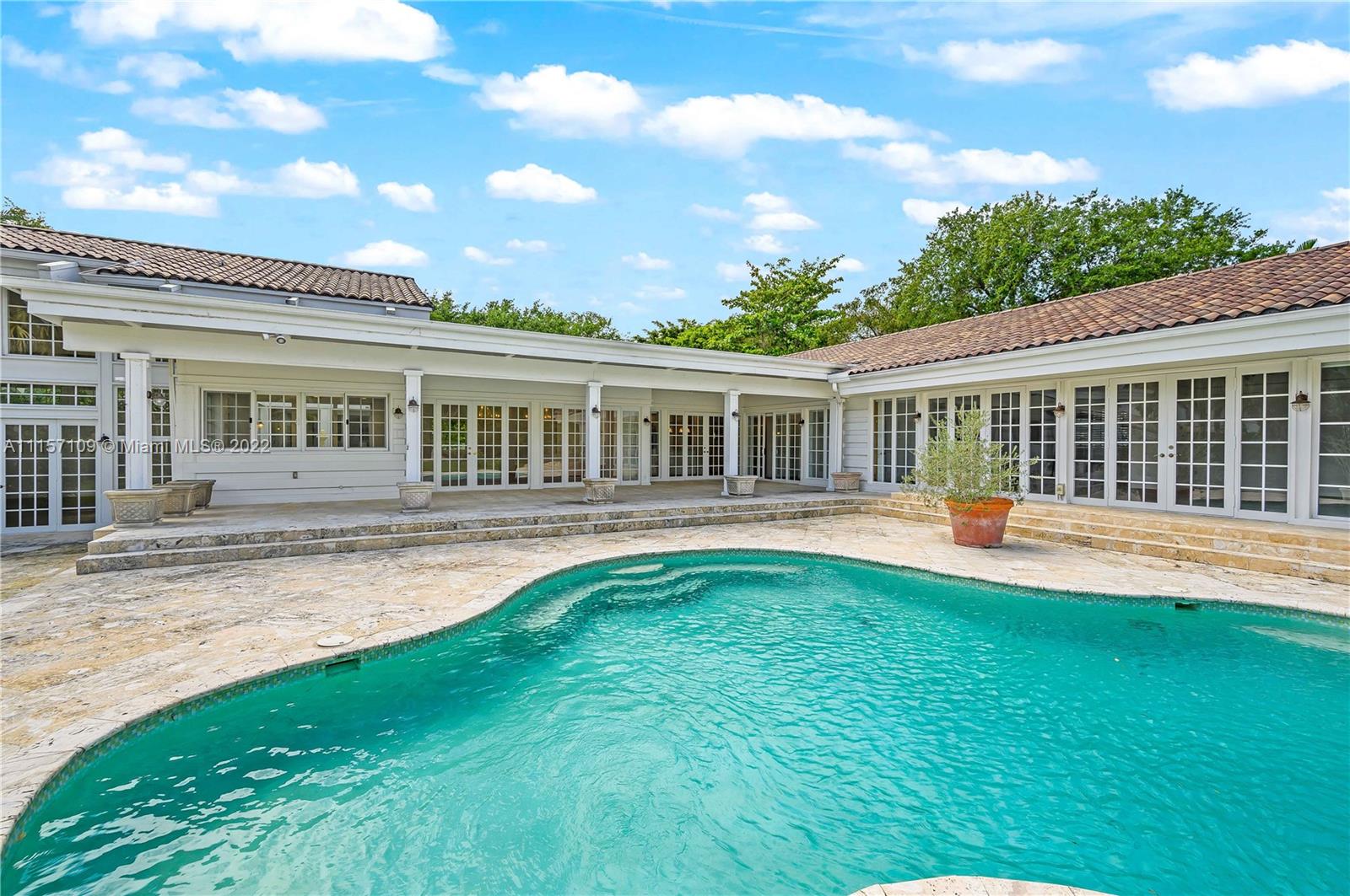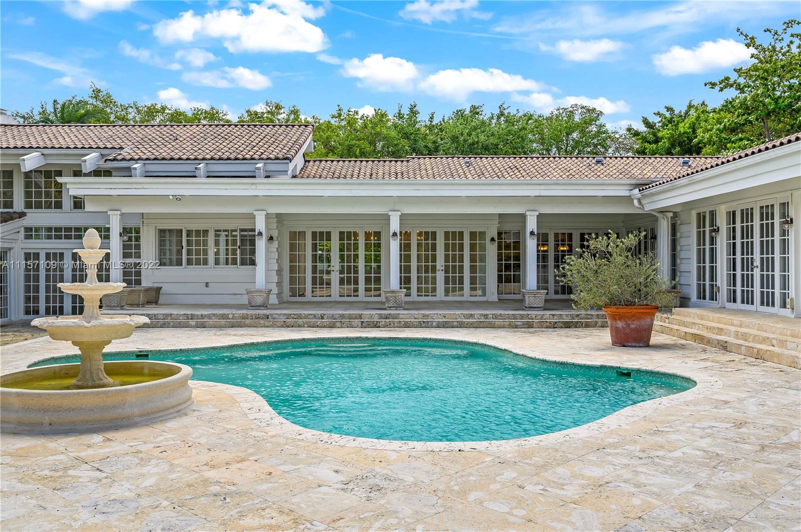 Beautiful 6 bedroom/6 bathroom 7,000 sqft Hamptons style home located on 1.5 acres in prime location Pinecrest. The property boasts enormous front and backyards with 29 mature oak trees, fruit trees, and a world of privacy. Fully remodeled, rich in precious details like the breathtaking fountain atrium when you first enter the house, brand new European hardwood oak floors, restoration hardware bathroom, and window fixtures, a stunning Tuscan style kitchen with top of the line appliances, and a butlers pantry area. Each bedroom has its own bathroom and a spacious walk-in closet. The great room and MB are bright and tall with double-height ceilings and open views of the outdoors. Impact windows, security camera system, 2 car garage, own well, and a water softener system.