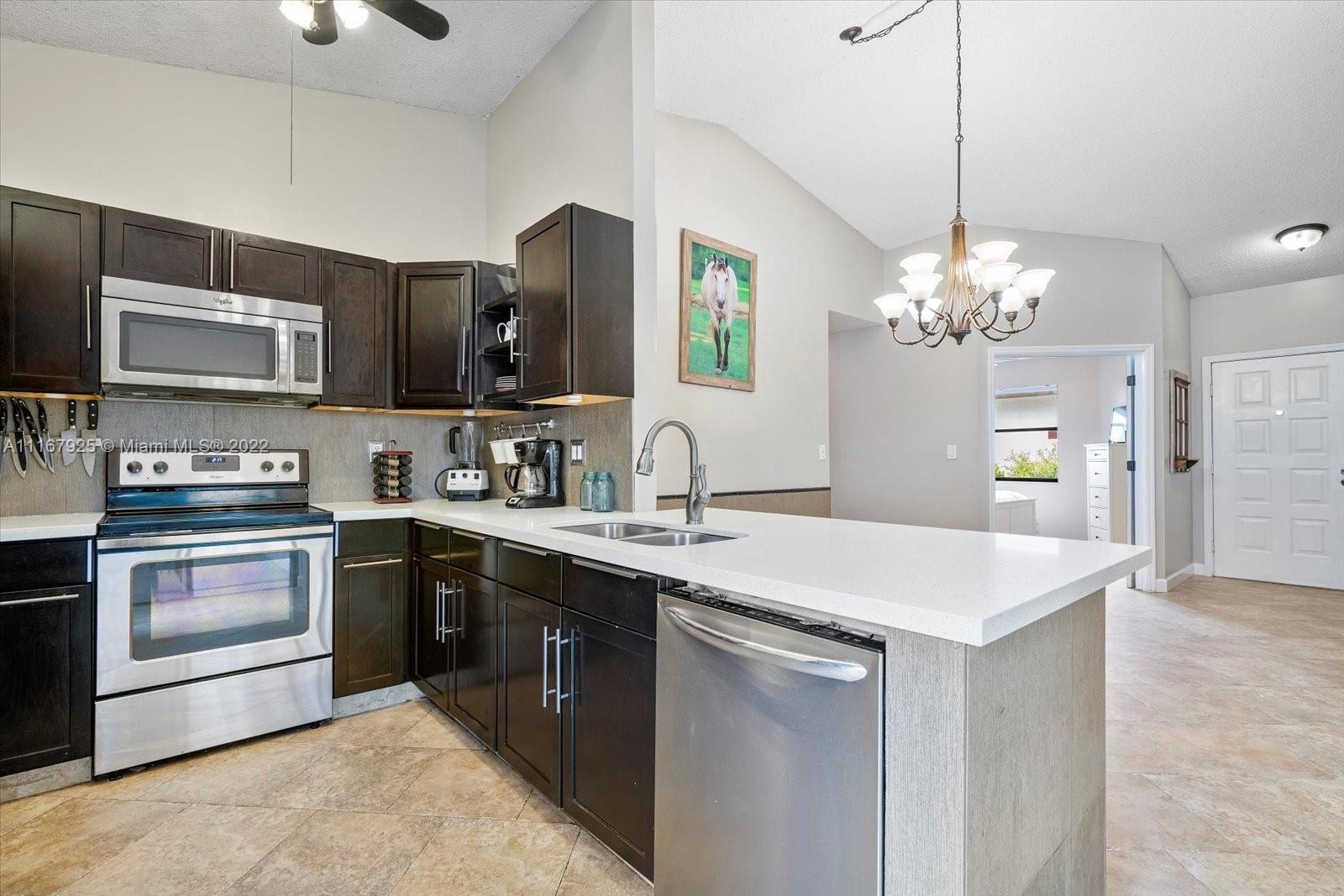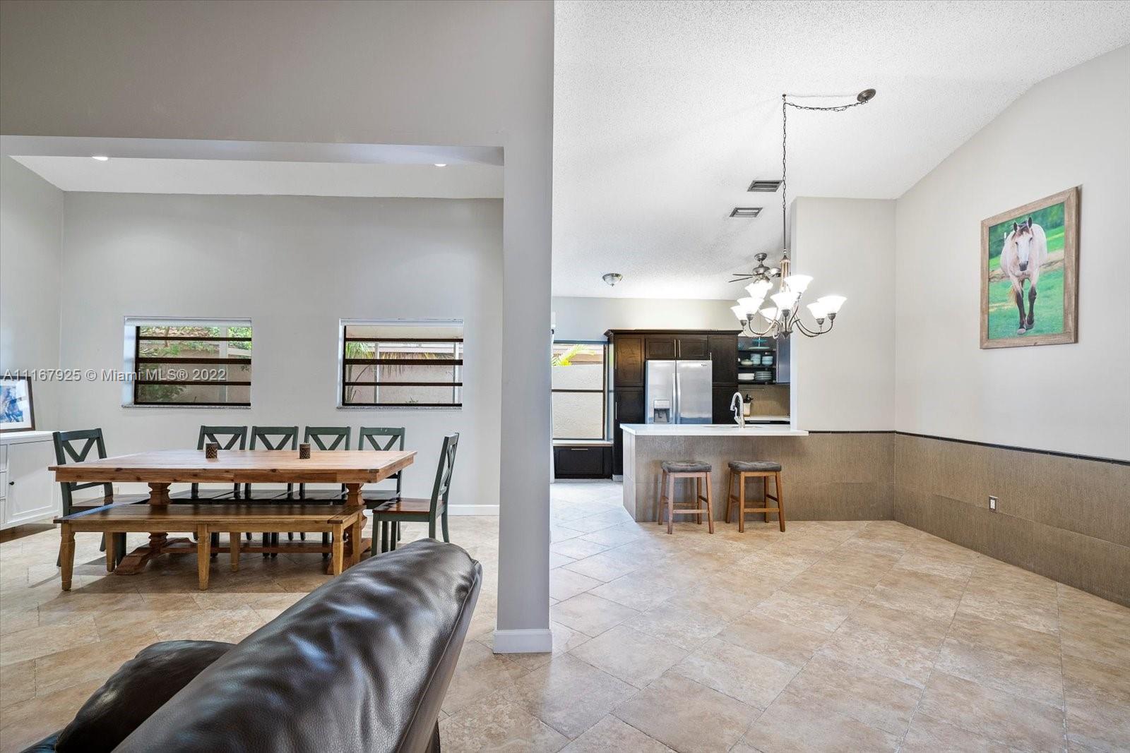 BEAUTIFUL MOVE-IN READY 3 Bedroom 2 bathroom home in the HIGHLY SOUGHT-AFTER Waterford community of Davie. This home features a Split Floor plan, Vaulted Ceilings & a LARGE Formal Dining Area. You’ll love the many things this home has to offer such as Stainless-Steel Appliances, Quartz Counters, Open Floor Plan, and an Expansive Living Room. The Spacious Primary Suite offers you a Large Walk-in closet and TWO Separate Vanity Areas. Outside you’ll enjoy the LARGE SCREENED PORCH, Lush yard with Mango Tree that’s FENCED and 2 car garage. The Community offers Low HOA Fees, pool, courts for basketball/tennis/racketball/and more. Located near Top Rated Schools, shopping and easy access to expressways. **Actual Living Space Larger than records** - square footage added by the original builder.