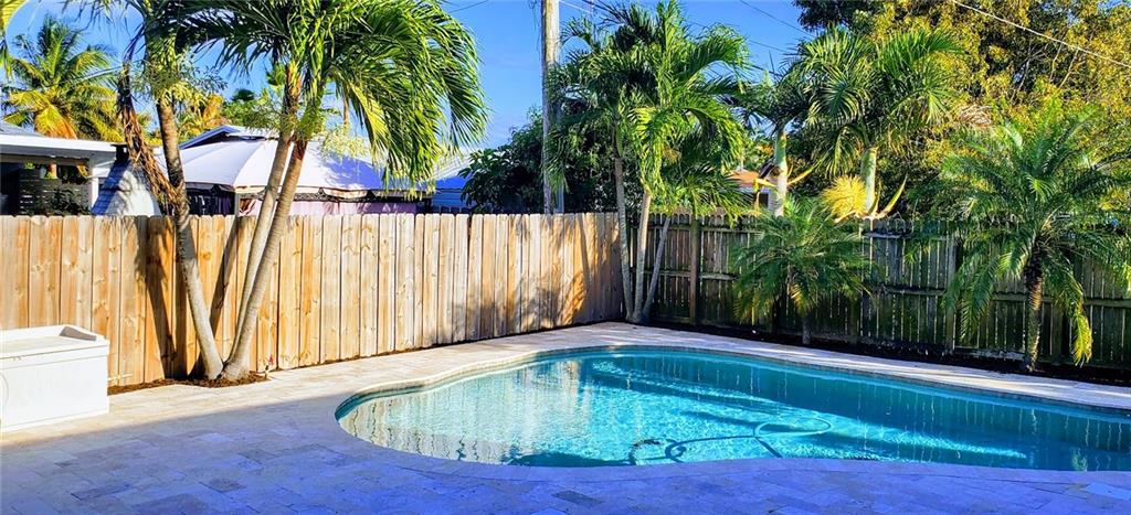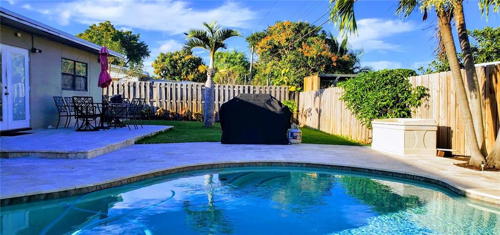 Gorgeous well-cared for pool home in very highly desirable area of Pompano Beach! Owner relocating. Lots of extra parking and room for a boat / small RV / trailer / recreational vehicle(s). Fenced yard. This lovingly maintained 3 bedroom 1 bath home can easily have an additional bathroom added. The pool is a show-stopper. Brand-new Ivory Travertine driveway, patio and pool pavers installed. New A/C and roof installed 2016. A/C just completely serviced and inspected. 2-year warranty to be inherited by buyer. New built-in microwave, stove and dishwasher installed 2 years ago. Front-load Samsung washer/dryer stay with home. Many other wonderful features.