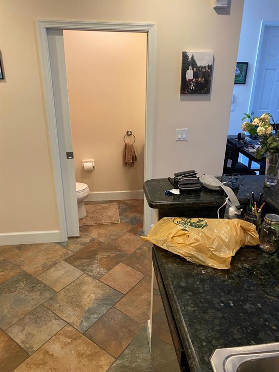 Three bedroom unit with large two car garage entry to kitchen. Finished private patio with mature shrubbery. Lightly used and well kept since new. Ten foot ceilings throughout. Partially furnished. Appliances and ceramic tile updated. granite countertops throughout. Large master bath and walk in closet.