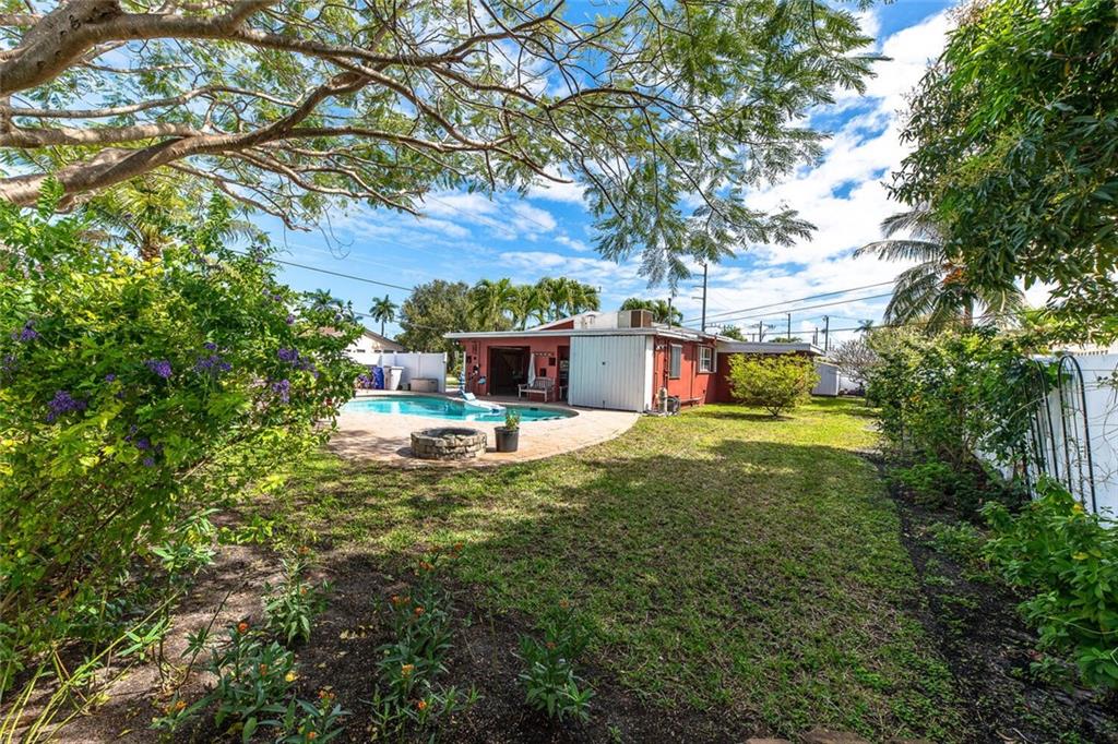 This lovely 3br/2ba pool home is a nature lover's nook! Situated on a corner lot, this home boasts an oversized, fenced yard with freeform pool and surrounding butterfly garden! Outstanding features include split bedroom plan; large master bedroom with custom cedar closer; updated kitchen with new stainless steel appliances, granite counters & wood cabinets; plantation shutters; impact windows and/or accordion hurricane shutters throughout; paver circular driveway; natural, native butterfly garden; freshly painted exterior and new roof! When not enjoying the home - bike to the beach or many nearby restaurants and shops! Hurry! This will not last!