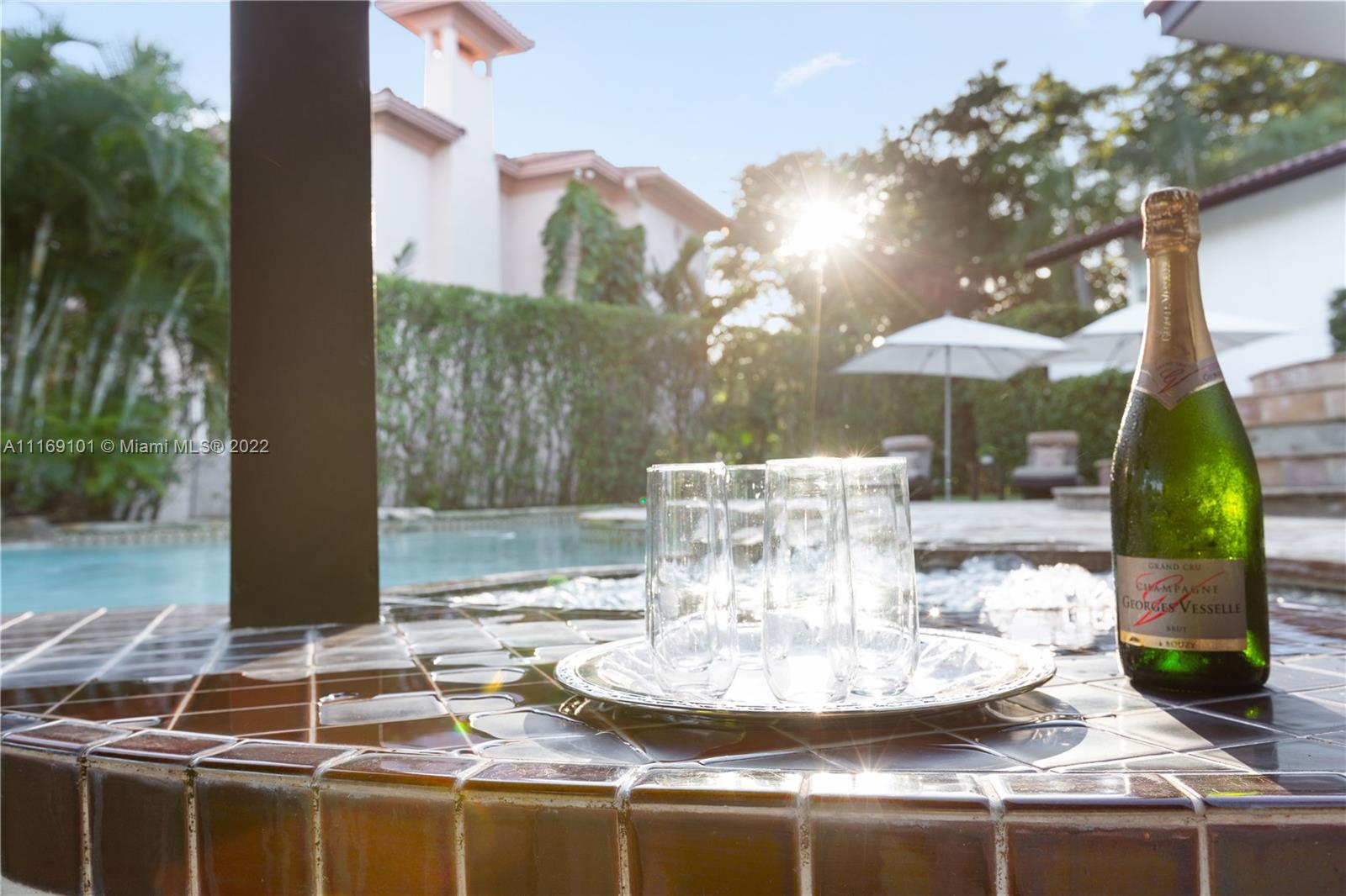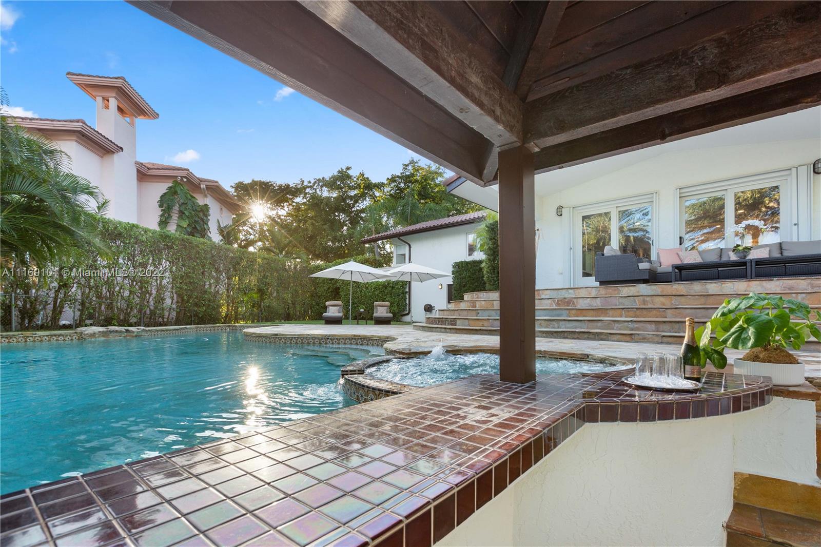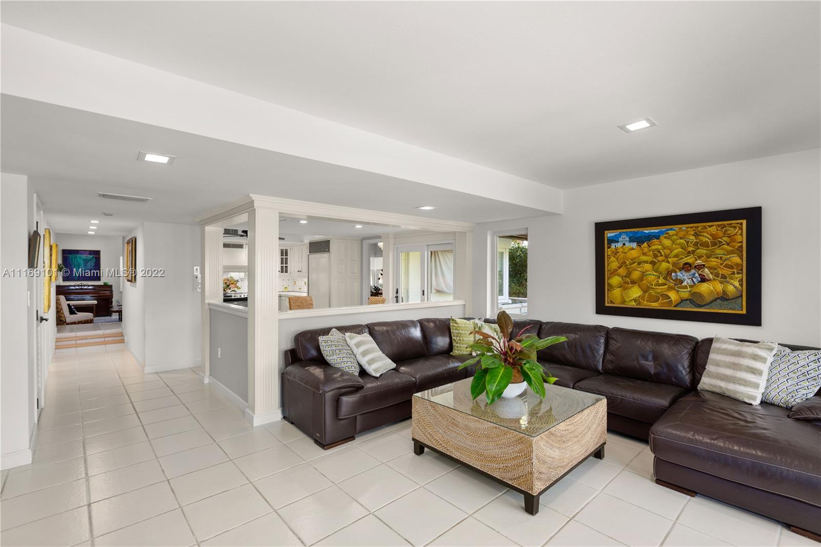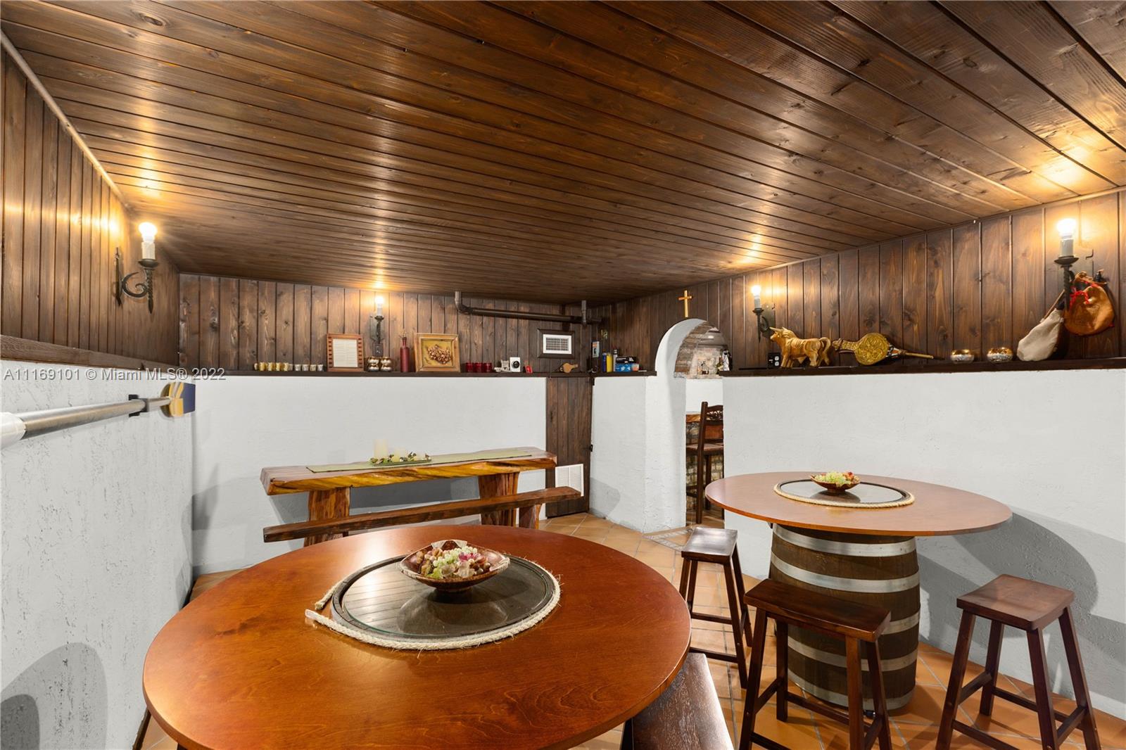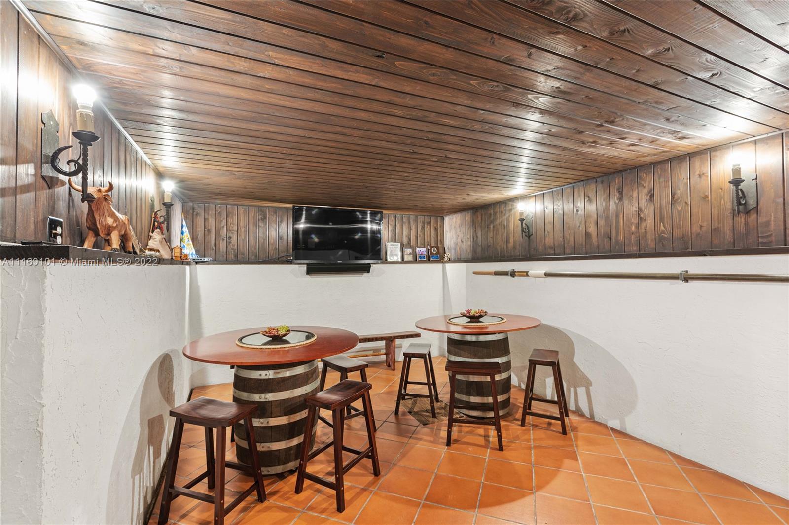 Spectacular 5-bed, 4-bath waterfront home in Gables By the Sea. This is an oasis of comfort with amazing pool, patio & summer kitchen. While there is no access to the bay, the serenity & beauty of the waterway are amazing especially while engorging the evening on the dock. This home is full of surprises, elevated to over 12-ft, it has a finished basement w/ a large traditional Spanish bar & dining room, that are perfect to catch a game or simply gather w/ friends while enjoying a glass from its temperature and humidity controlled 600-bottle wine cellar. 17k + sq ft lot, circular driveway, 2 car garage & Gym. This is a fabulous place to work at home or to come home to, after work. Priced to sell, the current owners enjoyed this home for 32 years and are ready to pass it on to a new family.