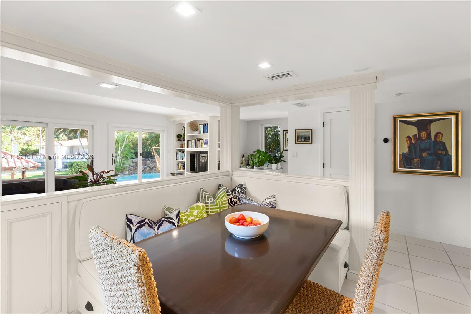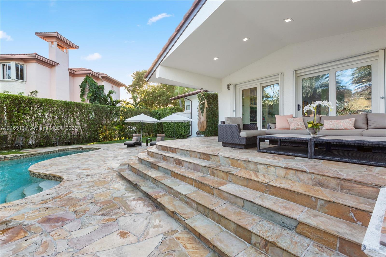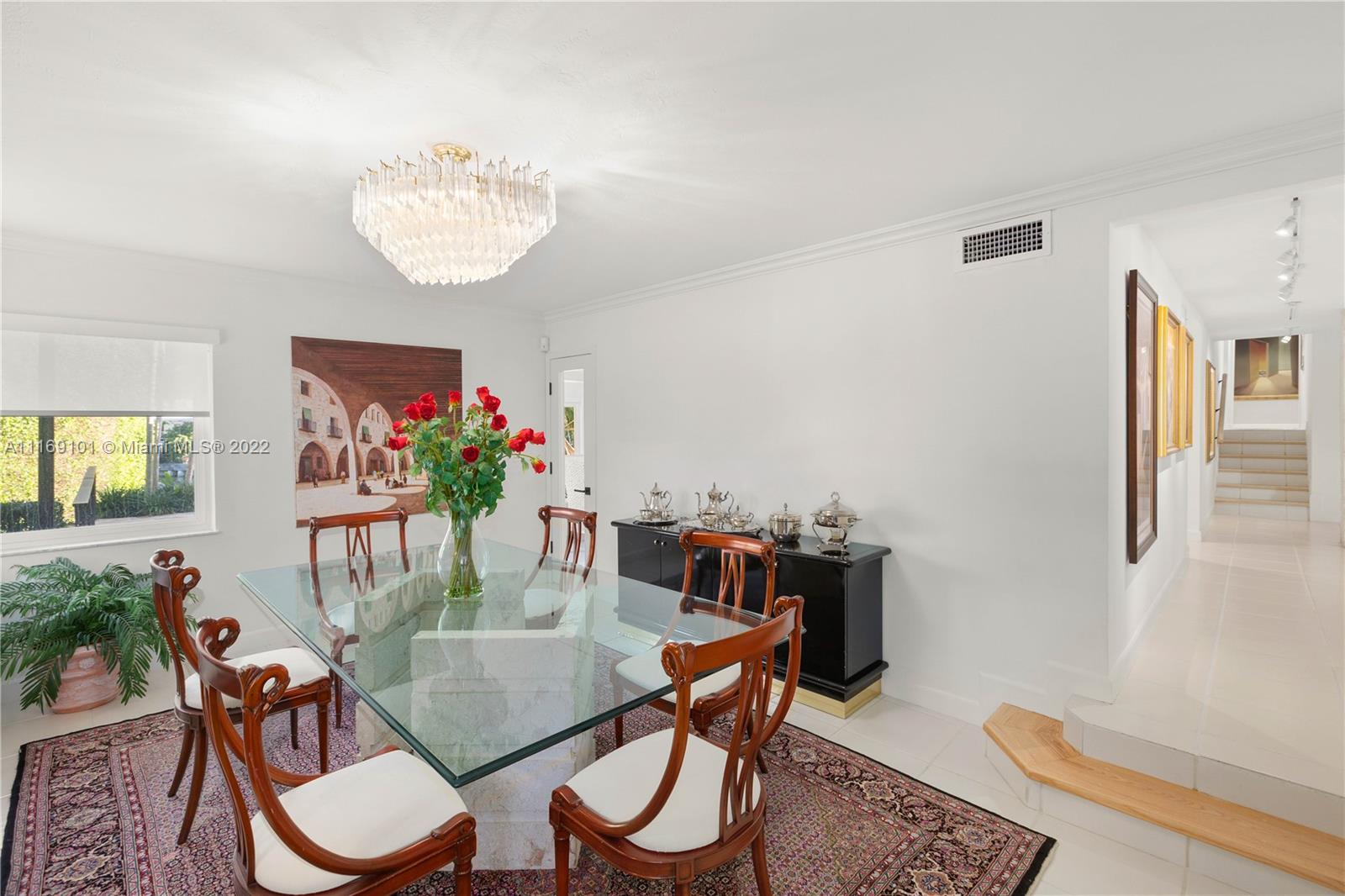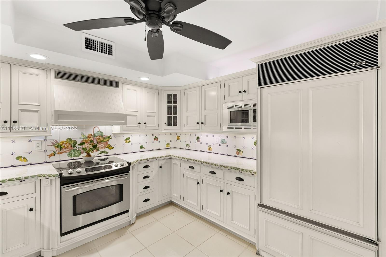 Spectacular 5-bed, 4-bath waterfront home in Gables By the Sea. This is an oasis of comfort with amazing pool, patio & summer kitchen. While there is no access to the bay, the serenity & beauty of the waterway are amazing especially while engorging the evening on the dock. This home is full of surprises, elevated to over 12-ft, it has a finished basement w/ a large traditional Spanish bar & dining room, that are perfect to catch a game or simply gather w/ friends while enjoying a glass from its temperature and humidity controlled 600-bottle wine cellar. 17k + sq ft lot, circular driveway, 2 car garage & Gym. This is a fabulous place to work at home or to come home to, after work. Priced to sell, the current owners enjoyed this home for 32 years and are ready to pass it on to a new family.