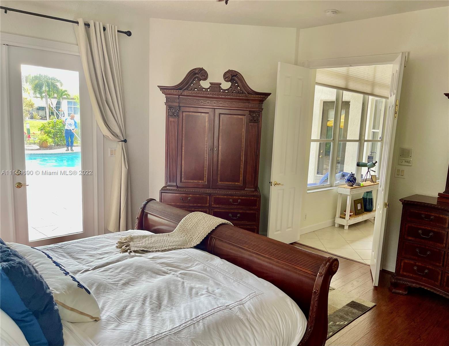 In a quiet cul-de-sac, this beautiful 4 bdrm, 4 bath, pool home boasts endless lake and golf course views of Grande Oaks executive golf course. Fabulous gated-guarded 'Lake Estate at Rolling Hills' is close to NSU and Academic Village in the heart of Davie, and ALL conveniences. A 4-way split bedroom floor plan, 13' ceilings, huge picture windows. Backyard is a tropical paradise, perfect for entertaining with huge patio and pool/spa set away from the house, fenced and with mature landscaping. Elegance at every turn. Inviting kitchen offers wood cabinetry, granite tops, wet bar, center island, newer SS appliances and large pantry. Large neutral tile in social areas and wood laminate flooring in bdrms. 2 full car-garage with hobby zone. HOA-$900/Qtr. incl: Cable, WIFI, Alarm,​​‌​​​​‌​‌​​​​‌‌​‌​​​​‌‌​​‌‌​​‌‌ Gate-guarded