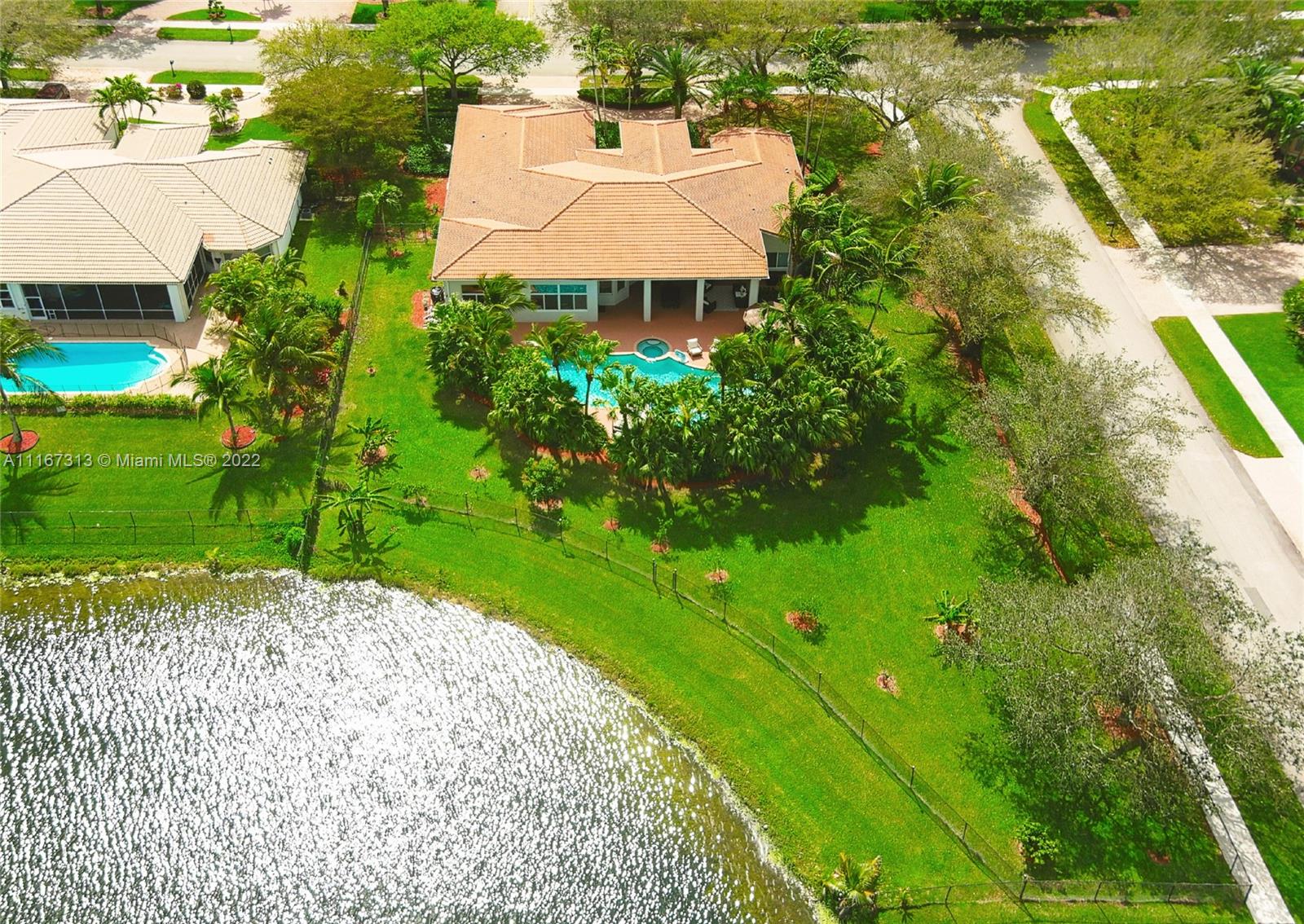 Exceptional home in the gated community of Imagination Farms. Outside: nearly an acre of a beautifully landscaped corner lot with fenced backyard allowing for all types of outdoor activities, 50-ft salt water pool with waterfall feature and a hot tub, an outdoor bar/barbeque area, large covered patio, open pool deck. Inside: 15ft ceiling, 4 bedrooms with full bathrooms, office/den area with enough space for a sizeable closet, top-quality kitchen, vast open-concept living-family-dining area, 3-car air-conditioned garage with plenty of room for a home gym, modern white porcelain floors, an abundance of light through large hurricane impact windows. The community is surrounded by parks and features 24-hr security, basketball courts, playgrounds, picnic areas. A+ Excellent List school district.