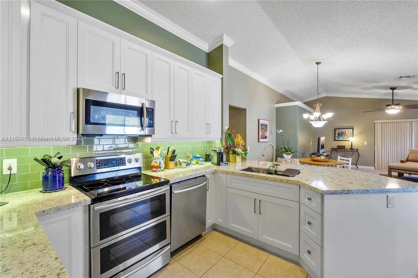 Three bedroom/2 bath home w/ 2-car garage in family-oriented community of guard-gated Savanna. All tiled living area w/volume ceilings, crown molding. Open updated kitchen with 42" white cabinetry, granite countertops & S/S appliances. Split bedroom plan. Wood laminate in bedrooms, closet systems. Walk-in closet, linen storage in master bedroom. Updated master bathroom & vanity area. Living area opens to screened patio. A/C & water heater have been replaced. Washer/dryer in garage. Hurricane panels. Paver driveway. Lushly landscaped, fully fenced, offering very private setting. Certified NatureScape. Recreational area in community offers resort-style clubhouse, multiple pools, baseball/soccer/hockey fields, basketball courts, mini-golf, playgrounds for family fun! Highly rated schools.