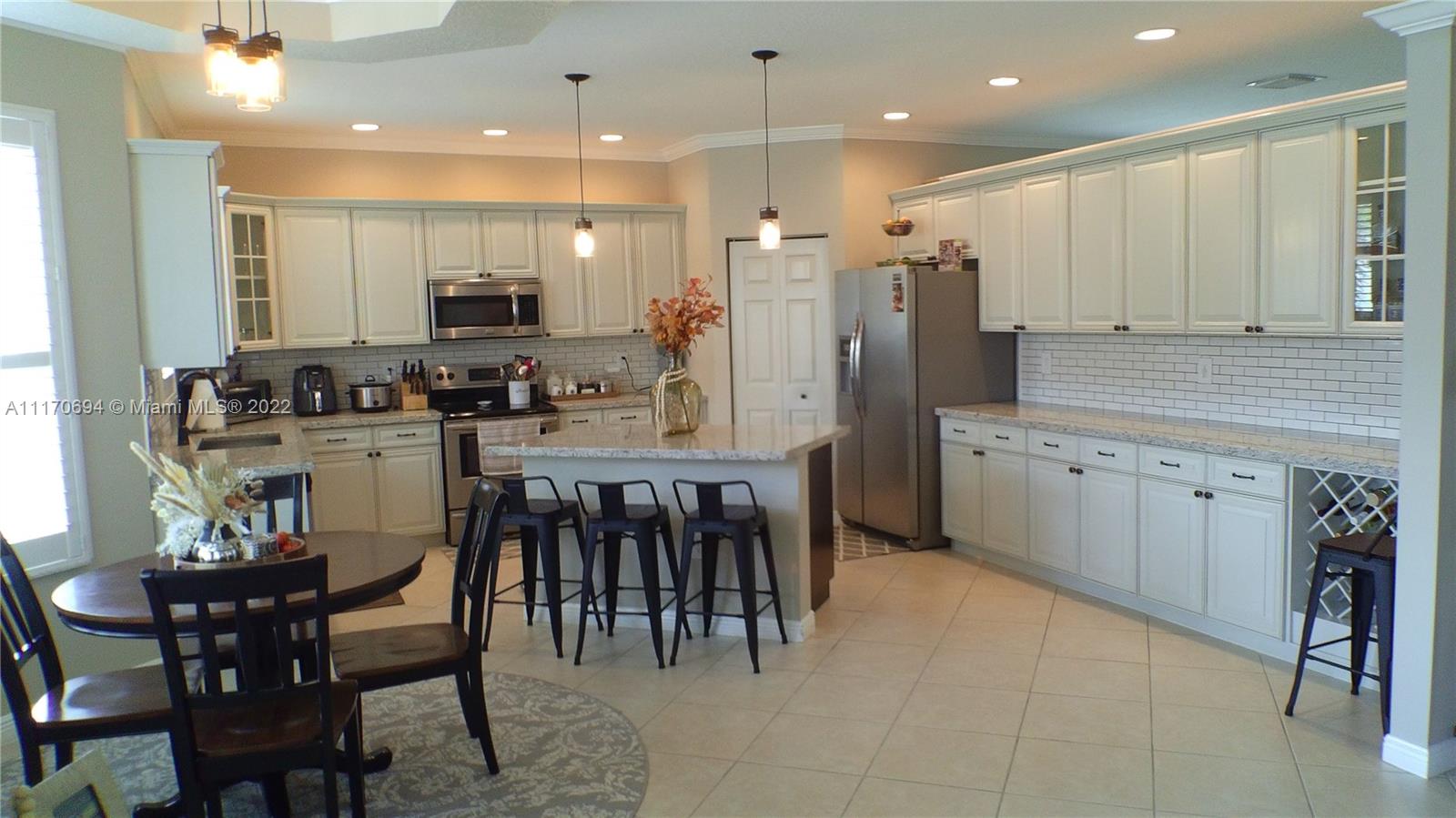 Sellers Pride is Buyers Treasure~This beautiful home features an ELEGANTLY DESIGNED AND EXPANSIVE EAT-IN KITCHEN w/NEW CABINETRY, STAINLESS APPLIANCES, & GRANITE COUNTERS~Kitchen Island for serving & entertaining~CROWN MOLDING & WIDE BASEBOARDS~EXPANSIVE FRECH DOOR in family room overlooking pool/patio~Generously sized Master that includes double french doors, Bay window, DOUBLE WALK-IN CLOSETS w/cabinetry~Both upstairs bathrooms offer DUAL SINKS w/the master providing a ROMAN TUB & separate shower~PLANTATION SHUTTERS on all windows downstairs~Interior laundry room w/sink~Riviera Isles is a sought after community w/quality schools & conveniently located near I75 for easy travel, offering tennis, gym, child play areas, sidewalks, & community pool~ACCORDIAN HURRICANE SHUTTERS ON ALL WINDOWS