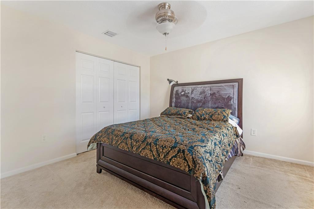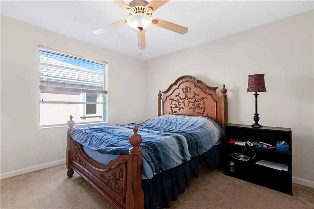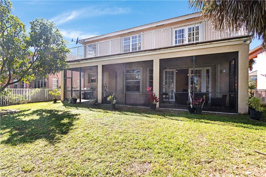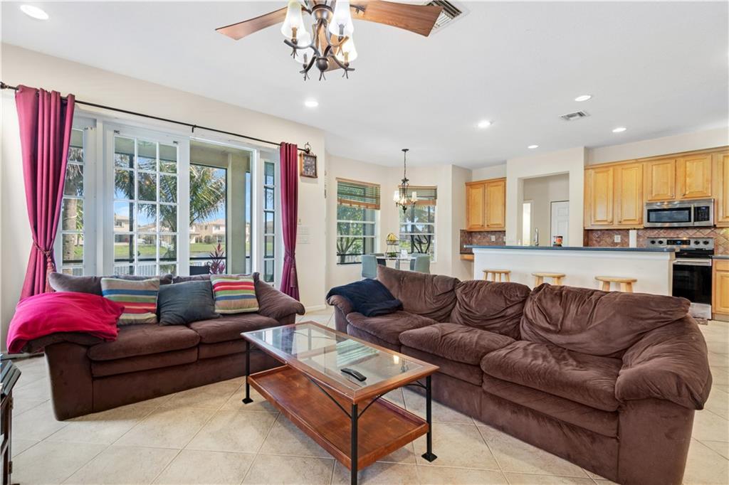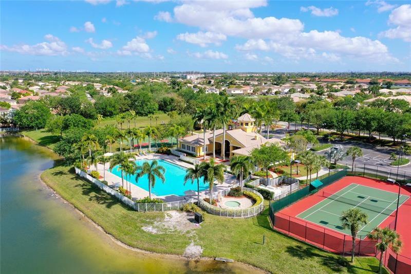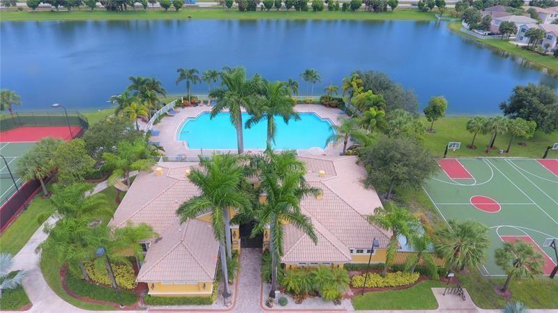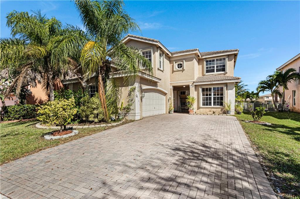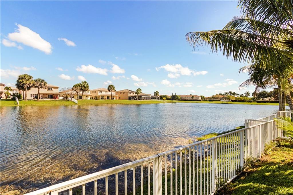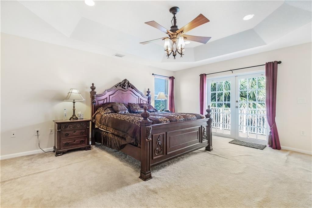Enormous lakefront Bentley model located in the prestigious and gated Silver Falls. Downstairs features eat in kitchen with island, newer stainless steel appliances. First floor bedroom with private entrance could easily become an efficiency or a private wing including full handicapped accessible bathroom with step in shower/tub. Downstairs also features formal dining and large screened porch. Up the wooden staircase with iron rod banister, leads to 4 more bedrooms AND upstairs laundry room. Primary bedroom is massive, with entire sitting area or office. Two spacious closets. Split master bathroom with adjoining shower. Also features French doors leading out to balcony overlooking the lake. Accordion shutters on all windows for hurricane protection. Two car garage with paver driveway.