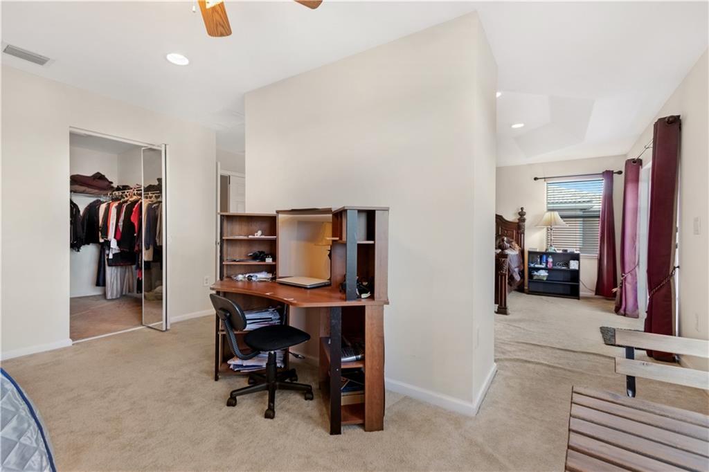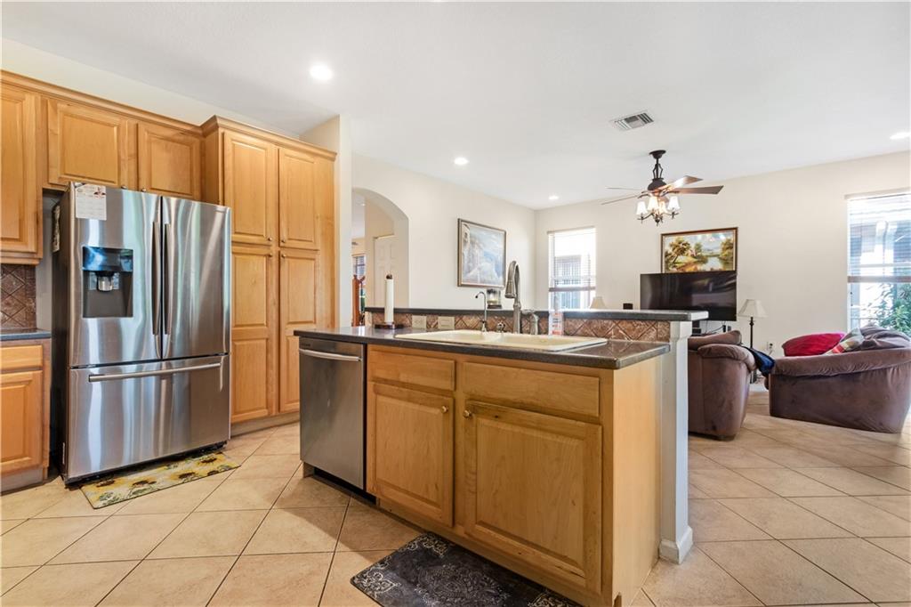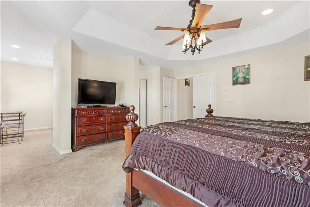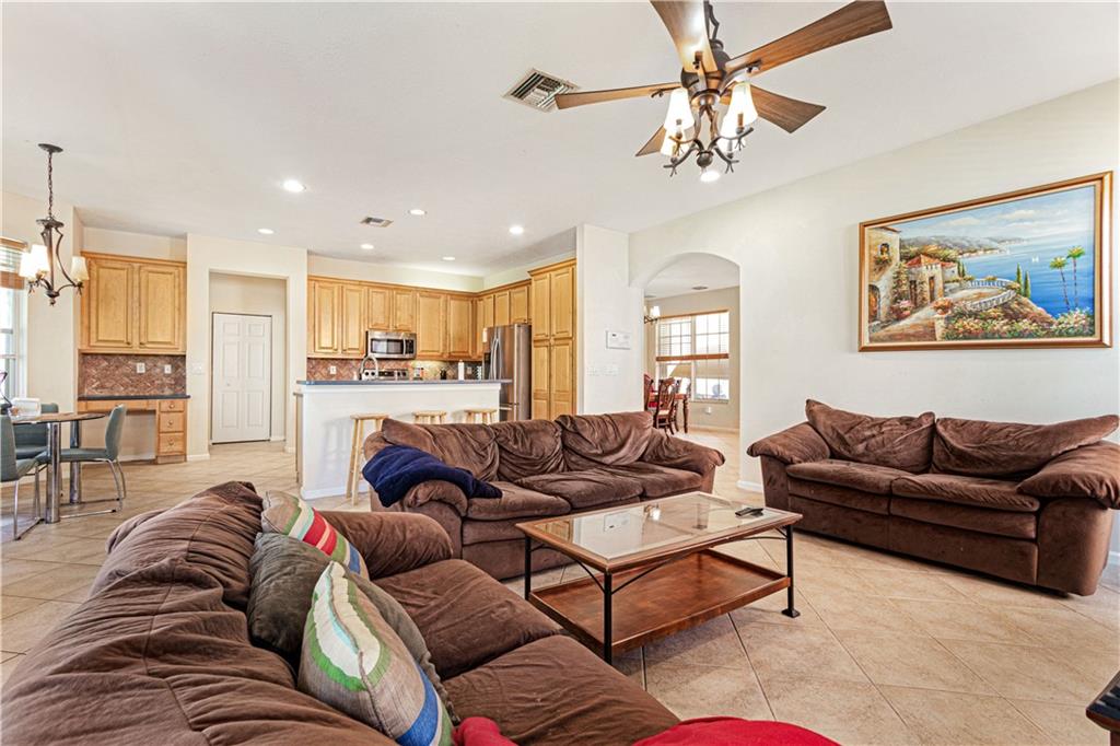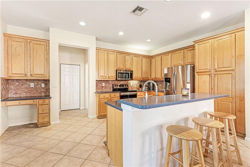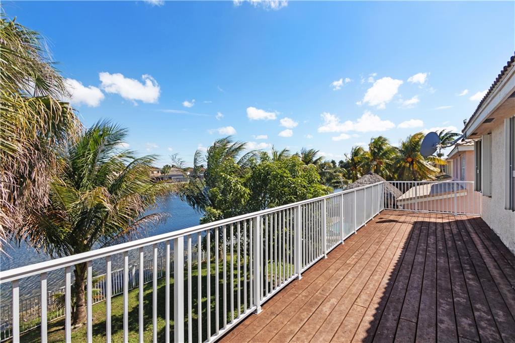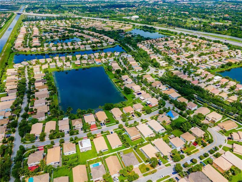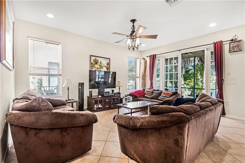 Enormous lakefront Bentley model located in the prestigious and gated Silver Falls. Downstairs features eat in kitchen with island, newer stainless steel appliances. First floor bedroom with private entrance could easily become an efficiency or a private wing including full handicapped accessible bathroom with step in shower/tub. Downstairs also features formal dining and large screened porch. Up the wooden staircase with iron rod banister, leads to 4 more bedrooms AND upstairs laundry room. Primary bedroom is massive, with entire sitting area or office. Two spacious closets. Split master bathroom with adjoining shower. Also features French doors leading out to balcony overlooking the lake. Accordion shutters on all windows for hurricane protection. Two car garage with paver driveway.