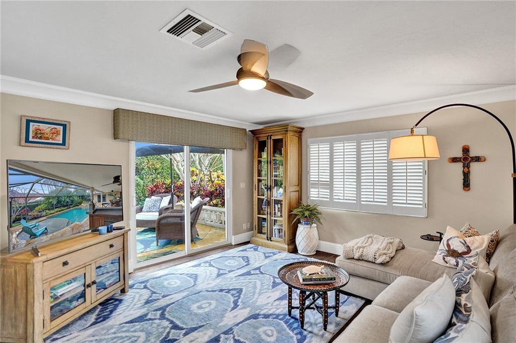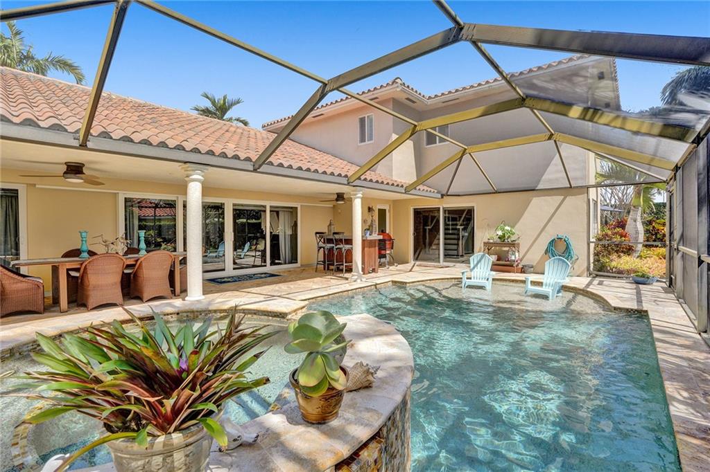 Spectacular 4 bedroom plus office 3 bath home nestled on a corner lot in Coral Ridge Country Club. Stunning backyard oasis with saltwater pool and spa surrounded by lush landscaping. Impact windows and doors. Spacious living and family rooms. Kitchen features wood cabinetry, stainless steel appliances and ample cabinetry. First floor primary suite with walk-in closet & pool views. Beautiful wood staircase with wrought iron detail leads upstairs to 2 bedrooms & bath. Interior laundry room and storage.