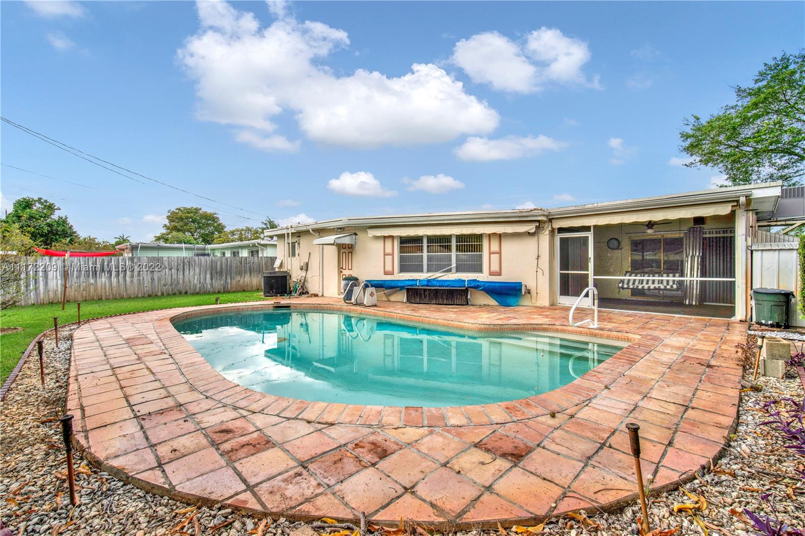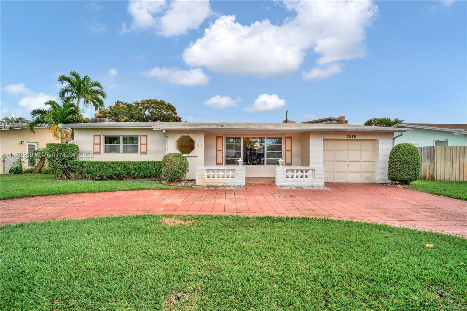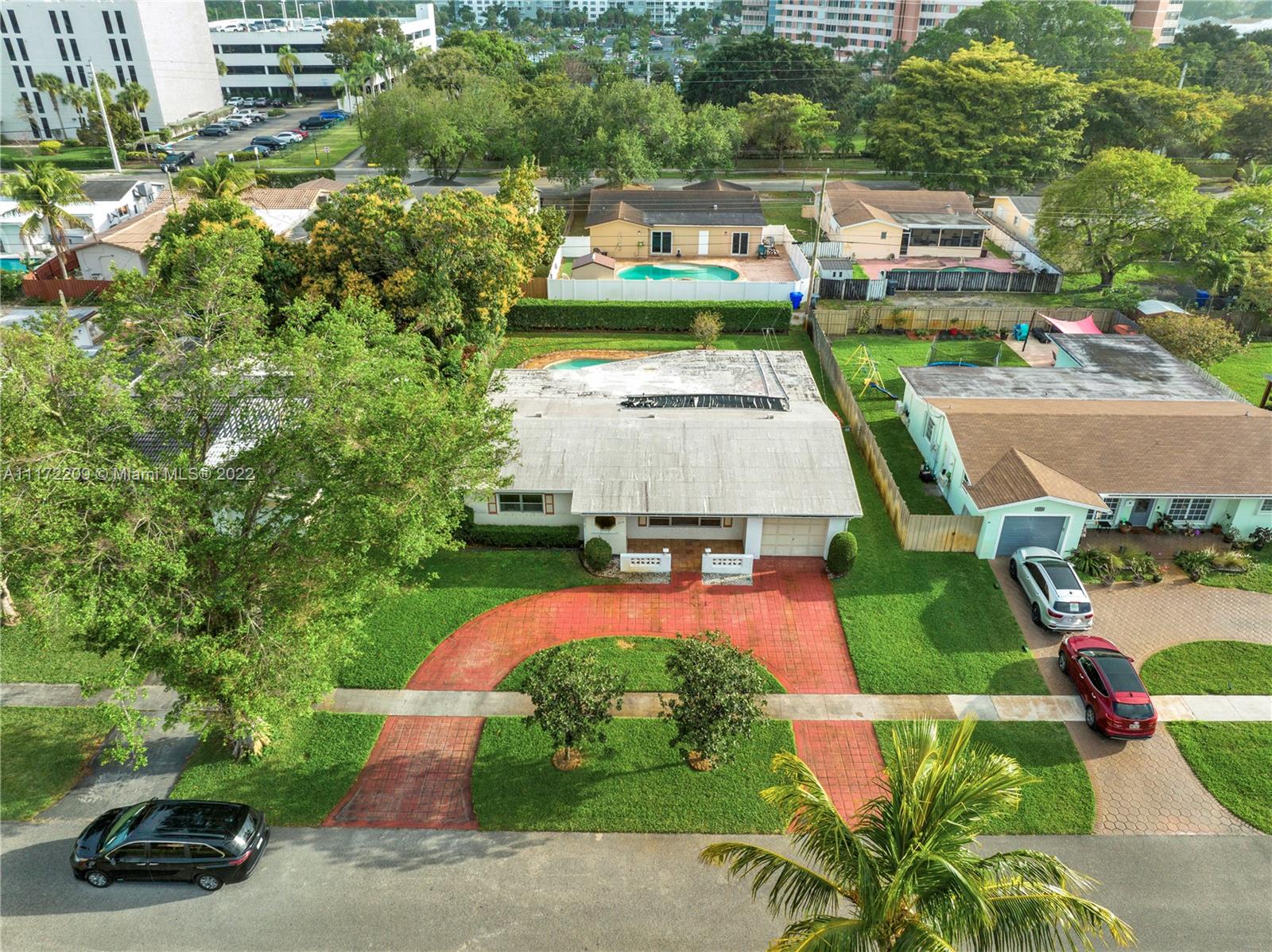 Welcome to this charming, Hollywood Hills home that offers a midcentury floor plan with nearly 2,000 SF of living space. The home features: a large, L-shaped kitchen; designated living room; separate dining area; an ample family room; spacious closets; terrazzo floors; a solar heated pool; a covered, sitting porch; electric awnings; aluminium, storm shutters; rain gutters; a circular, stamp-concrete driveway; sprinkler system; and a service alley, which means no backdoor neighbors! There have been improvements to the efficient components of the house; however, the interior is in original condition. The home has been well-cared for over the years. And although it needs a little work, it has great bones and massive potential. It also has the added benefit that it was brimming with love.
