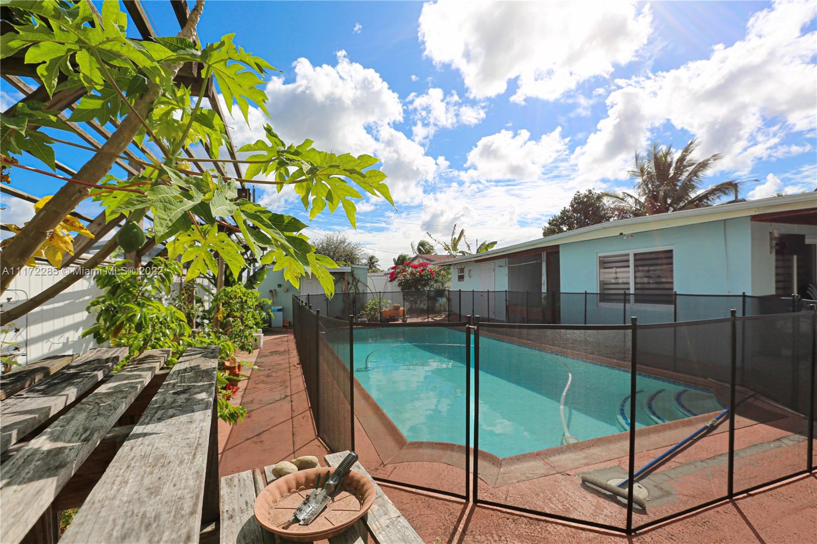 **Multiple offers received** Don’t miss your chance to own this great single family pool home perfect for starters, generational families or income potential! Main house is a 3/2 with a den or office space. 3rd bedroom was used to make a full efficiency with its own kitchen and bath Garage has been converted to a studio efficiency. Roof is less than 10 years old. Newer AC 2-3 yrs old. New impact windows & doors. Floors, Kitchen and bath only 3 yrs old. Tankless water heater. Plenty of fruit trees like Mango, avocado, plantains, papaya and more. **SHOWINGS TO BEGIN AT OPEN HOUSE ON SAT MARCH 12th 11:00-2:00 pm** *Washer & Dryer, Viviant Security system & cameras, AC in Shed and the Fridge in Garage efficiency do not convey*