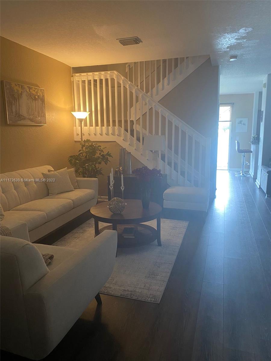 Beautiful 3 bedroom, 2.5 bath townhome in the impeccable gated community of Doral Isles. Tile floors on the first and laminate wood flooring. Private fenced in patio for family entertaining with lake front. Ample parking with 1 car garage and 2 driveway spaces.