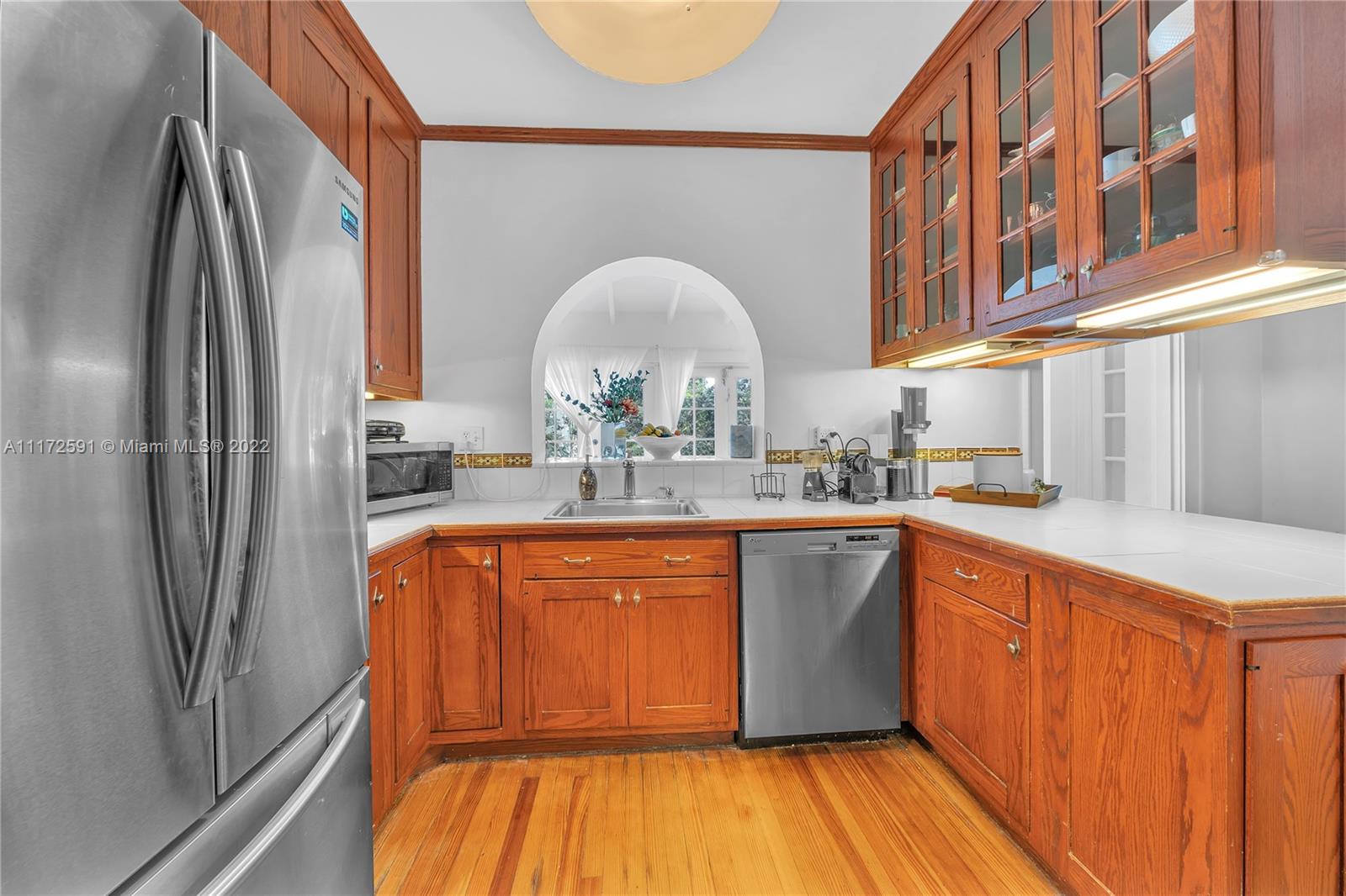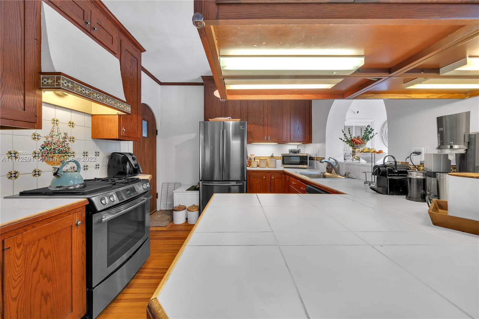 True Gables Old Spanish remodeled home features 3 bedrooms, 2 baths. Interior features a formal living room with fireplace, formal dining and eat-in kitchen overlooking the pool through french doors. Spacious master bedroom with a sitting area and updated bathroom. Two bedrooms share a Jack & Jill bathroom plus an additional guest/family room. Entertain your family or friends with the salt water heated pool and resort style backyard.