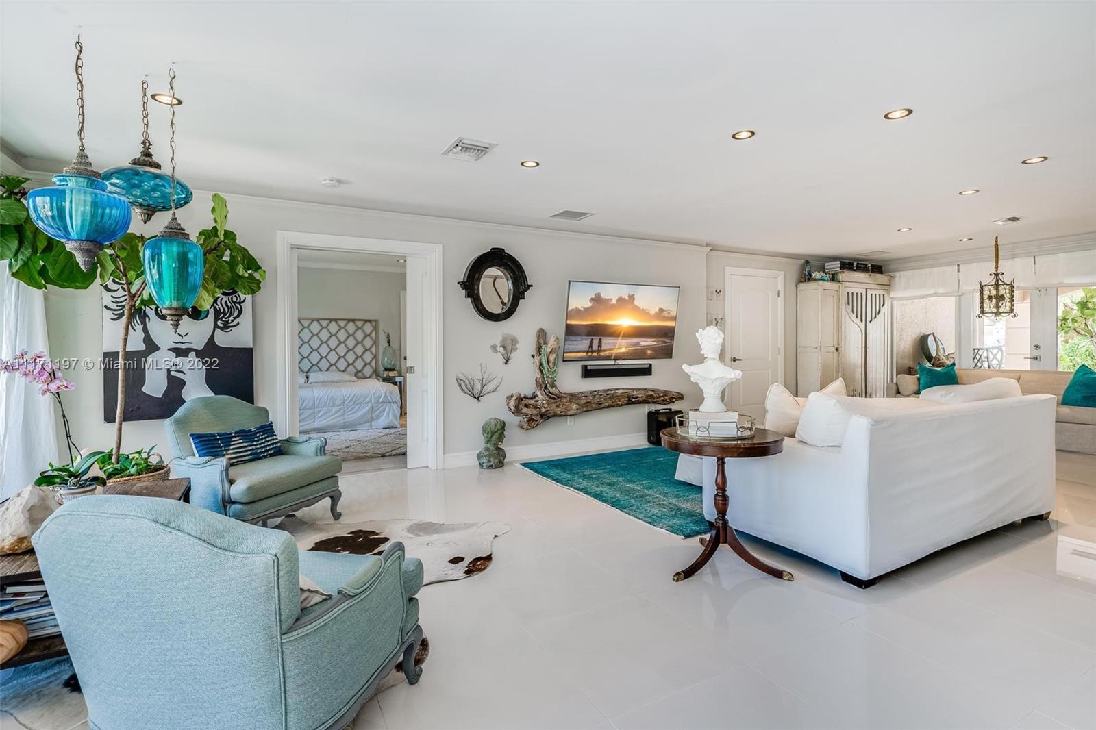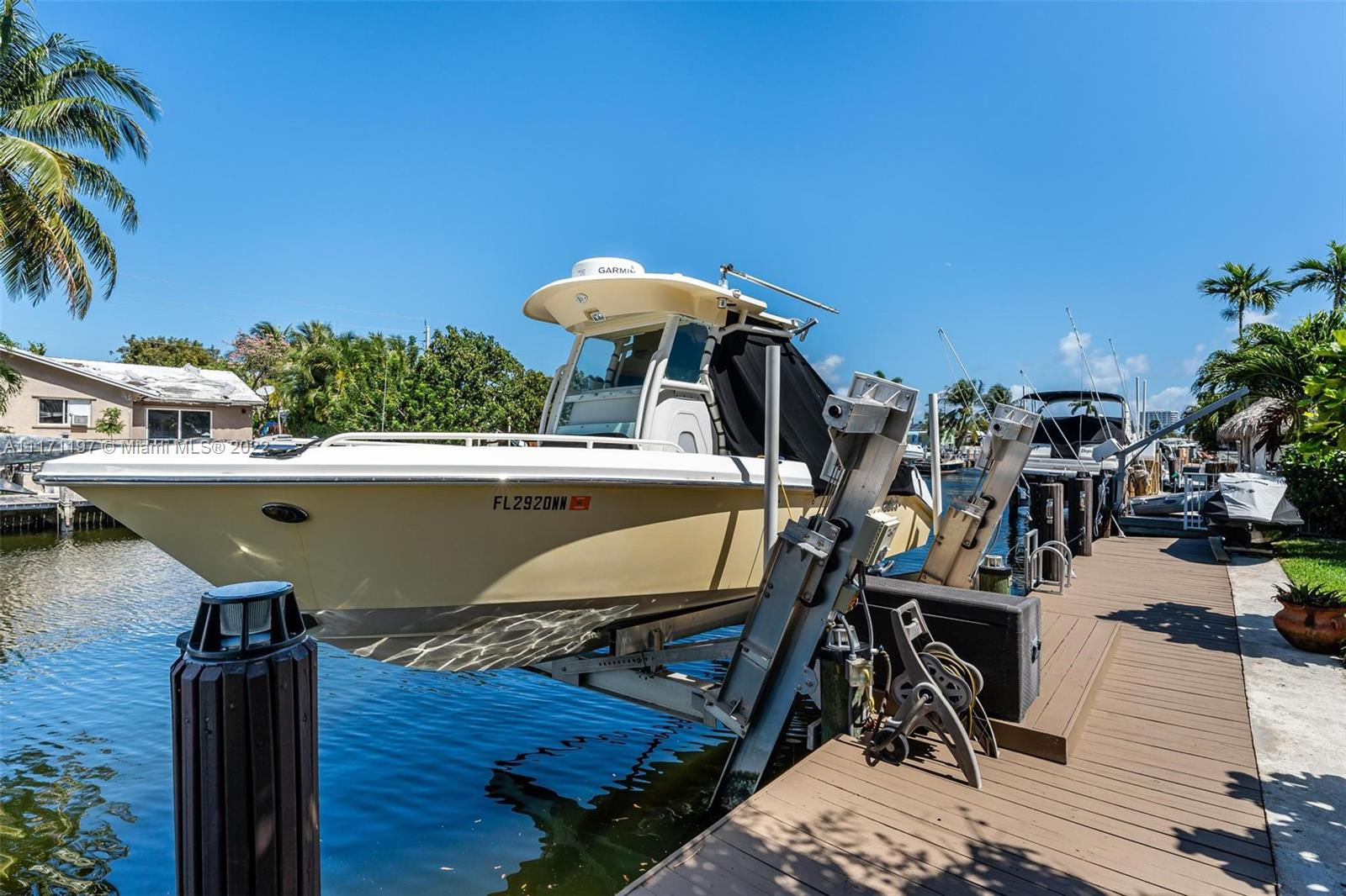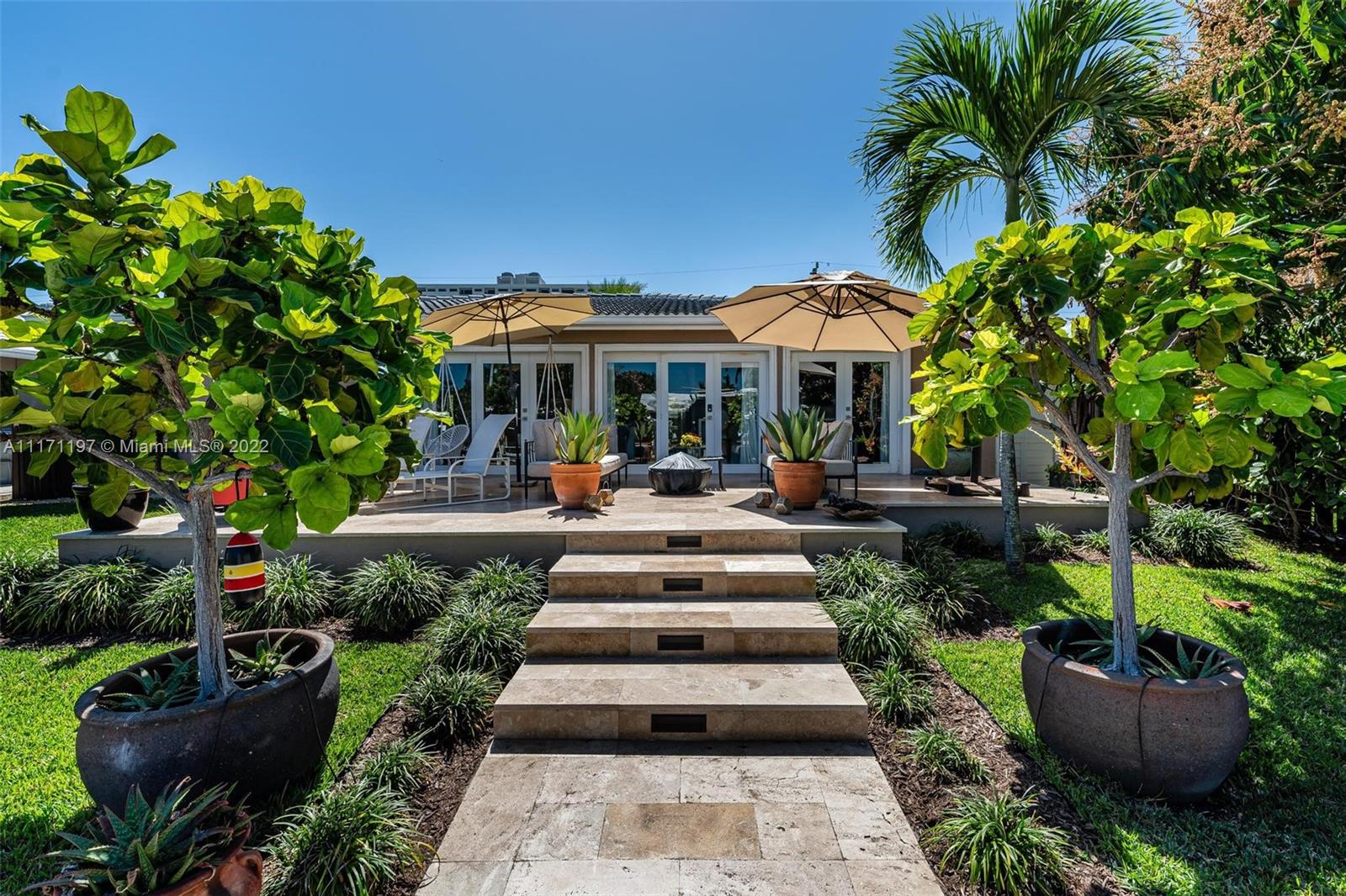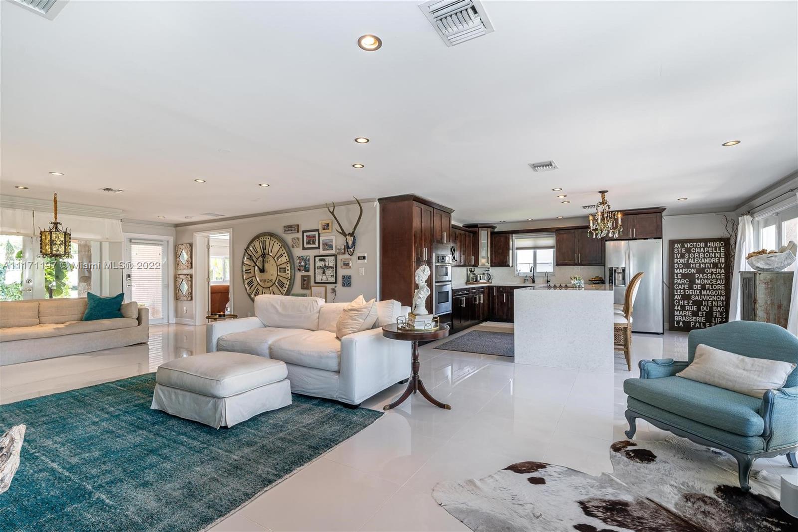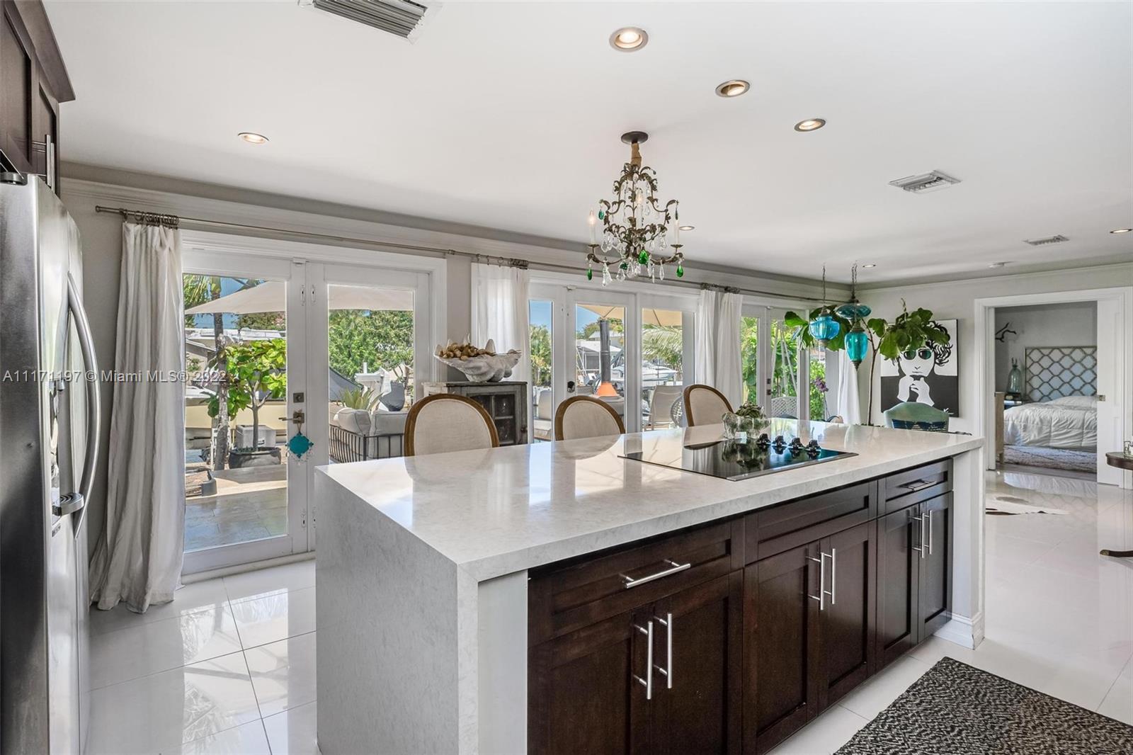 Stunning turnkey WATERFRONT 3 BEDRMS/3BATHS estate home! Located on deep water, no fixed bridges with direct ocean access. Over 60 feet of water frontage with 17,000 lb capable elevator boatlift and an electric davit. Take advantage of indoor-outdoor open concept living with French doors leading out to your beautiful custom travertine patio with built in lighting. Large, remodeled kitchen with custom quartz island for entertaining your guests while taking in the water views. Two masters with ensuite bathrooms and private guest suite with bathroom. All impact windows and glass, walk in closets, covered porch, 3 outdoor sheds. Large paver stone circular driveway with EV charging station included. Premier location close to the new Pompano pier, Hillsboro inlet, restaurants, beaches & more.