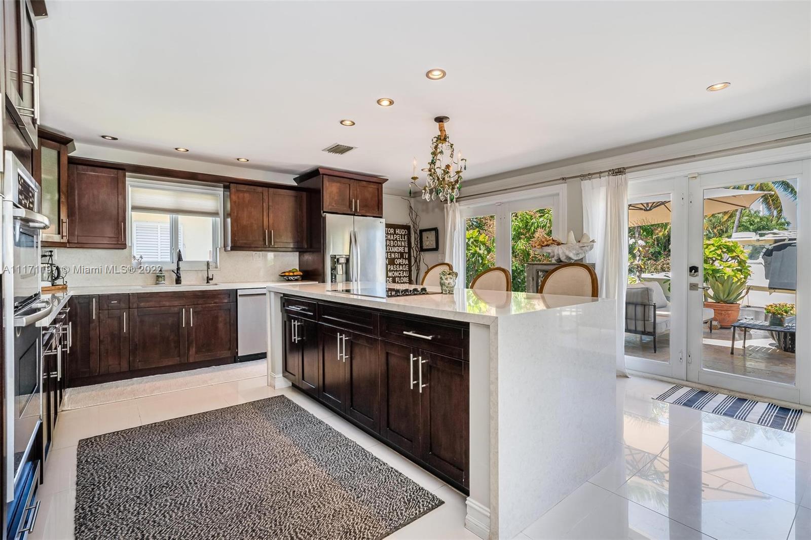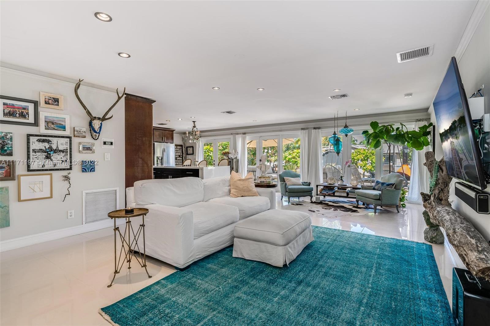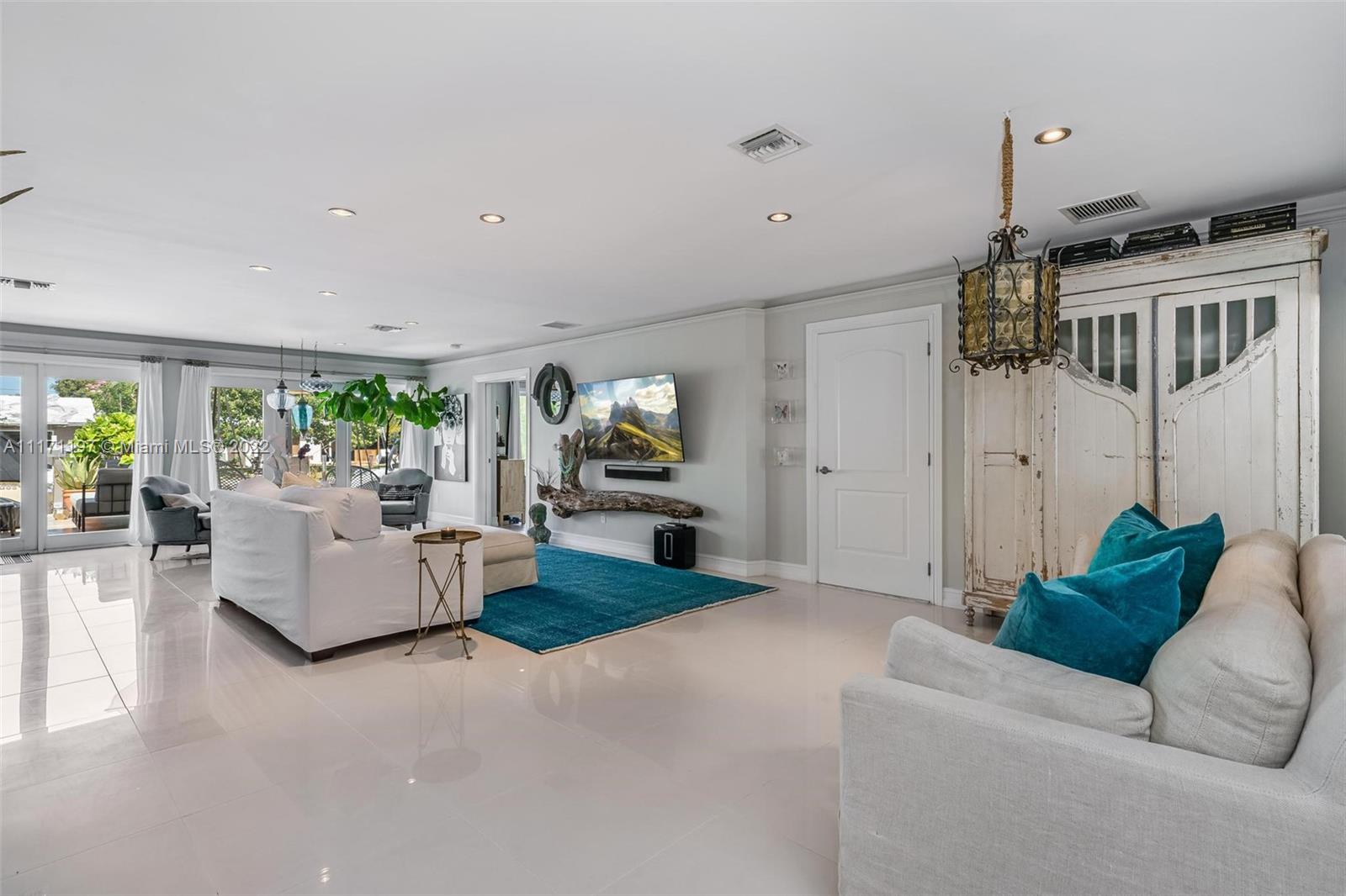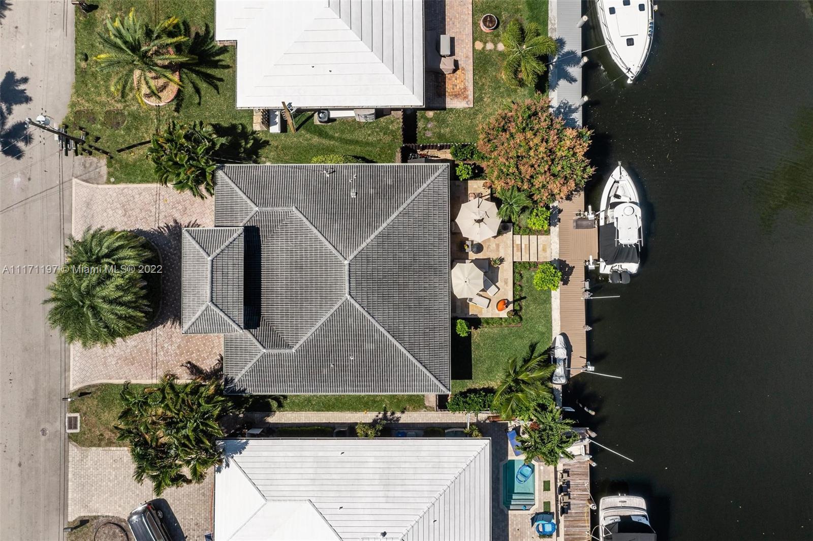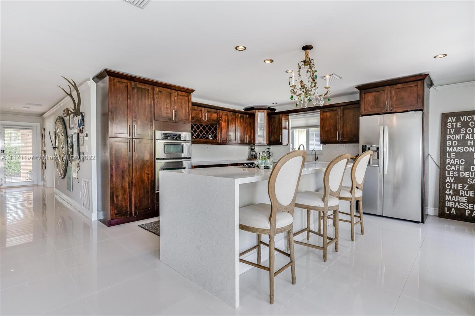 Stunning turnkey WATERFRONT 3 BEDRMS/3BATHS estate home! Located on deep water, no fixed bridges with direct ocean access. Over 60 feet of water frontage with 17,000 lb capable elevator boatlift and an electric davit. Take advantage of indoor-outdoor open concept living with French doors leading out to your beautiful custom travertine patio with built in lighting. Large, remodeled kitchen with custom quartz island for entertaining your guests while taking in the water views. Two masters with ensuite bathrooms and private guest suite with bathroom. All impact windows and glass, walk in closets, covered porch, 3 outdoor sheds. Large paver stone circular driveway with EV charging station included. Premier location close to the new Pompano pier, Hillsboro inlet, restaurants, beaches & more.