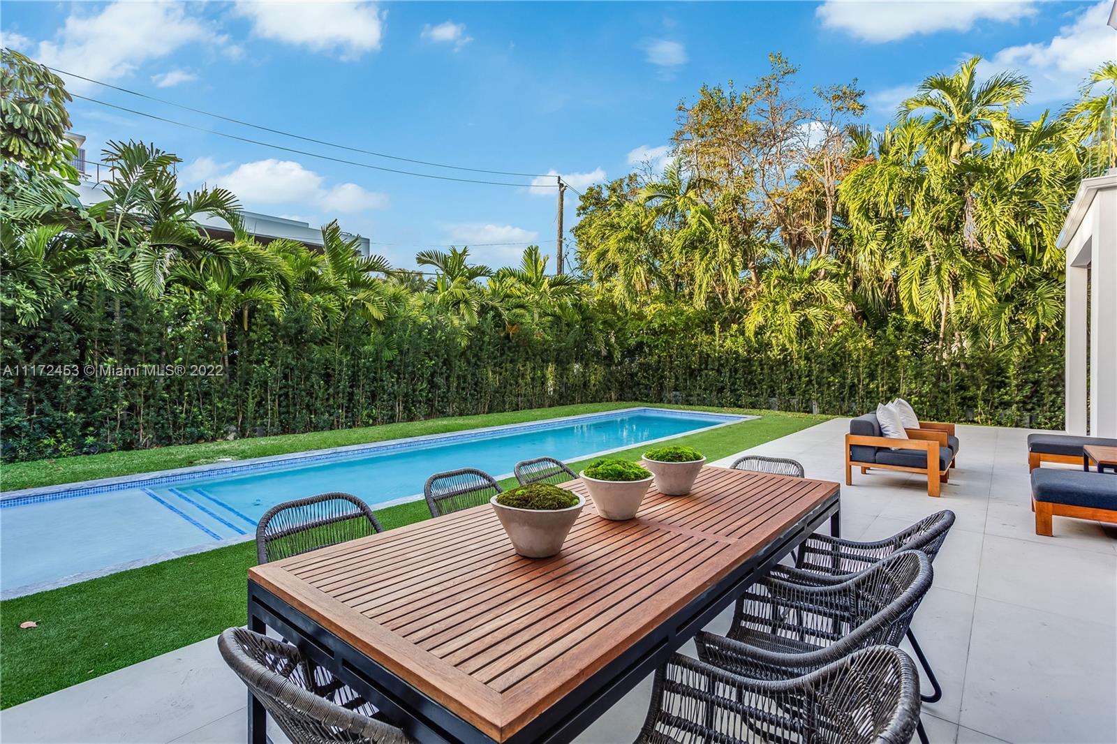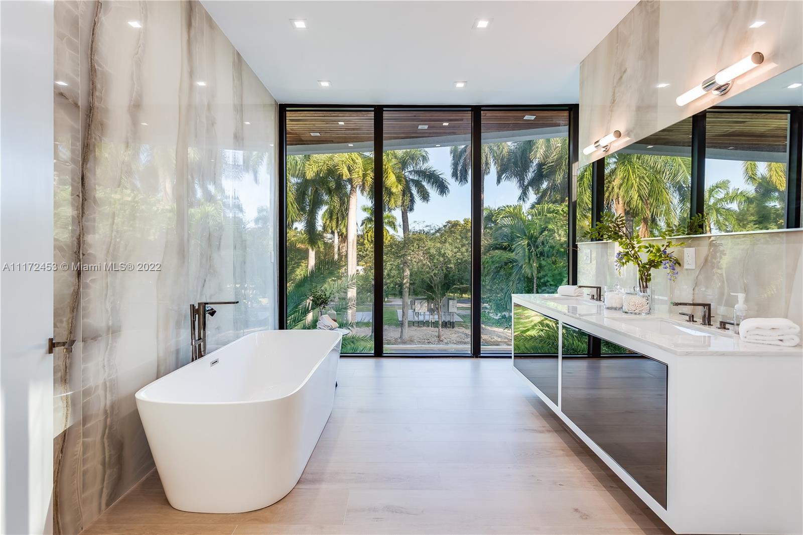 New construction modern masterpiece!! Located on prestigious guard gated Hibiscus Island, this 5bed/5.5bath is situated on a private 9,750 SF oversized lot. The homes soaring ceilings combined with open living and kitchen areas will wow you upon arrival. The large sliding glass doors in main living area create an amazing indoor - outdoor entertainment space that lead to a large pool and outdoor lounge and dining area. The main bedroom includes a large bathroom, walk in closet and its own outdoor living space with a spiral staircase leading to a rooftop for you to enjoy all of the incredible views from one of Miami's best islands.