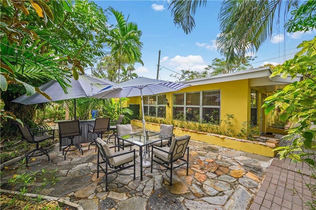 Blocks to Las Olas. A remarkably spacious 4BR/3BA Victoria Park home on a 60' x 100' lot. 2000SF + includes a Florida room with walls of windows, a generously sized living room with built-ins and a formal dining room with double French door entry and beamed ceiling. The room sized laundry provides additional storage. All bedrooms are accessed from the main hallway. The primary suite has bath attached and has access to a private patio. The remaining three bedrooms share the two additional baths. The front is well screened with landscaping behind which is a lovely patio and a terraced front entrance. The driveway provides ample off-street parking. Back yard is fenced for privacy and has easy gated access from a city owned alley.