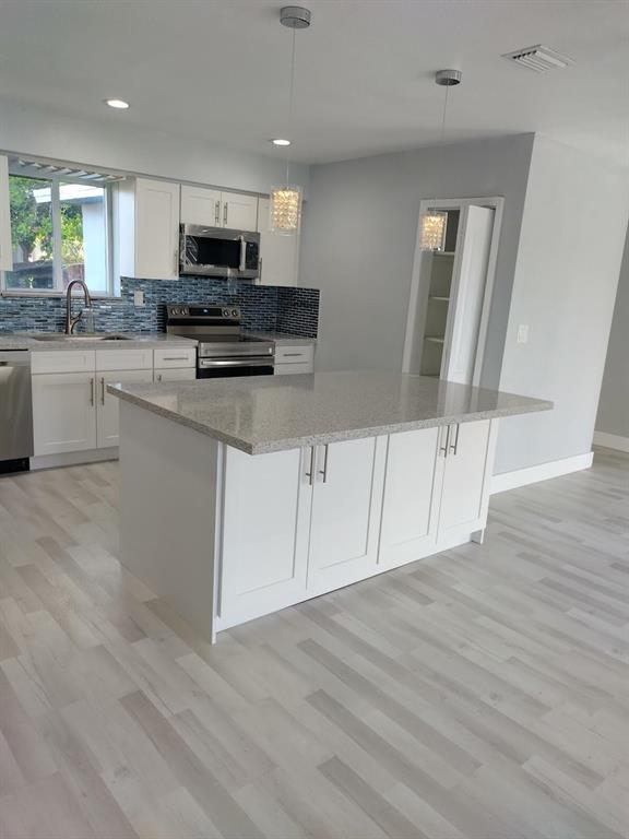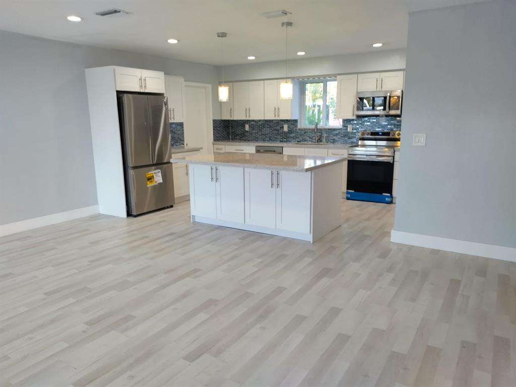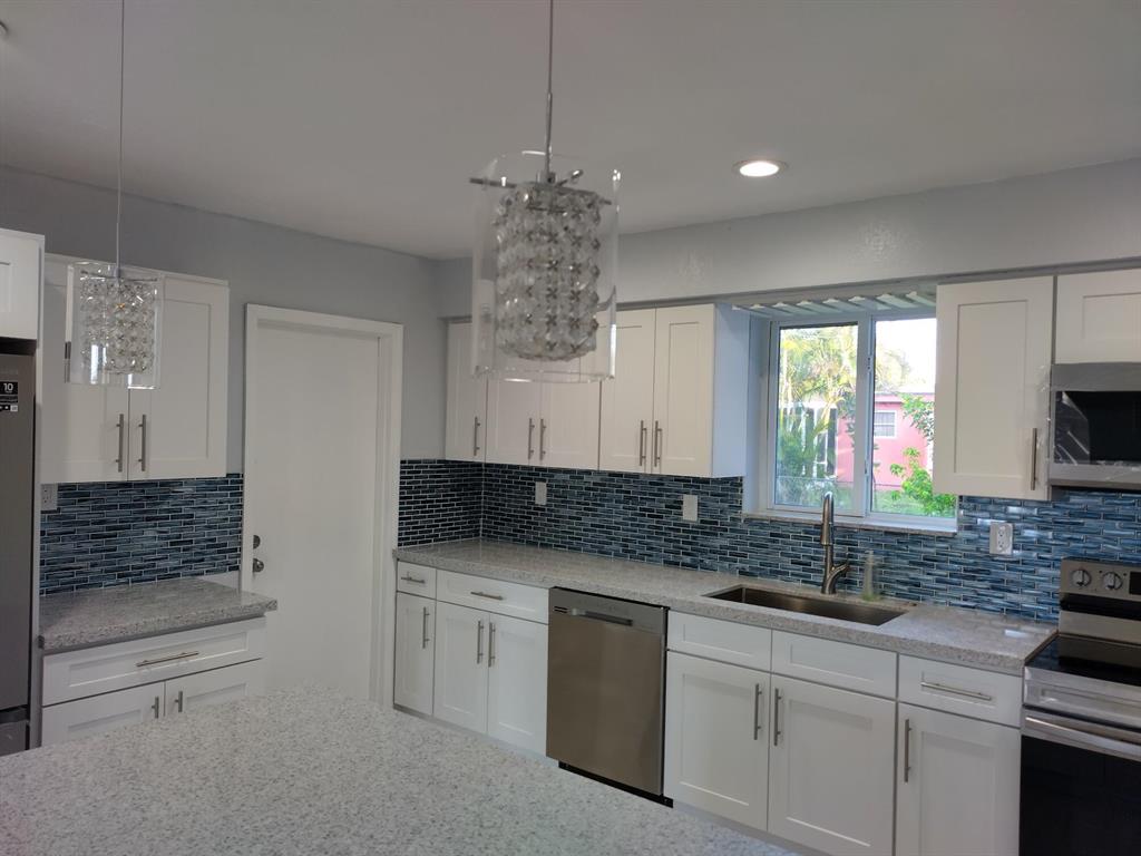 Elegant completely updated home with modern upgrades in Driftwood Estates. 3 bed 2 bath OPEN CONCEPT with living room, oversized kitchen with island, large laundry room, and one car garage. MOVE IN READY! New kitchen boasts white shaker hard wood cabinets, gray quartz countertops, island with cabinets on both sides, and a wine glass rack. All kitchen appliances are BRAND NEW! New flooring throughout house and in laundry room. BRAND NEW washer and dryer. Gorgeously remodeled bathrooms with crystal light fixtures. Shower tower with rainfall shower, hand shower, and jet shower in main bath. House is equipped with impact windows and a new impact garage door along with upgrades to LED lighting and energy efficient appliances. Eco-friendly blown-in insulation throughout house including over