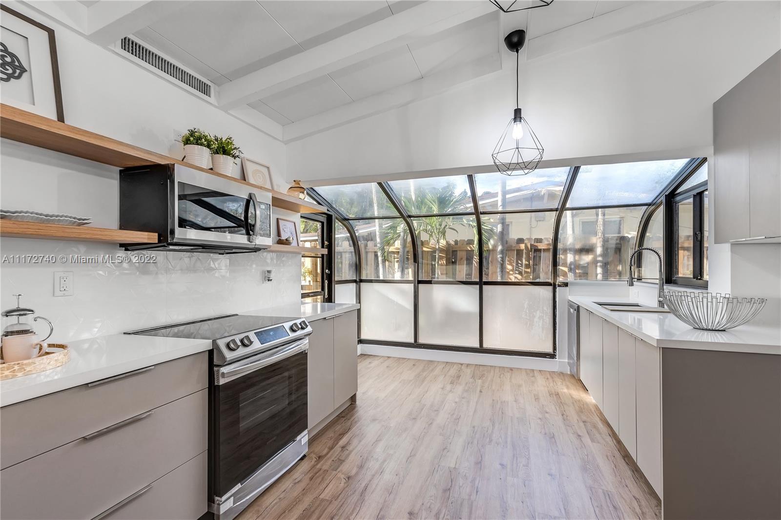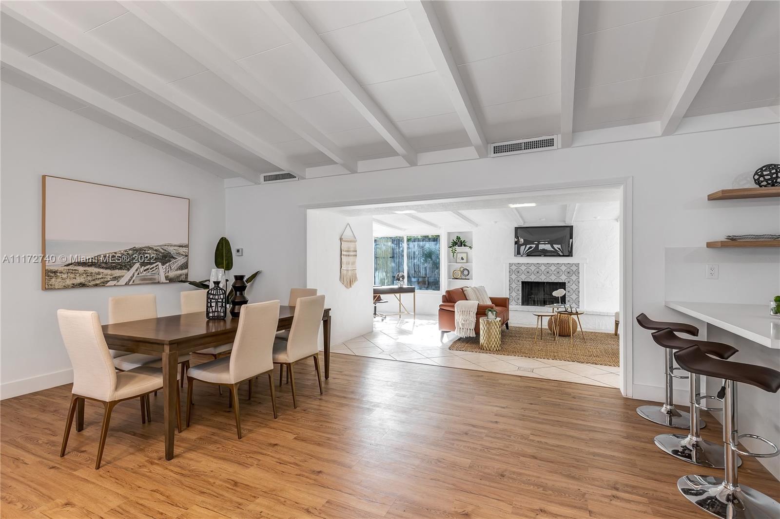 Stunning 3 bed and 2 bath mid-century classic modern home, located in sought after neighborhood of Lauderdale Isles. House was carefully remodeled to preserve the original architecture, offering an open floor plan with breathtaking vaulted beam ceilings throughout, hardwood floors, plenty of windows all over the house bringing light and nature into the home. Charming Florida room with fireplace, large formal dining area, open and unique layout kitchen with atrium dining area, quartz countertops and stain steel appliances. Completely fenced and private backyard, with access to the park and community boat ramp from the gate on your fence. Lots of natural sun light makes this a Hidden paradise, with a tropical landscape a dream home, a Must see home. Call for appointment today.