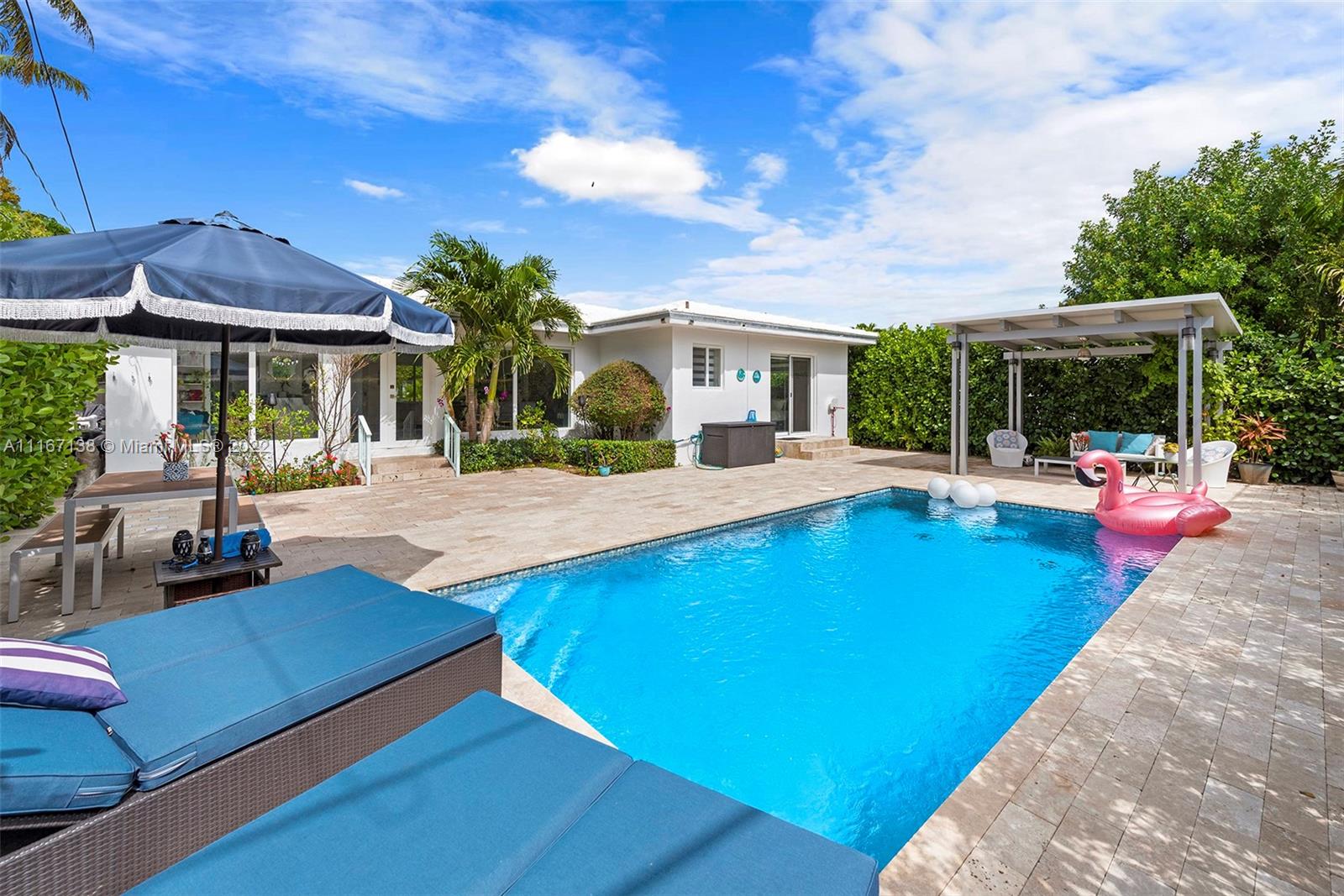 Gorgeous completely renovated, designer appointed 3 bed/3 bath home in Normandy Shores gated community!!! NEW POOL, NEW ROOF, IMPACT WINDOWS, NEW DRIVEWAY, NEW 3rd BED & BATH. EVERYTHING DONE WITH PLANS AND PERMITS! Open layout w/ stunning open kitchen & cellar. Great for entertaining. Large Bedrooms, Master Bedroom has a walk-in closet! Plenty of custom closet space. Updated bathrooms with walk-in showers & bathtub. Natural light throughout. Italian porcelain floors. Driveway fits up to 3 cars. Great curb appeal with lush landscaping. Walk to beach/Normandy circle shopping/restaurants. Gated community with Golf Course, Tennis Courts, Children's Playground &d Clubhouse.