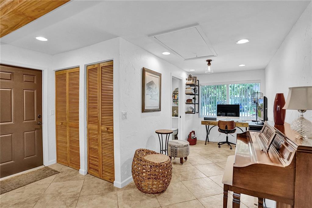 IMMACULATE & TOTALLY remodeled single family home in East Pompano close to the beach & boat ramp.The residence was recently painted inside & out the 2 bed & 2bath + DEN residence offers a NEW AC, Updated Electrical & Plumbing, IMPACT WINDOWS thru out, recessed lighting, New ceiling fans, 20x20 tile thru out, newer Washer & GAS dryer. Kitchen is bright w/ white wood cabinetry, Corian counter tops & gas stove. Dining Room is spacious with a wood architectural ceiling, master bath is updated with quartz countertops, Kohler faucets & an oversize tub. Bedrooms have spacious closets. Large Patio/Lanai offers additional entertainment/living space. The driveway is oversized with pavers large enough to accommodate 2+ cars & a boat,shed& attic. Great Curb appeal and lushly landscaped Will not last!!
