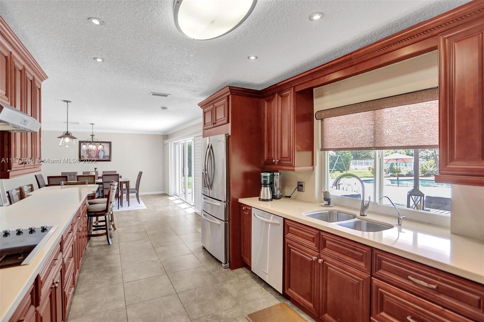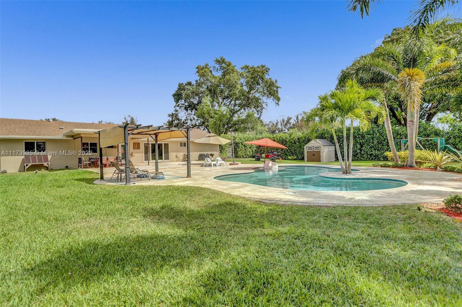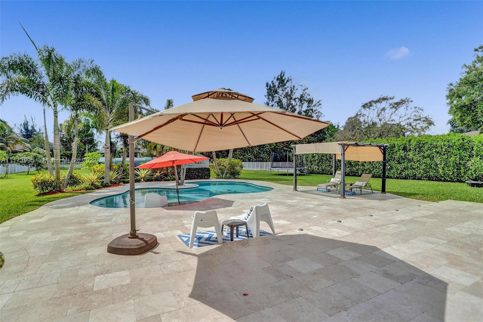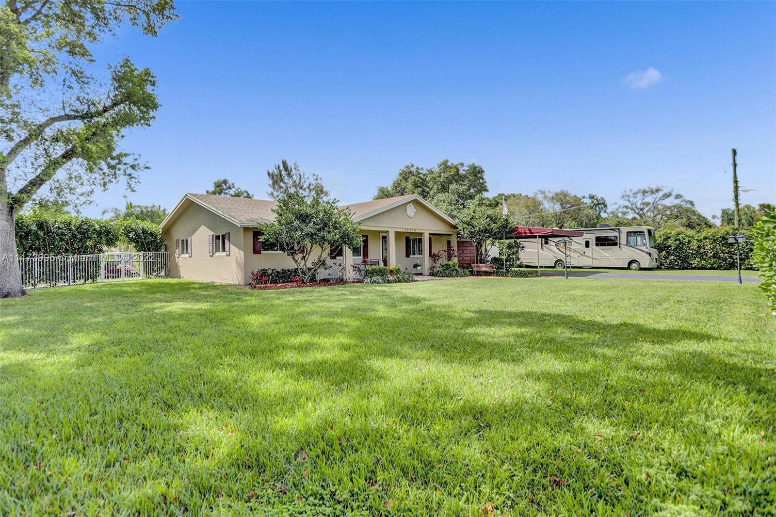 Beautiful updated house with 3 bedrooms, 2 bathrooms, office space, 2 car garage and a modern pool that is only 5 years old. IMPACT WINDOWS AND DOORS THROUGHOUT. Kitchen was redesigned and updated less than 5 years ago to include an expansive quartz countertop space and bar. Kitchen and bar appliances include Stainless steel fridge, flat top stove, wall oven, Microwave, dishwasher, ice maker and wine cooler. The Bathrooms were updated less than 5 years ago. Waterproof laminate Floors in bedrooms were replaced less than 12 months ago. Roof replaced in 2006. AC was replaced in 2014. Well was replaced about 3 years ago with a state of the art 200 Ft Deep unit with two pumps. Lots fruit trees including mango, banana, lemon, orange, and papaya. it will not last!
