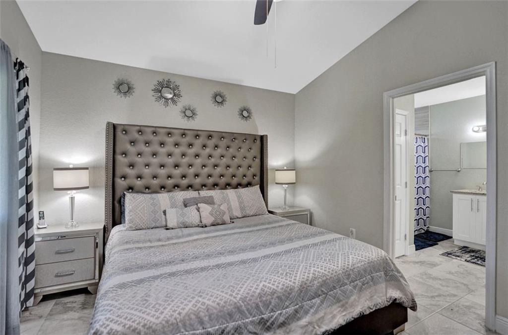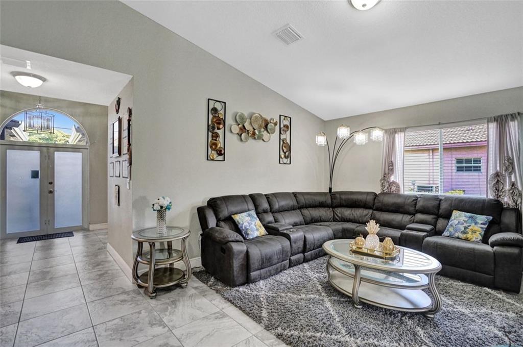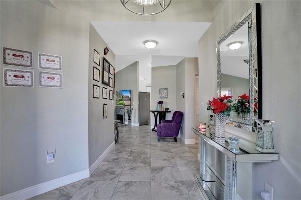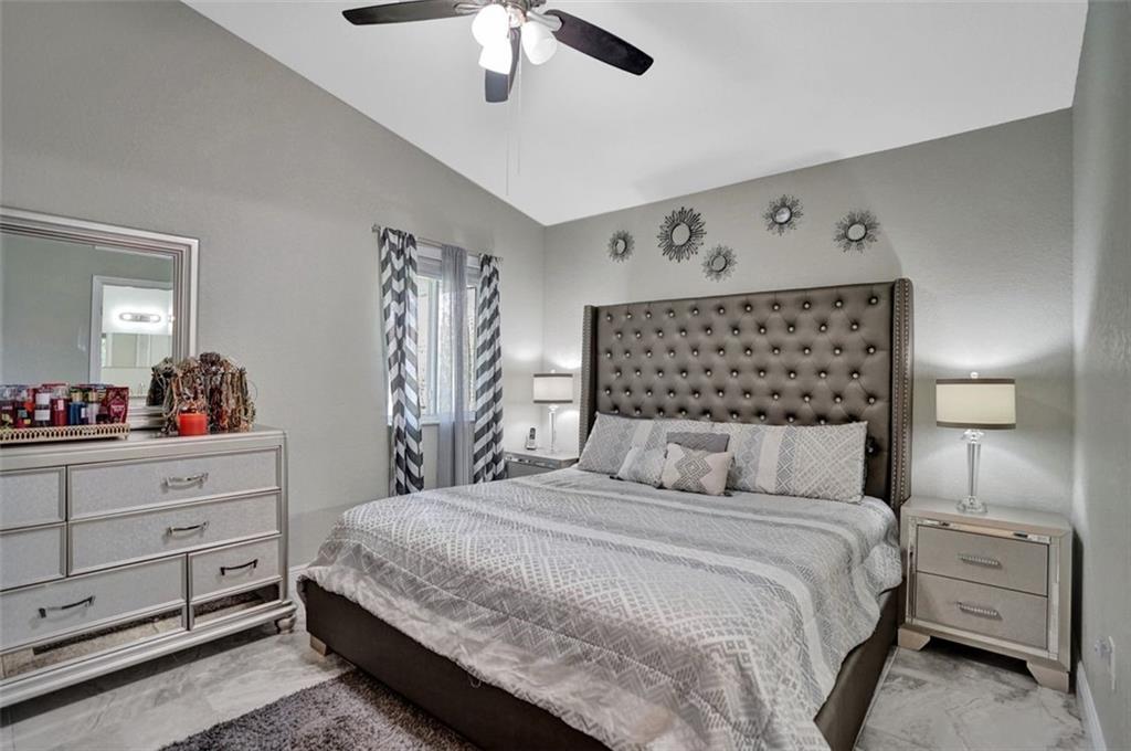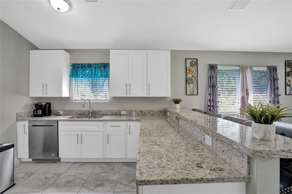 Stunningly Beautiful Almost New Construction Home built in 2019 shows like a model. From the Grand Double Door Entrance of this Gorgeous home till you walk though out it. Upgraded kitchen with white cabinets and stainless steel appliances and granite counters. Beautiful bathrooms with double sinks. Shows as a 4 bedroom home but listed as a 3 bedroom home as per tax records. Gorgeous large tile floors though out vaulted ceilings and great lighting though out. Impact windows and doors. Great corner lot. This home is ready for you to move right in. Close to highways and shopping.NO HOA!