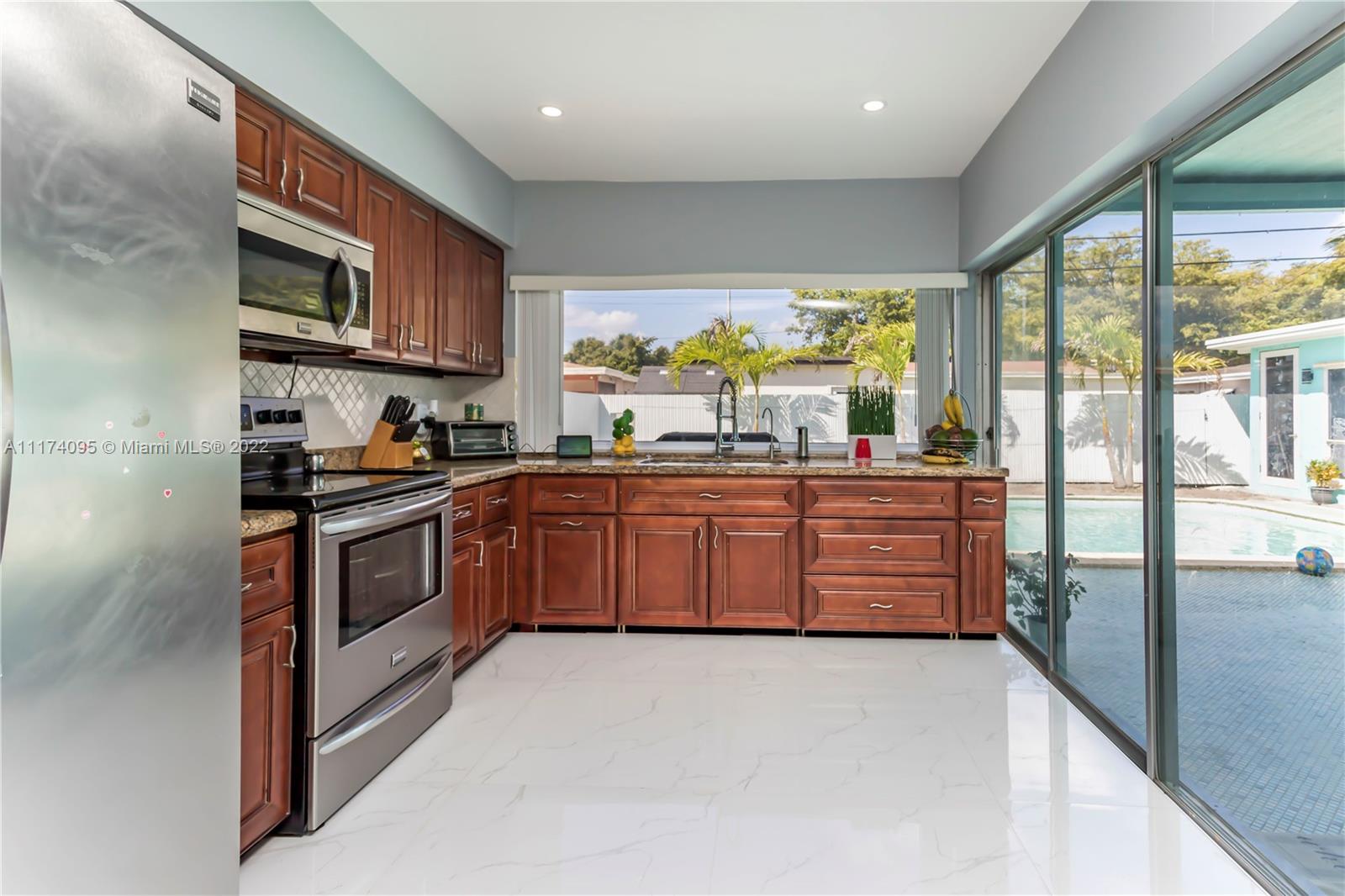 This home has everything a new home buyer is looking for. This beautiful 3/2 with bonus cabana/ Efficiency can be converted to a home office. A hugh-covered patio that connects to the open kitchen that features wood cabinets with stainless steel appliances with a full sliding glass door view to the pool and over-the-sink windows overseeing the pool and yard. The roof was replaced in May of 2020 newer AC. The garage can be converted to an efficiency. The bathrooms are totally remodeled with a modern look. new tankless water heater. Electric was completely rewired. Property has impact windows, The pool pump was replaced a few years ago, the best part is there is no HOA. This property is very close to Turnpike, Hardrock Stadium, Seminole Hardrock Casino, and Fort Lauderdale airport.