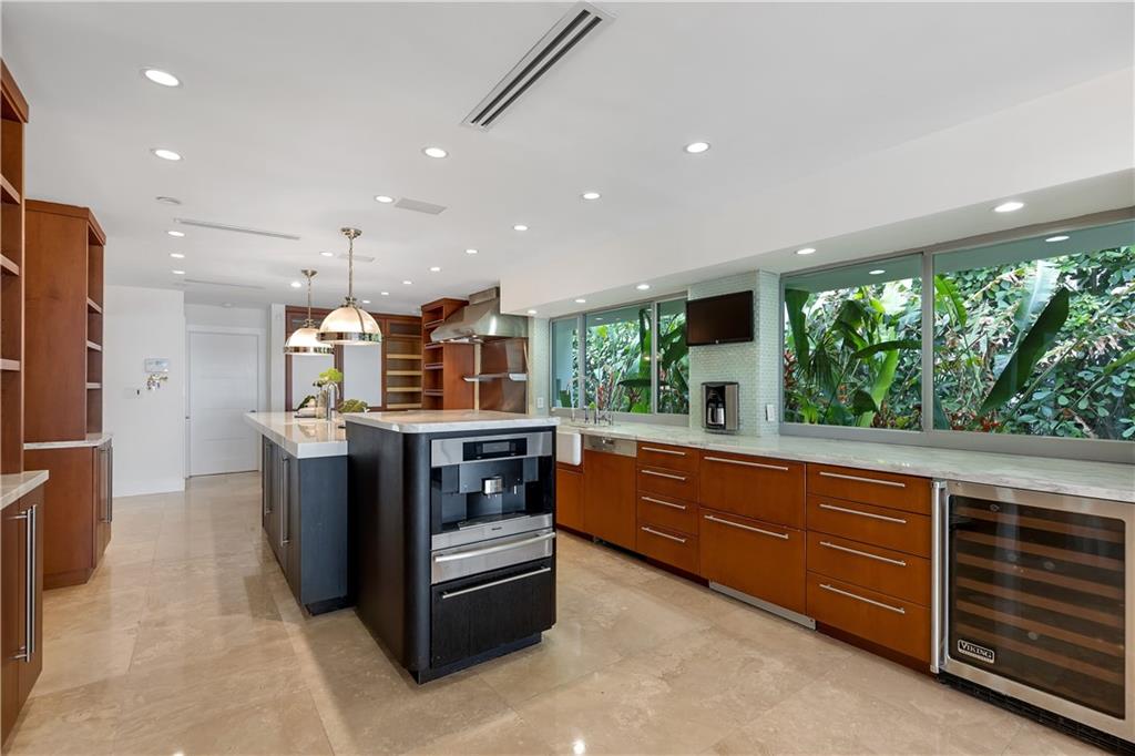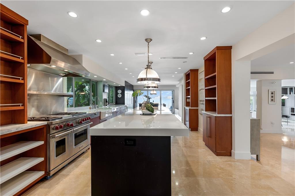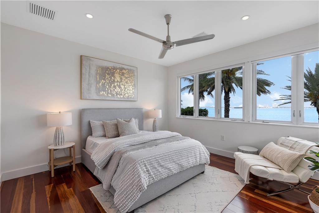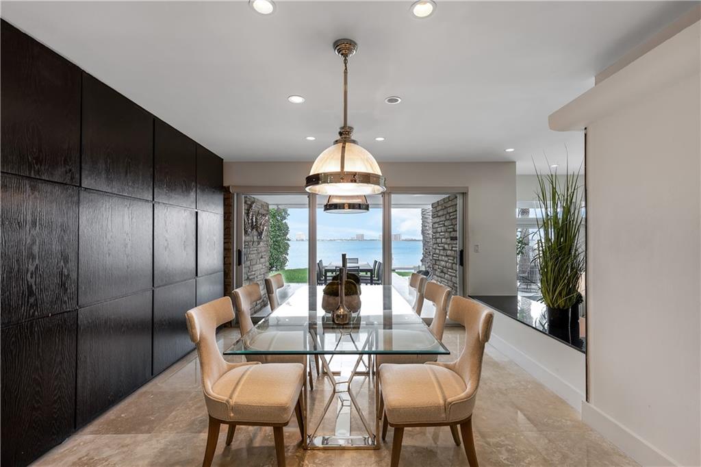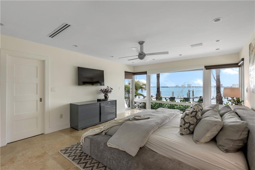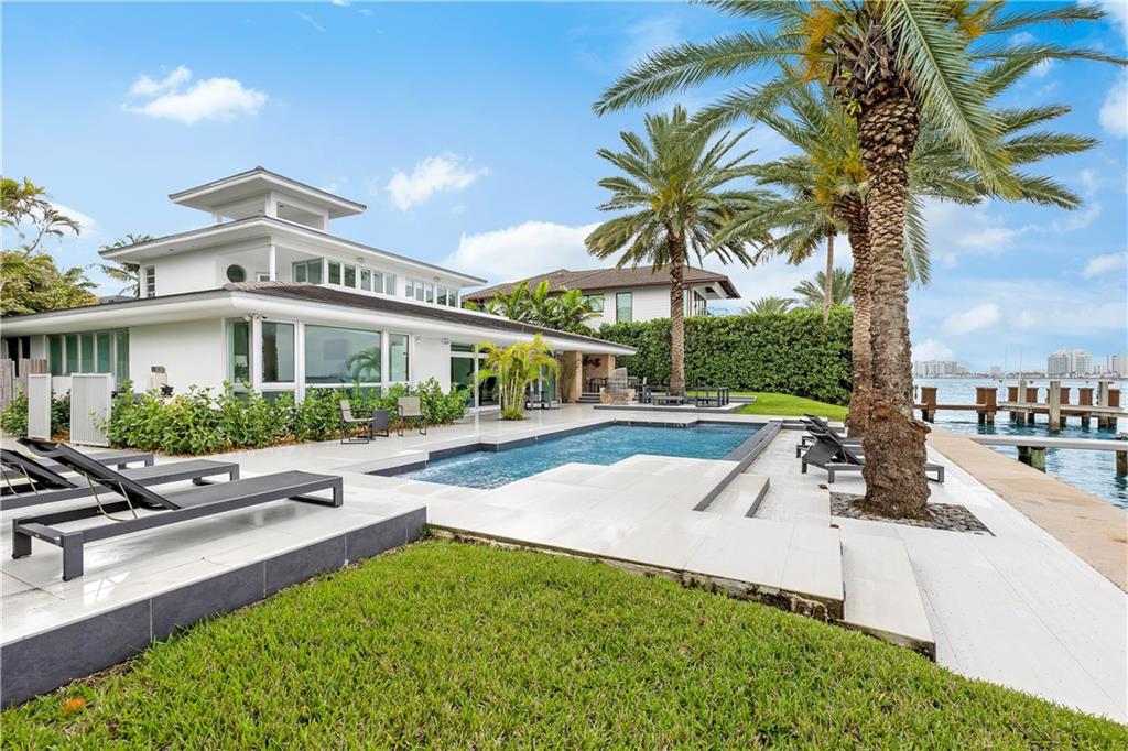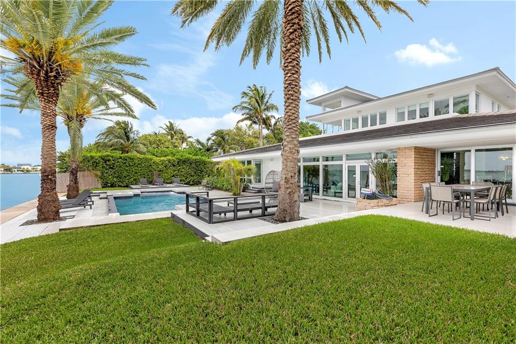 Panoramic sunset and open water views in Miami Beach with 95 feet of Biscayne Bay frontage! Oversized 16.318 square foot lot in the gated Normandy Shores community. Updated with modern finishes, this home features 5 bedrooms and 5.5 baths, wide open living and entertaining with oversized island in kitchen, travertine marble floors, saltwater pool with slate tile patio, dock and 33,000 pound boat lift. Enjoy this peaceful gated community with golf course, tennis courts, playgrounds, outdoor gyms and serene landscapes.
