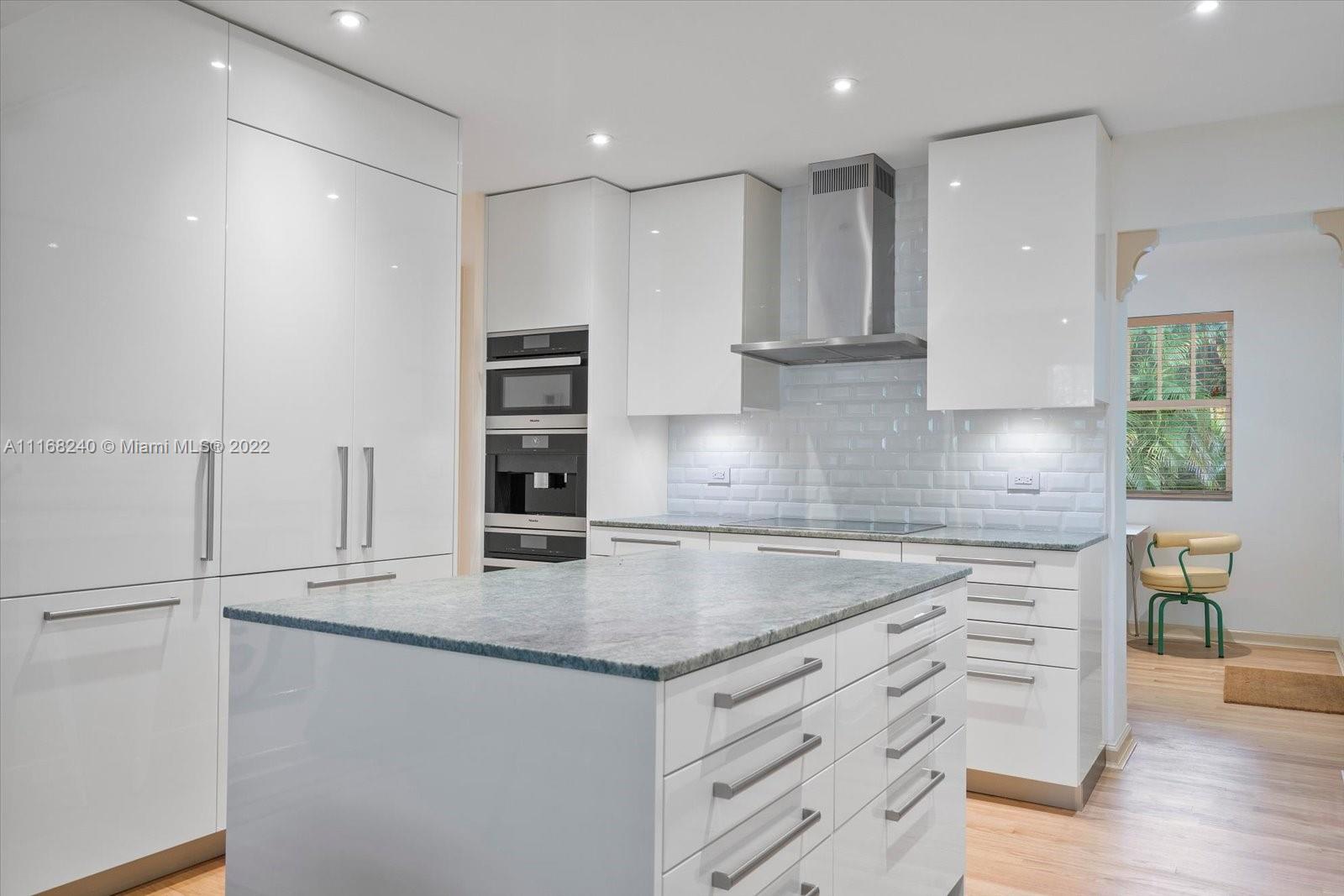 Luxurious transformation of a 1935 two-story house on an oversized private lot. Walk to Miracle Mile, Restaurant Row, and Trolley route with close proximity to MIA Airport. Fully renovated by owner/designer using the latest technology and well-appointed interiors throughout. Just featured in the Coral Gables Tour of Kitchens, this striking residence offers abundant space for entertainment and rare Pecky Cypress ceilings on the First Floor. Embellished with Snaidero cabinets, Miele refrigeration and cooking appliances, velvet honed granite countertops, Kohler fixtures, directional LED lighting, impact windows, and many architectural features. House encompasses 3 Bdrms, 2-1/2 Baths, formal Living and Dining Rooms, Family Room, Wet Bar, and large Kitchen. Lots of Room for expansion and pool.