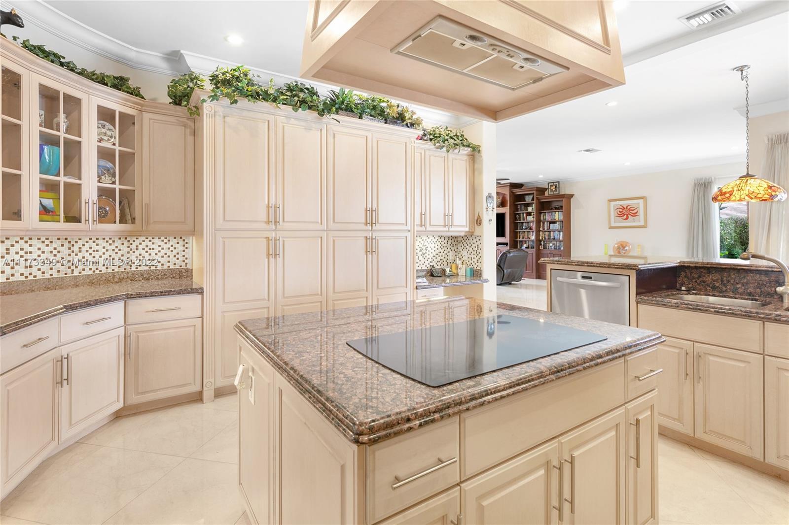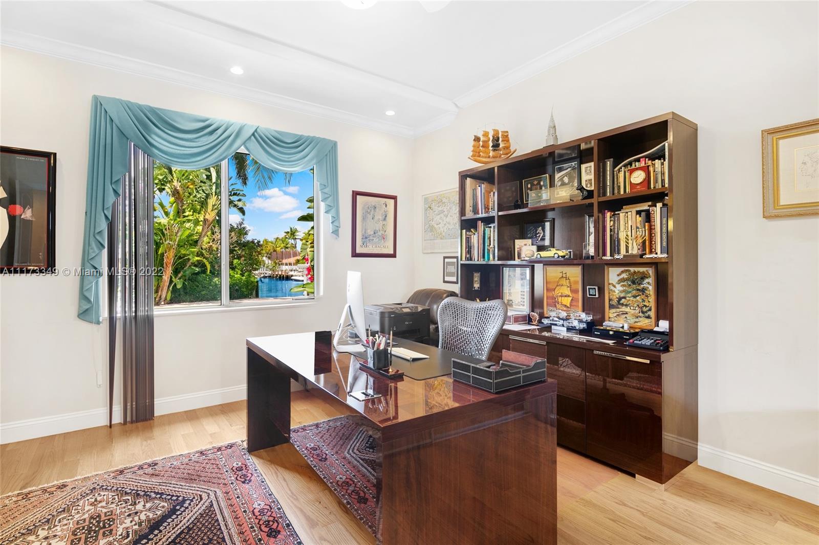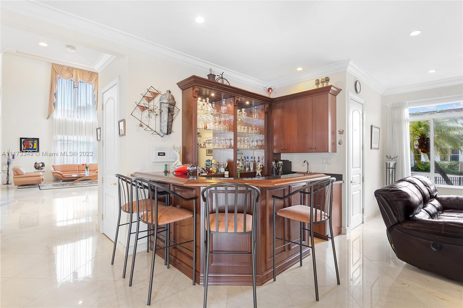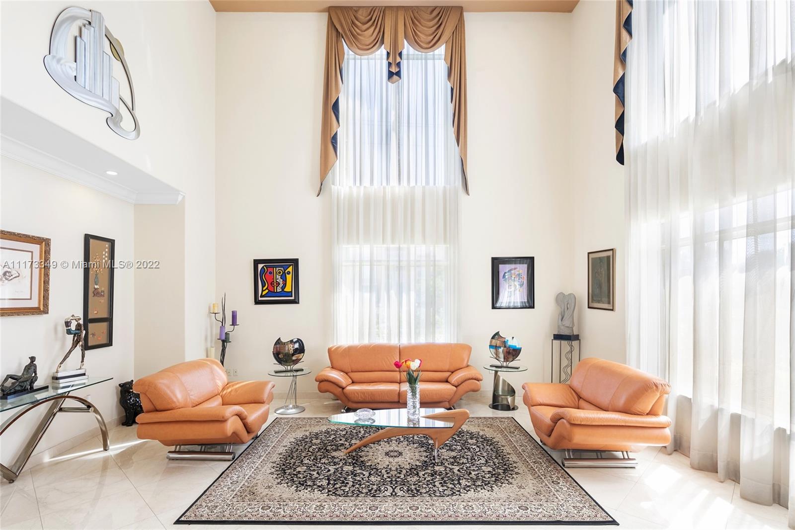 Beautiful waterfront residence in guard gated Eastern Shores. Boasting 5,089 square feet with 5 beds/5baths + 2 half baths, and sitting on an oversized 13,565 square foot lot, this is a boaters paradise with deep water, no fixed bridges to bay, composite wood dock, and 15,000 lbs. boat lift. As you enter, you are greeted by vaulted ceilings and natural light beaming through double-height windows. Spacious open layout, featuring a wet bar and wine storage, is perfect for entertaining. Gourmet kitchen with breakfast nook opens out to the covered patio with heated pool and jacuzzi. Expansive principal suite with a sitting area and dual closets as well as an upstairs loft area. Two car garage. Great yard space. Minutes from the beach, Bal Harbour shops & Aventura Mall/restaurants.