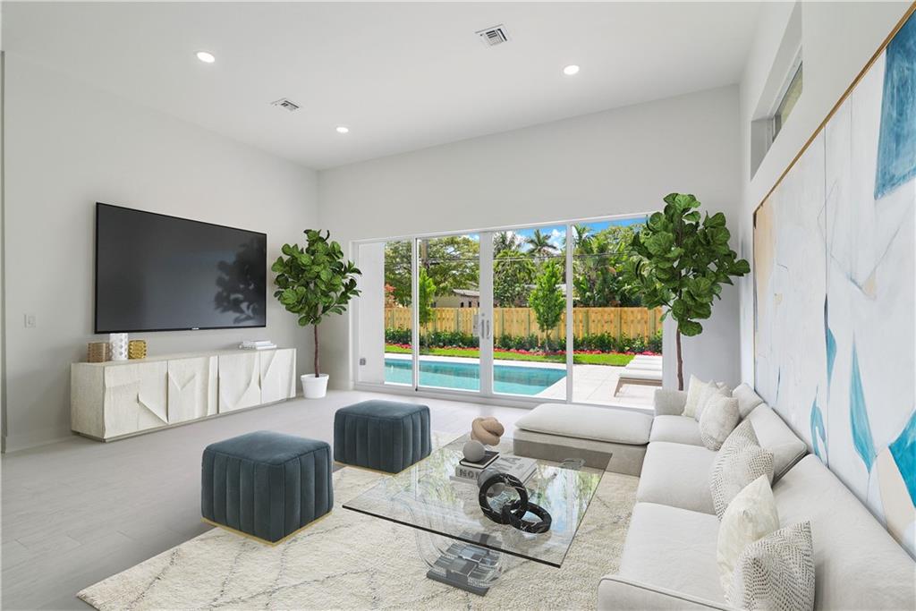 ABSOLUTELY STUNNING new home in beautiful Rio Vista! SOARING CEILINGS with recessed lighting and soft gray/beige wood plank porcelain floors throughout! INCREDIBLE chef's kitchen with tons of cabinet space, quartz countertops and backsplash, double pantry, built-in beverage center, and HUGE ISLAND for entertaining. Separate FORMAL LIVING ROOM and GRAND, SPACIOUS, FAMILY ROOM. FOUR LARGE BEDROOMS and 4 FULL BATHS, all with built-in custom closets, grace this lovely home! TWO WALK-IN MASTER CLOSETS in PRIVATE MASTER SUITE overlooking the sparkling pool and gorgeous backyard. Beautifully landscaped, new irrigation and fully fenced/gated, backyard. INDOOR laundry room! Convenient to Las Olas Blvd, fabulous restaurants and shopping, the LAUDERDALE YACHT CLUB and BEACH! A truly GORGEOUS HOME!