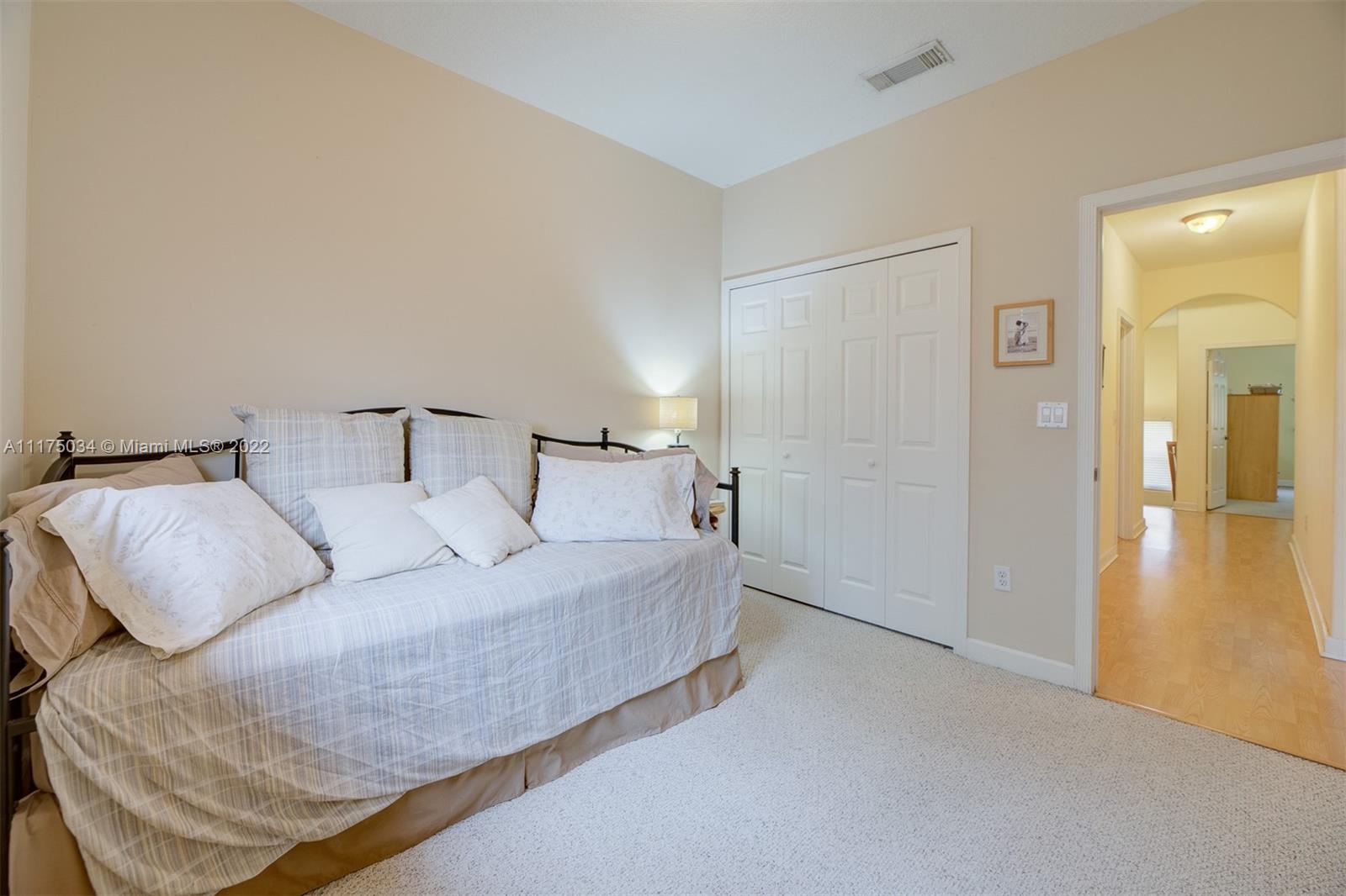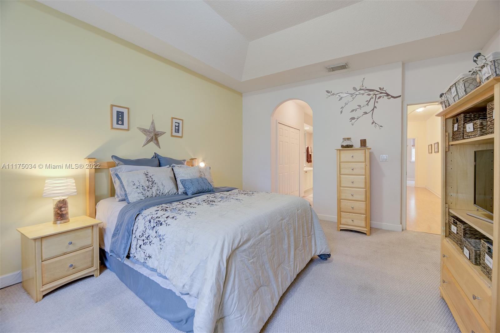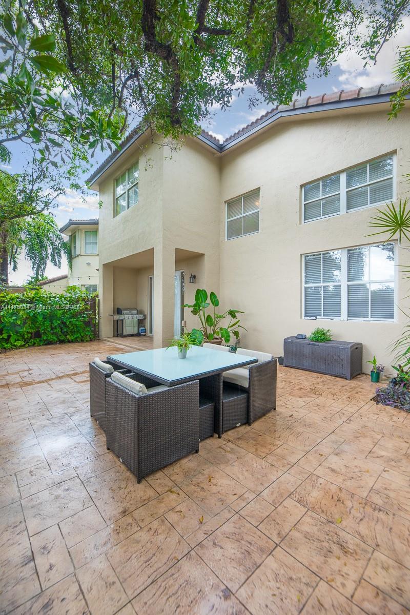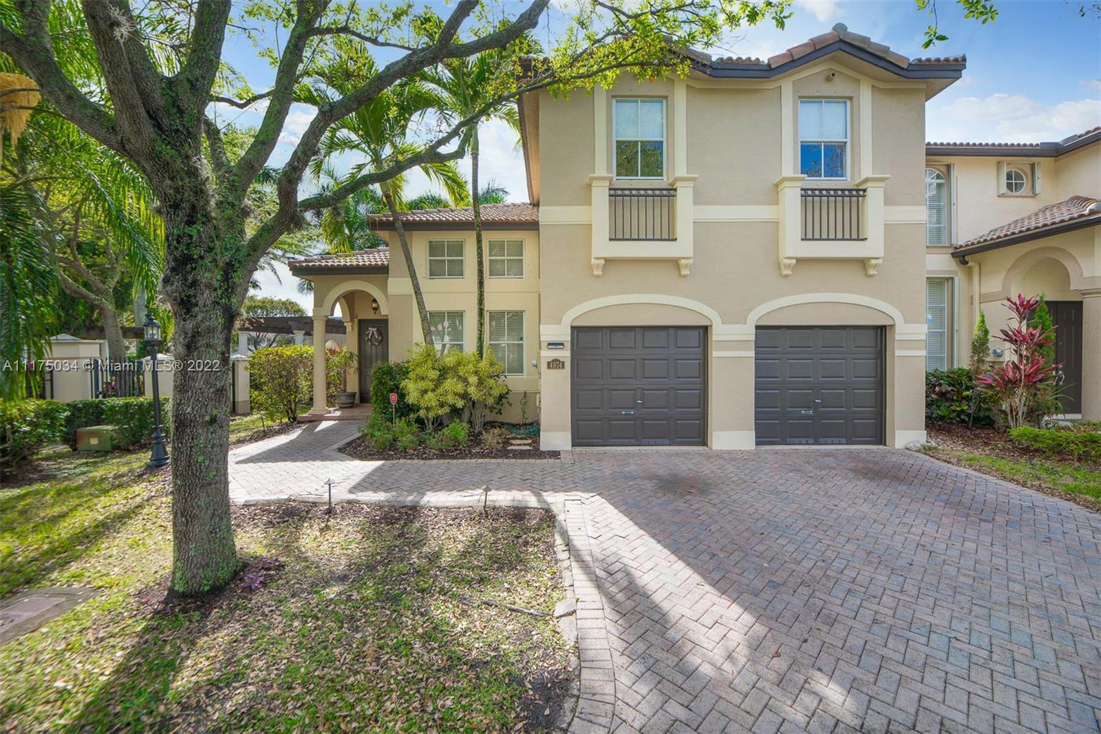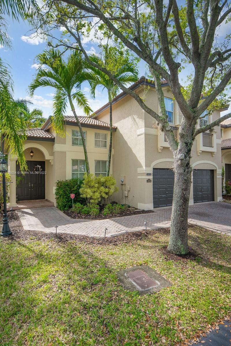 Captivating spacious corner townhome in the desirable Costa Bella gated community. This three bedroom two and a half bath with high ceiling that creates a bright and refreshing feel for any family who wishes to call this property home. Delicately placed interior arched passageways result in a feel of royalty. A spacious kitchen has granite counter tops with stainless steel appliances less than a year old. Rear french doors with delicate window coverings lead to a well-manicured landscape with a large stamped concrete terrace creating a feel of attachment while entertaining your guests. **Do not disturb the Owners, please schedule using showtime & email prequalification