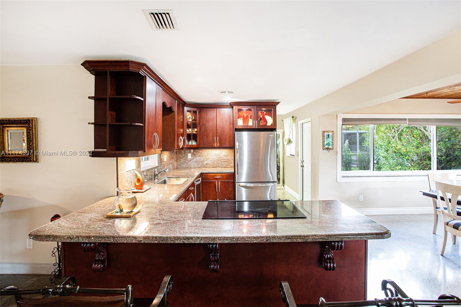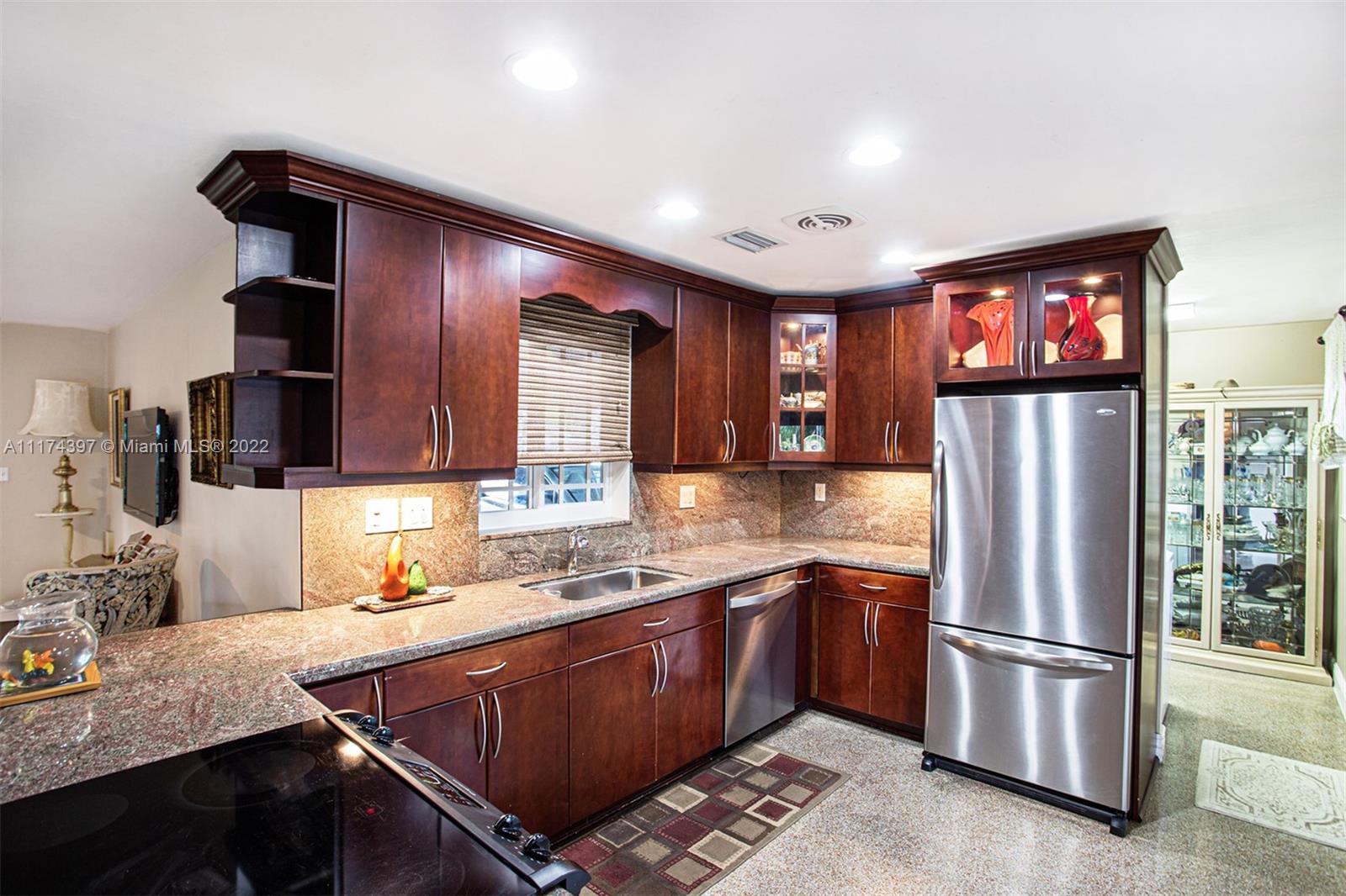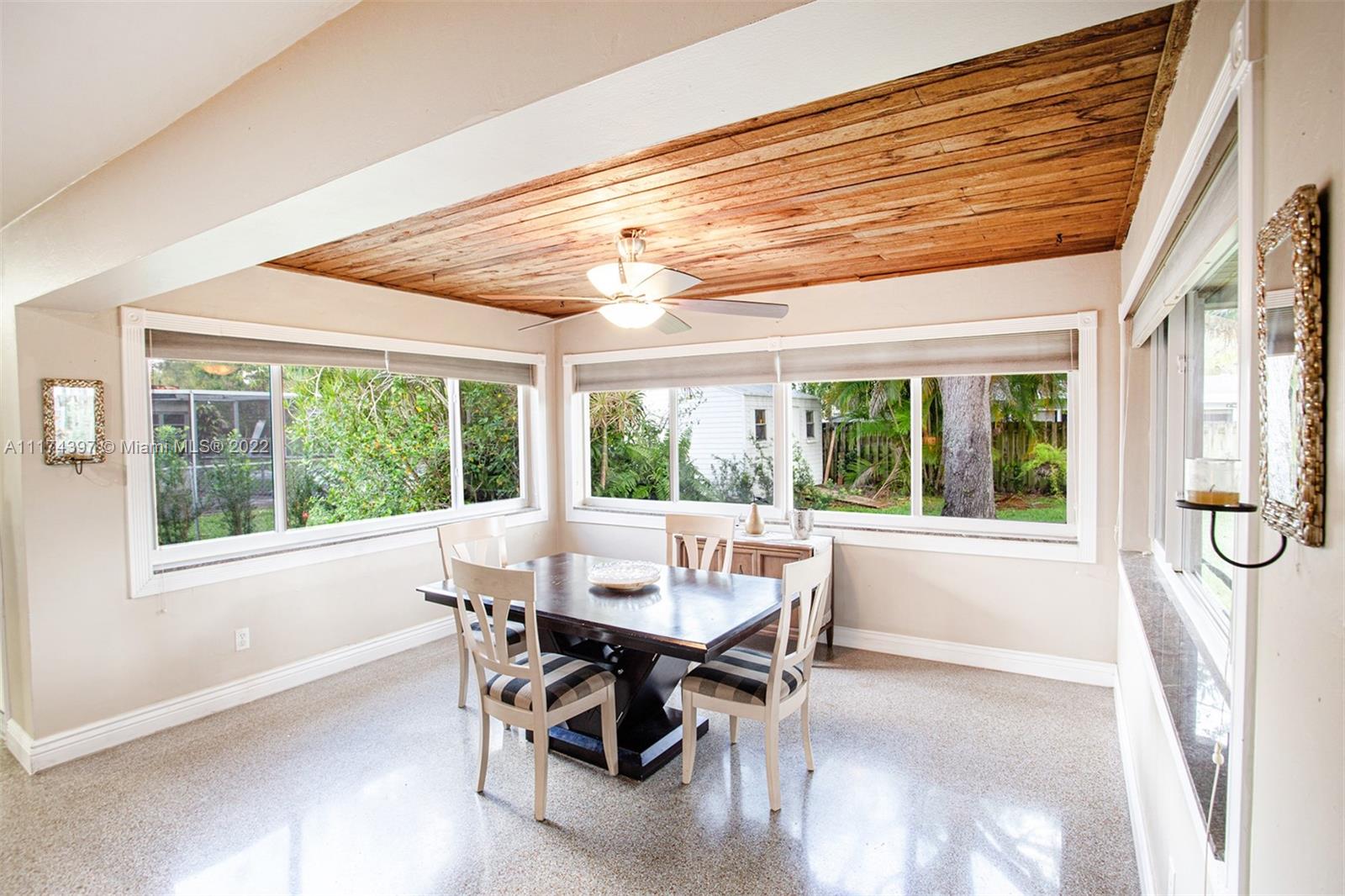 Brand new master bathroom renovation. Beautifully restored terrazzo floors in all rooms. Open kitchen design with ample cabinet space. Laundry room. All Impact resistance windows and doors. Front and back sprinkler system with underground well. Large fenced beautifully treed back yard safe for child and pets. Large shed in the backyard. Quiet safe neighborhood., local traffic only. Minutes away from major highways. Short distance to beaches, restaurants, and shopping centers. Accepting Back up offer only
