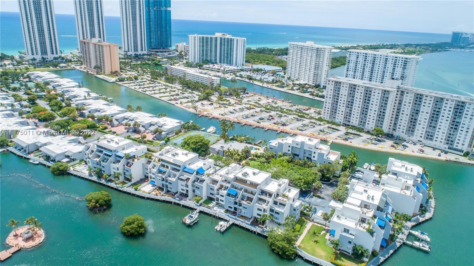 WATERFRONT TOWNHOUSE ON A PRIVATE ISLAND ACROSS THE STREET FROM THE BEACH. SPACIOUS 3 BEDROOM/ 2 BATHS. HOUSE COMES WITH MARINA DOCK. THIS CANAL FRONT PRIVATE COMMUNITY OFFERS 4 TENNIS COURTS, BASKETBALL, 2 HEATED POOLS, EXERCISE ROOM, WALKING DISTANCE TO BEACH, SHOPPING, RESTAURANTS. COMMUNITY IS UNDERGOING A TOTAL RENOVATION - NEW ROOFS/NEW DOCKS/NEW CLUBHOUSE/NEW POOL AREA.. GATED COMMUNITY ON THE ISLAND SURROUNDED BY PARKS IN THE MIDDLE OF SUNNY ISLES BEACH. BEST SCHOOL. 24 HOUR SECURITY. ALARM SYSTEM.